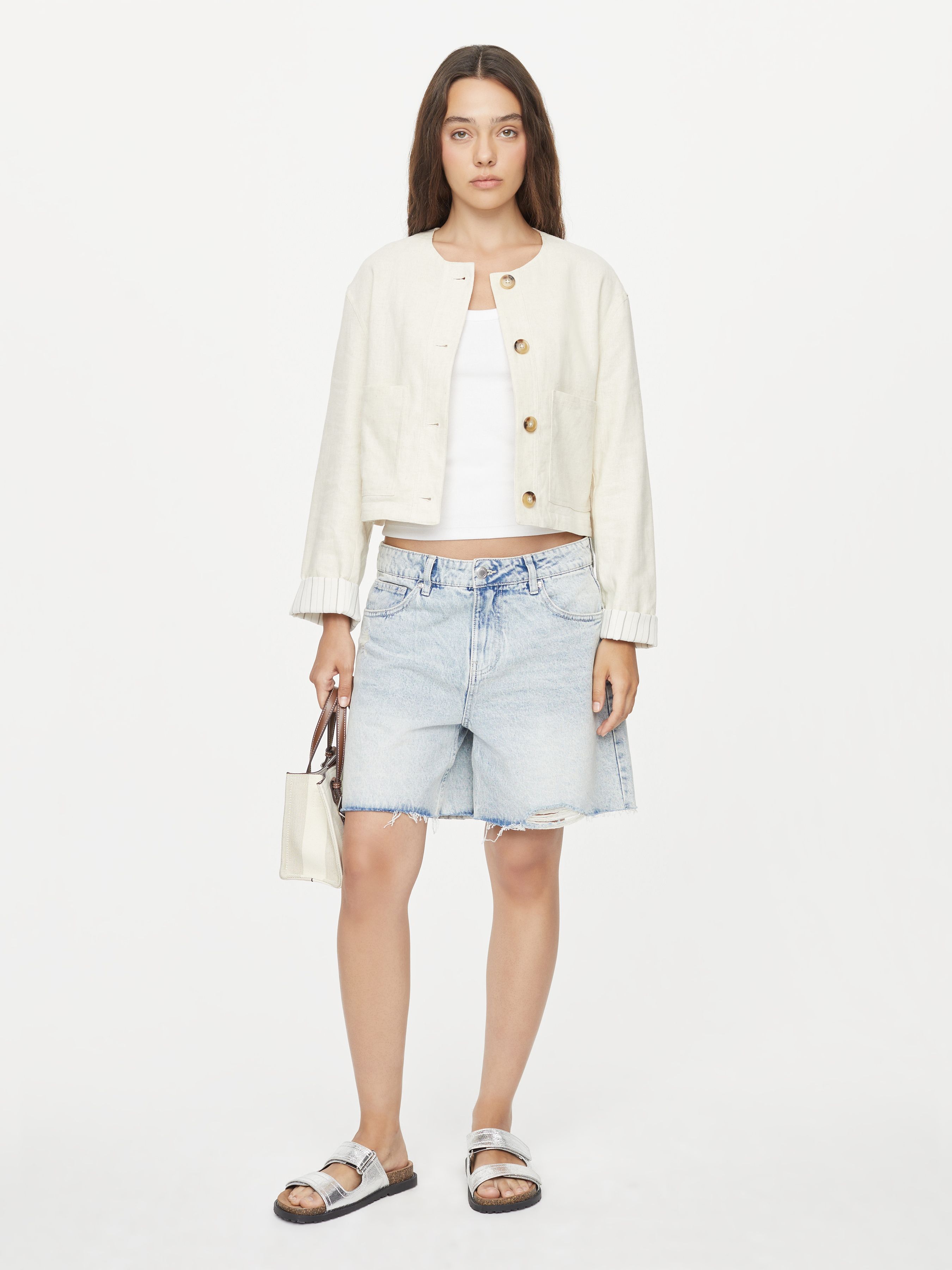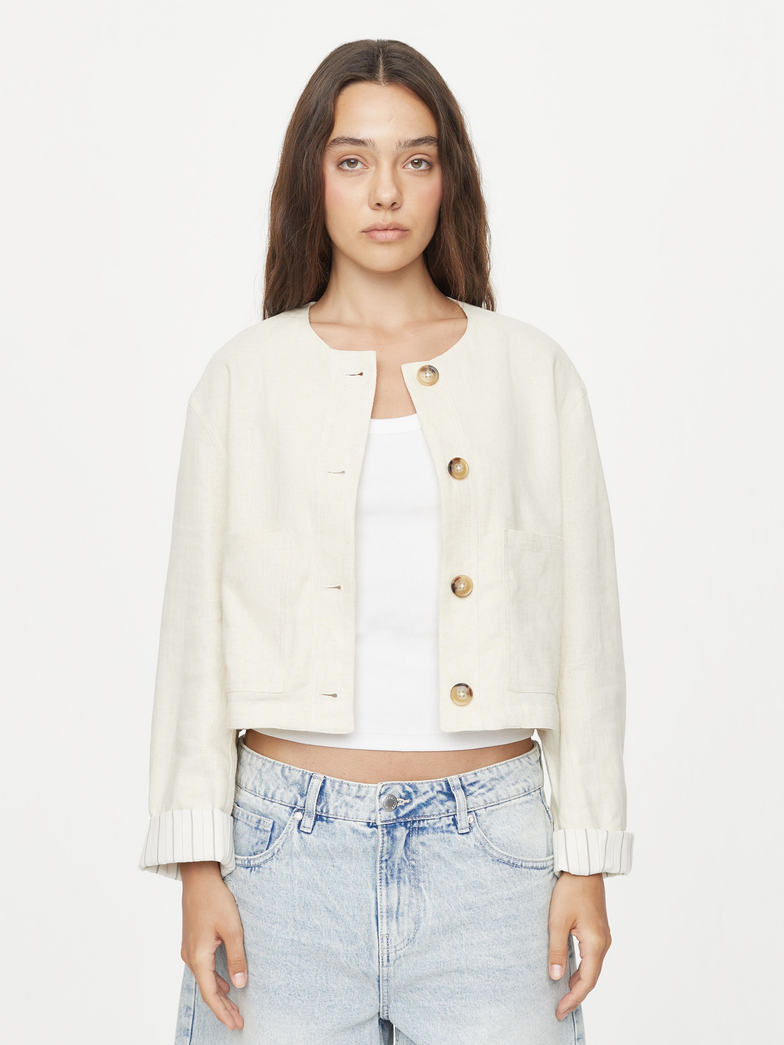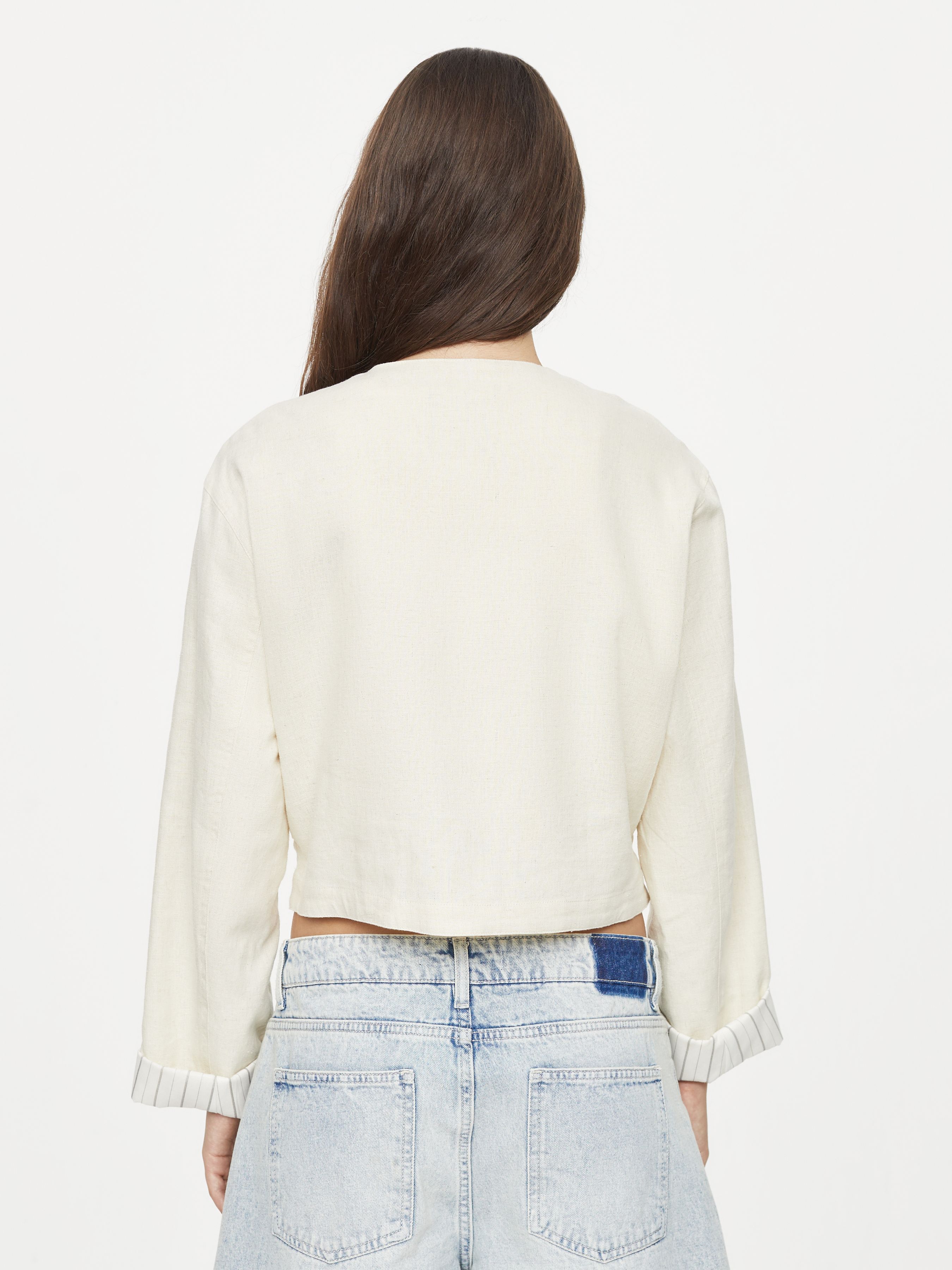 ROUND NECK BLAZER WITH ROLLED SLEEVES