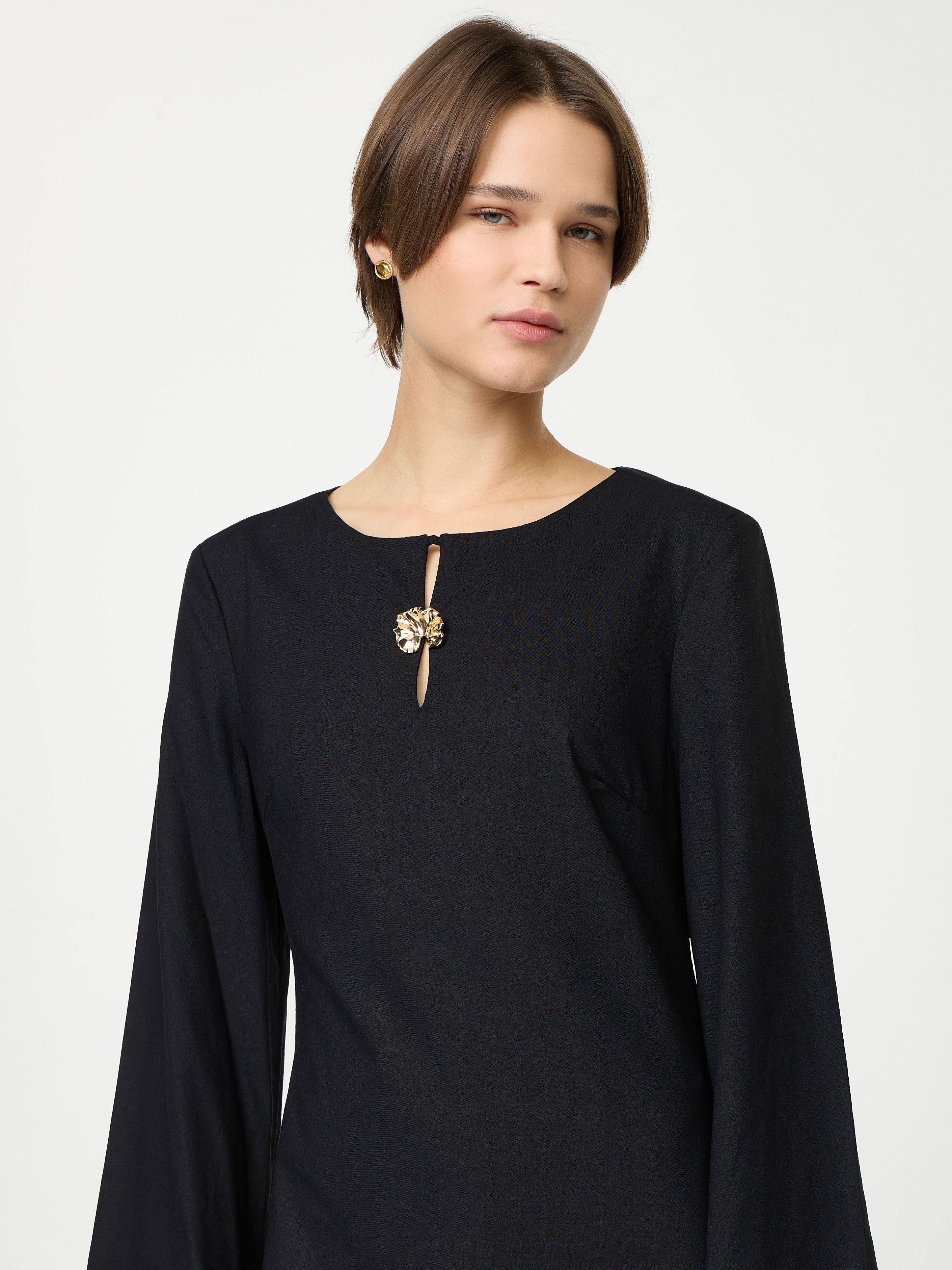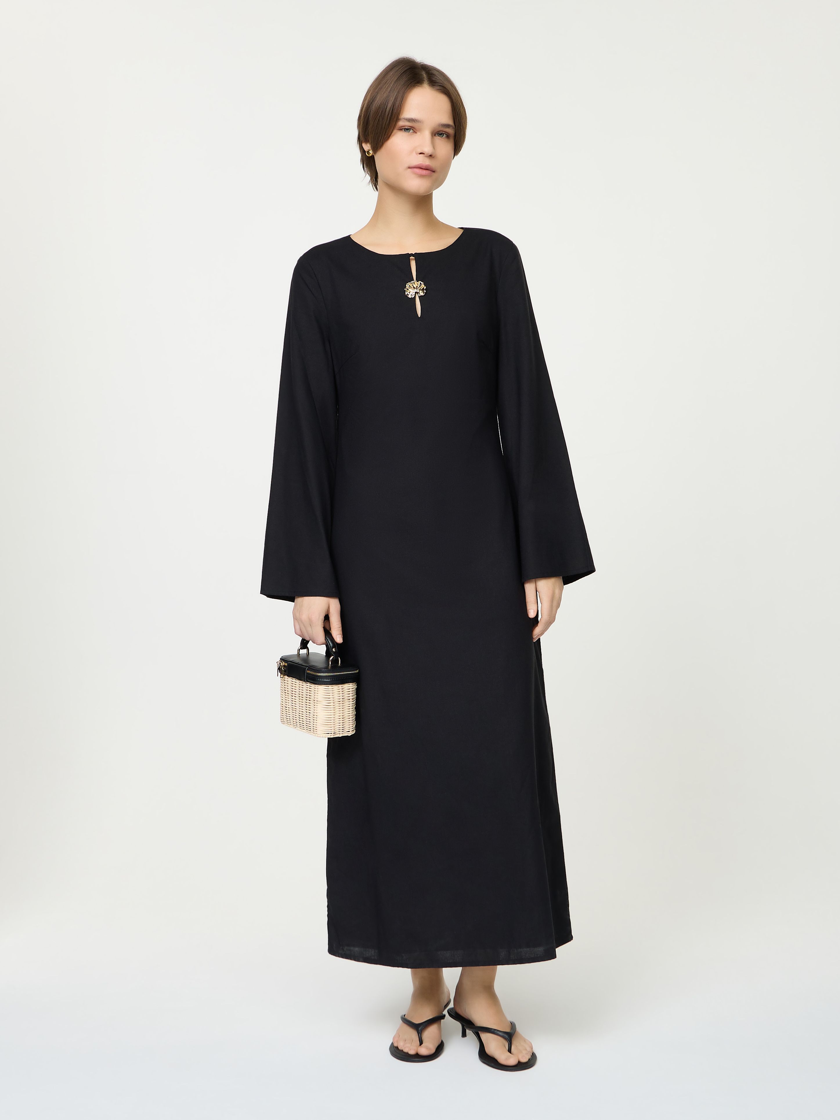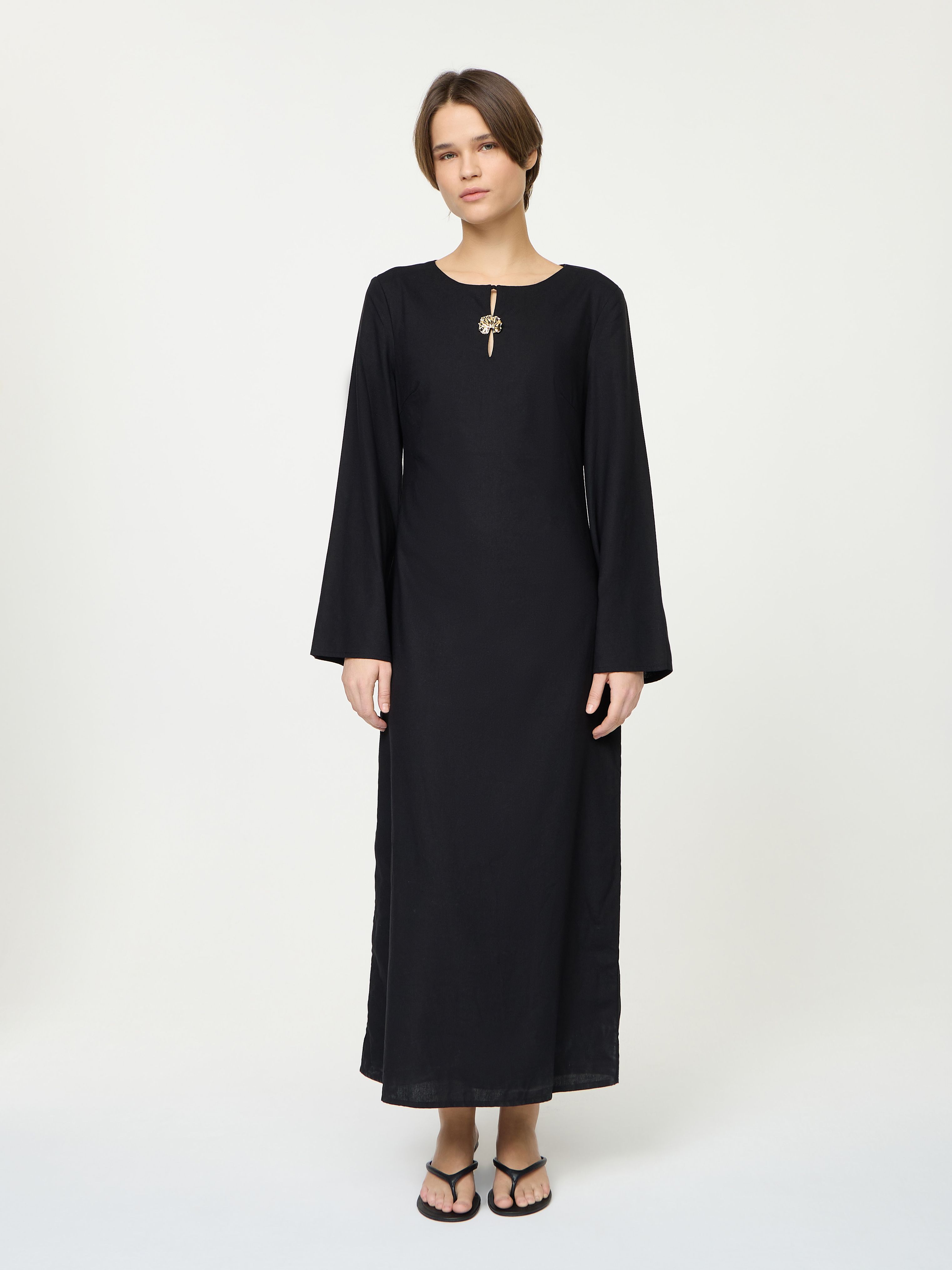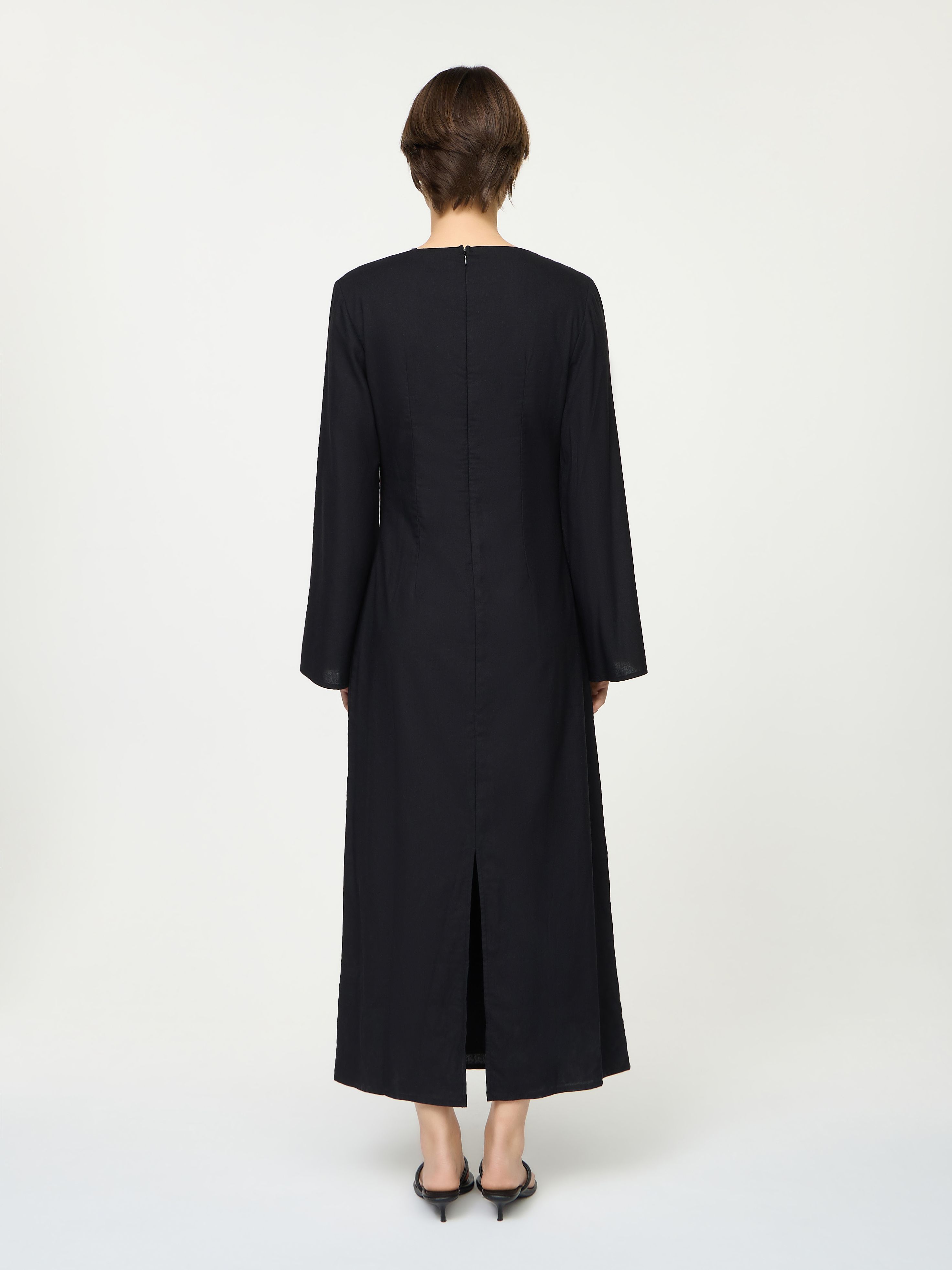 LINEN BLEND DRESS WITH DETAIL