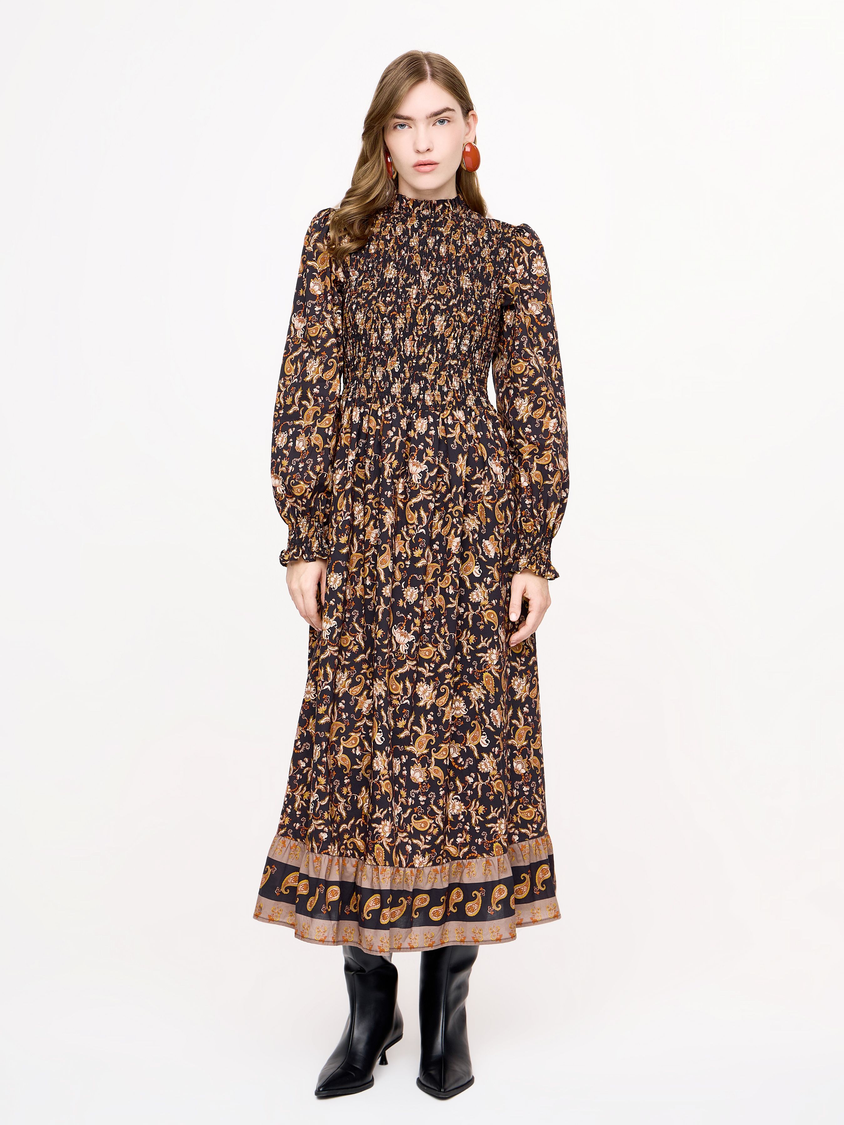 MIDI SMOCK PRINTES DRESS