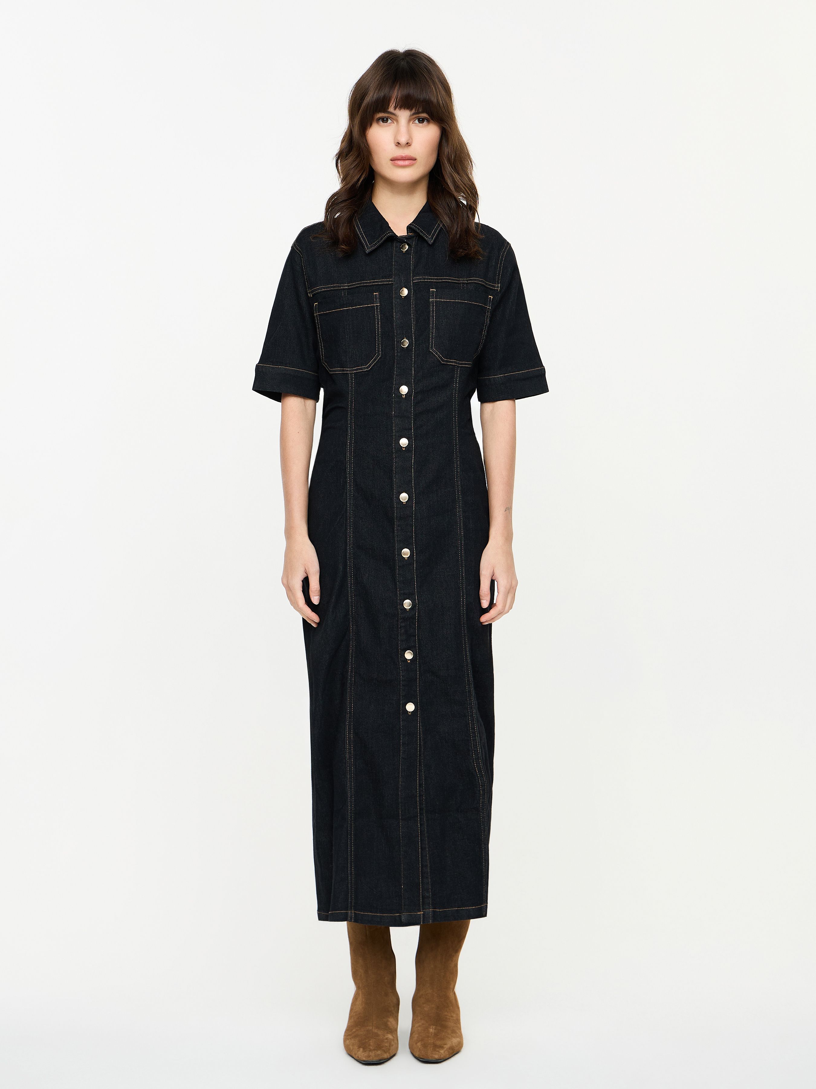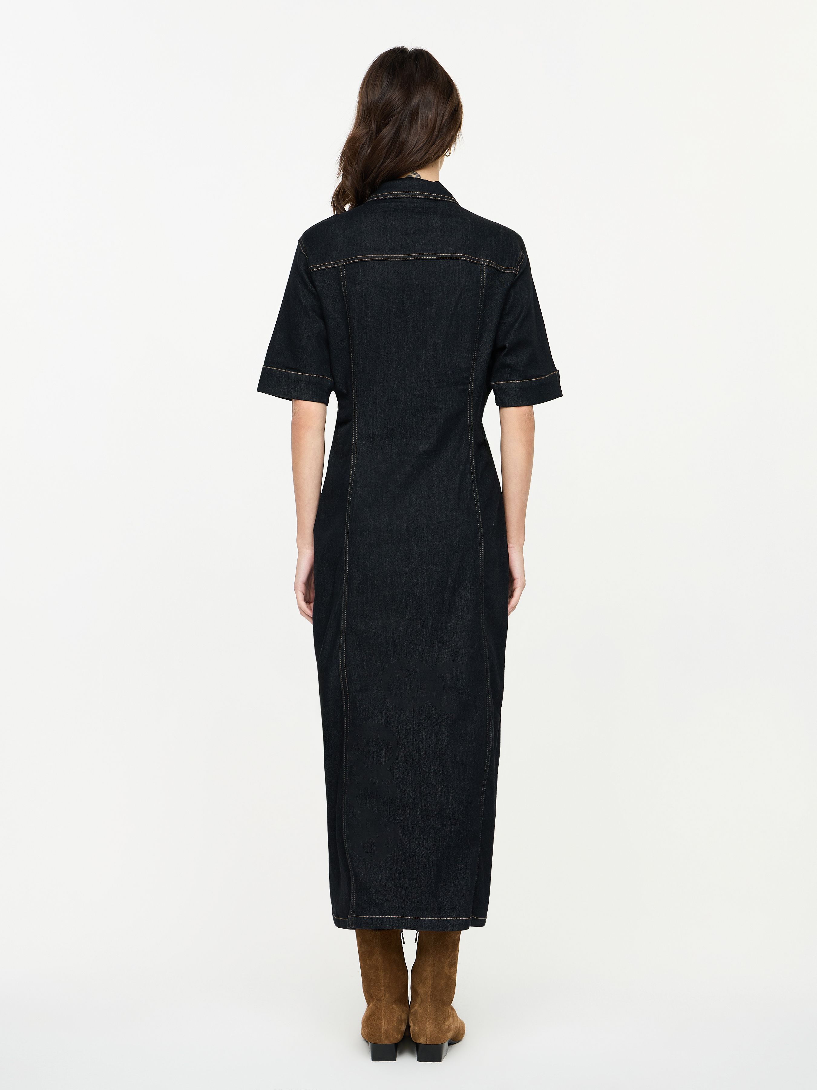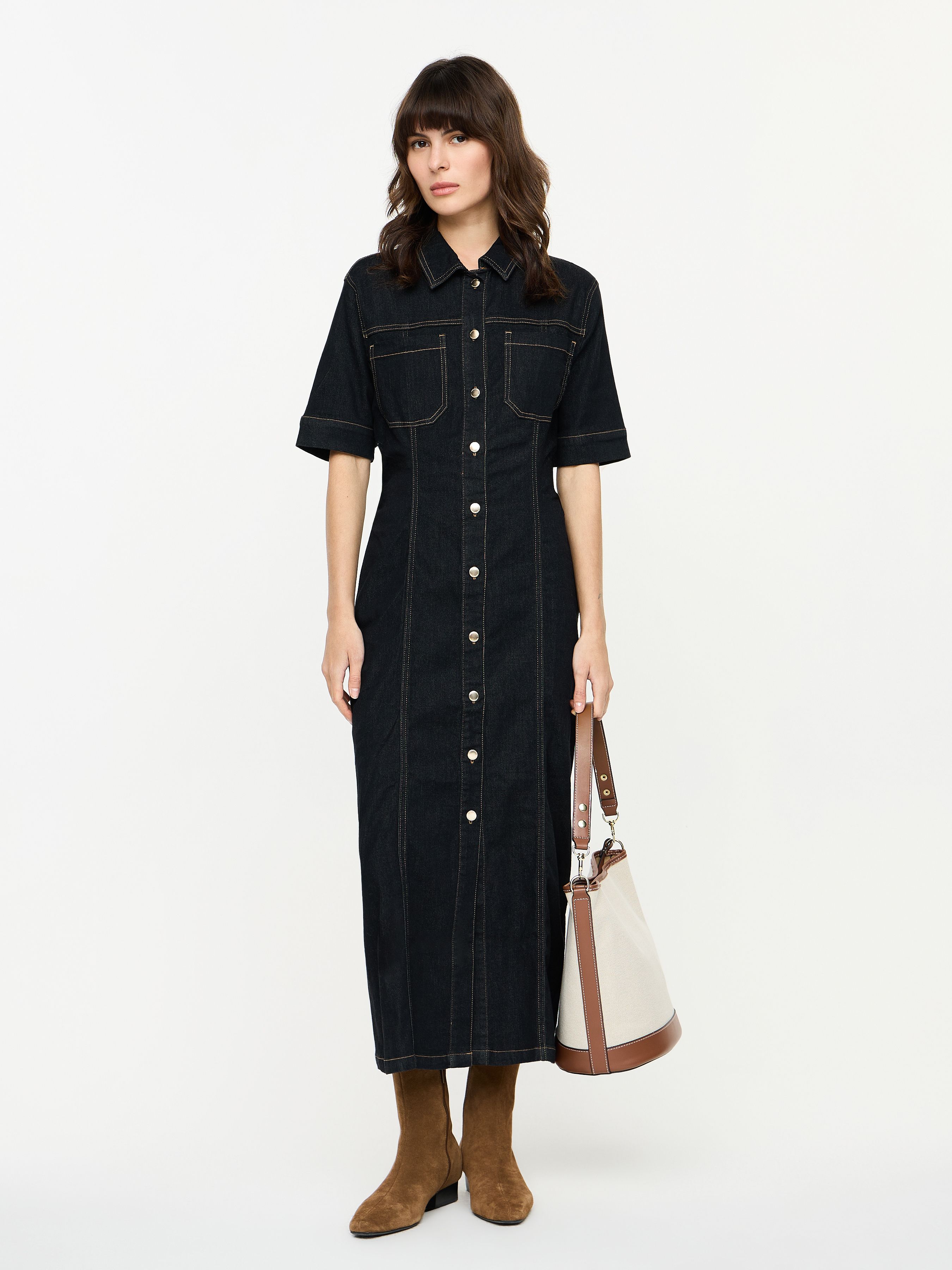 MAAG. COLLARED DENIM MIDI DRESS