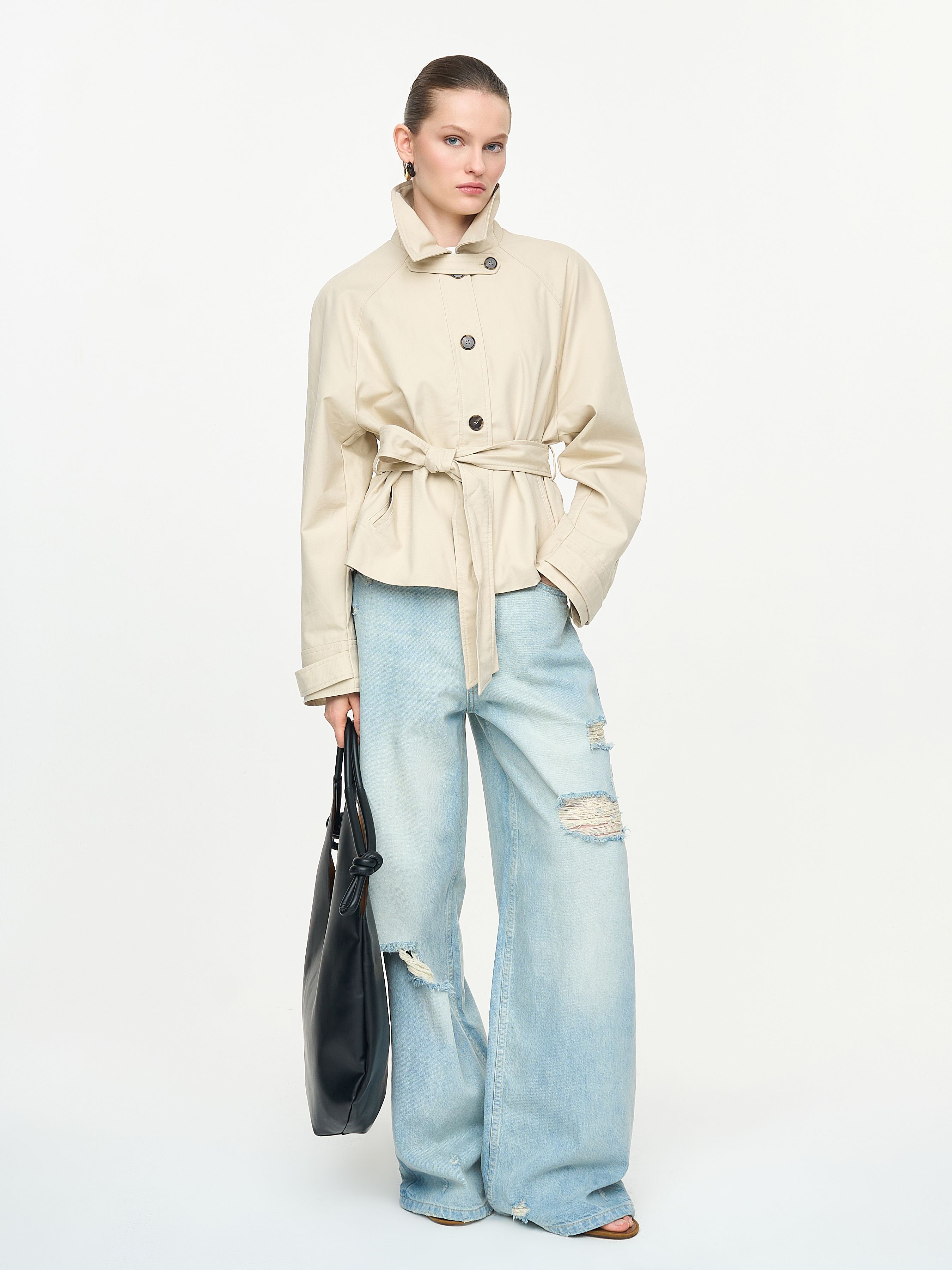LYOCELL BLEND TRENCH BELT JACKET