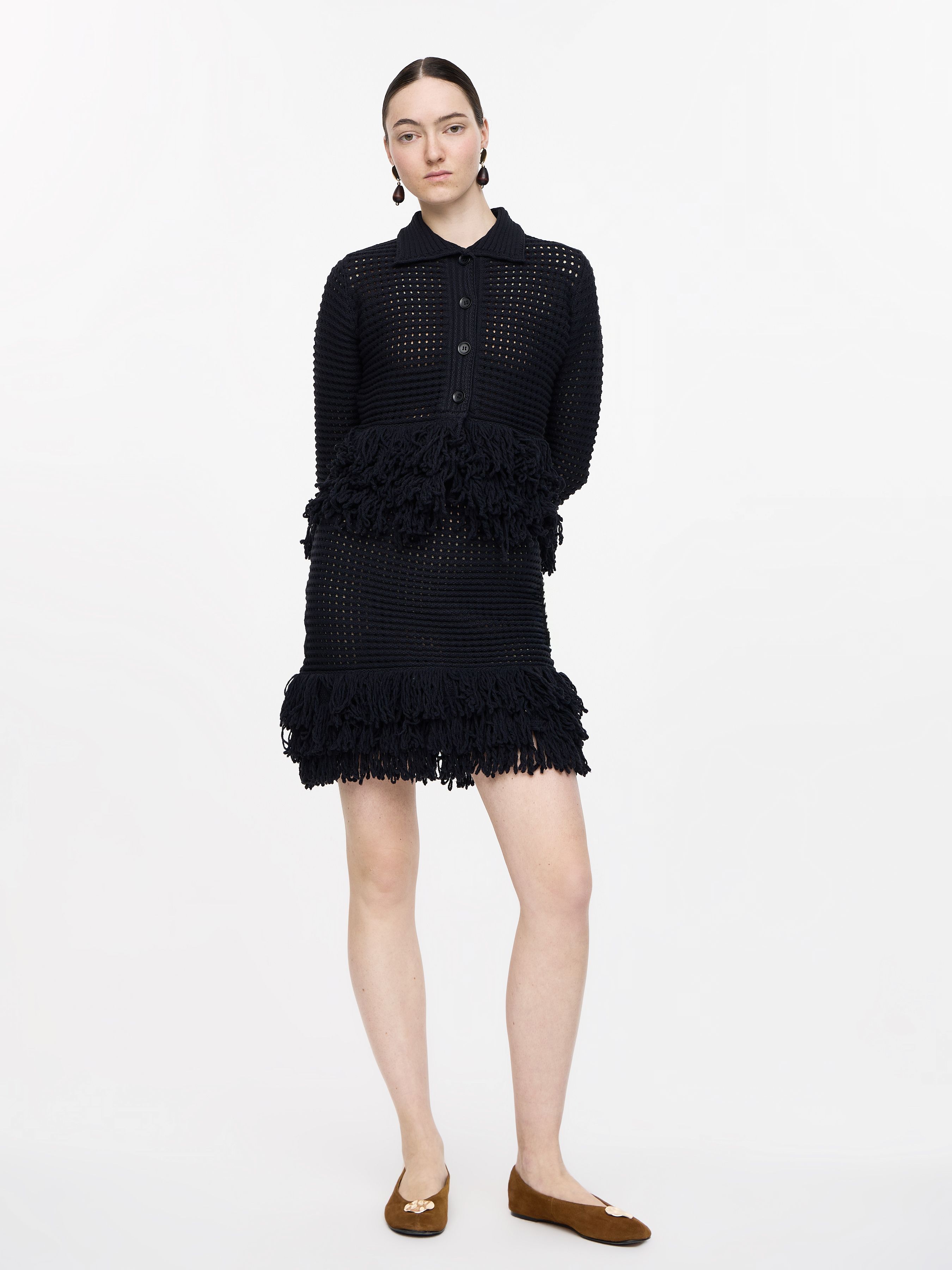 MAAG. CHECKED KNIT JACKET WITH FRINGING