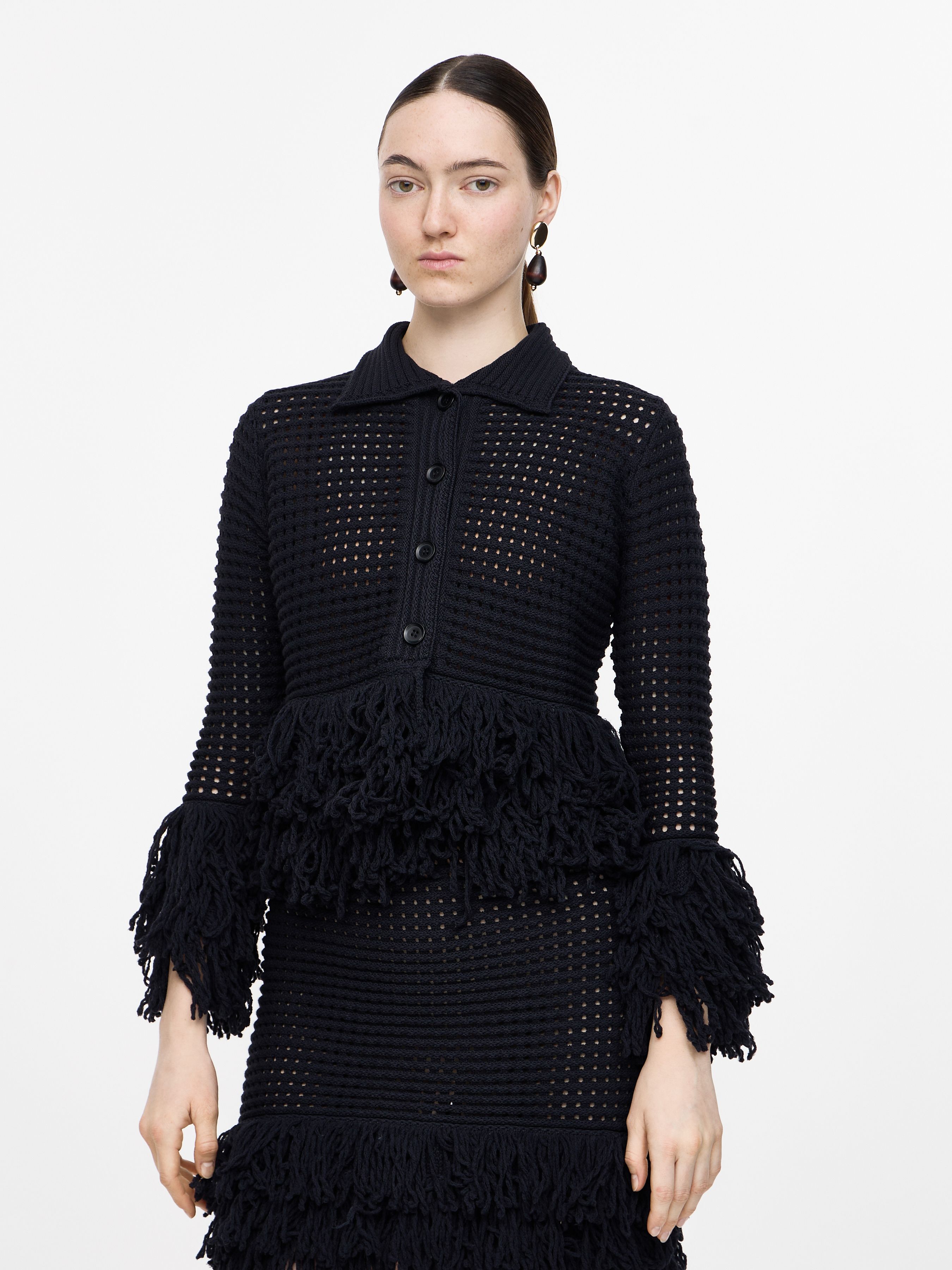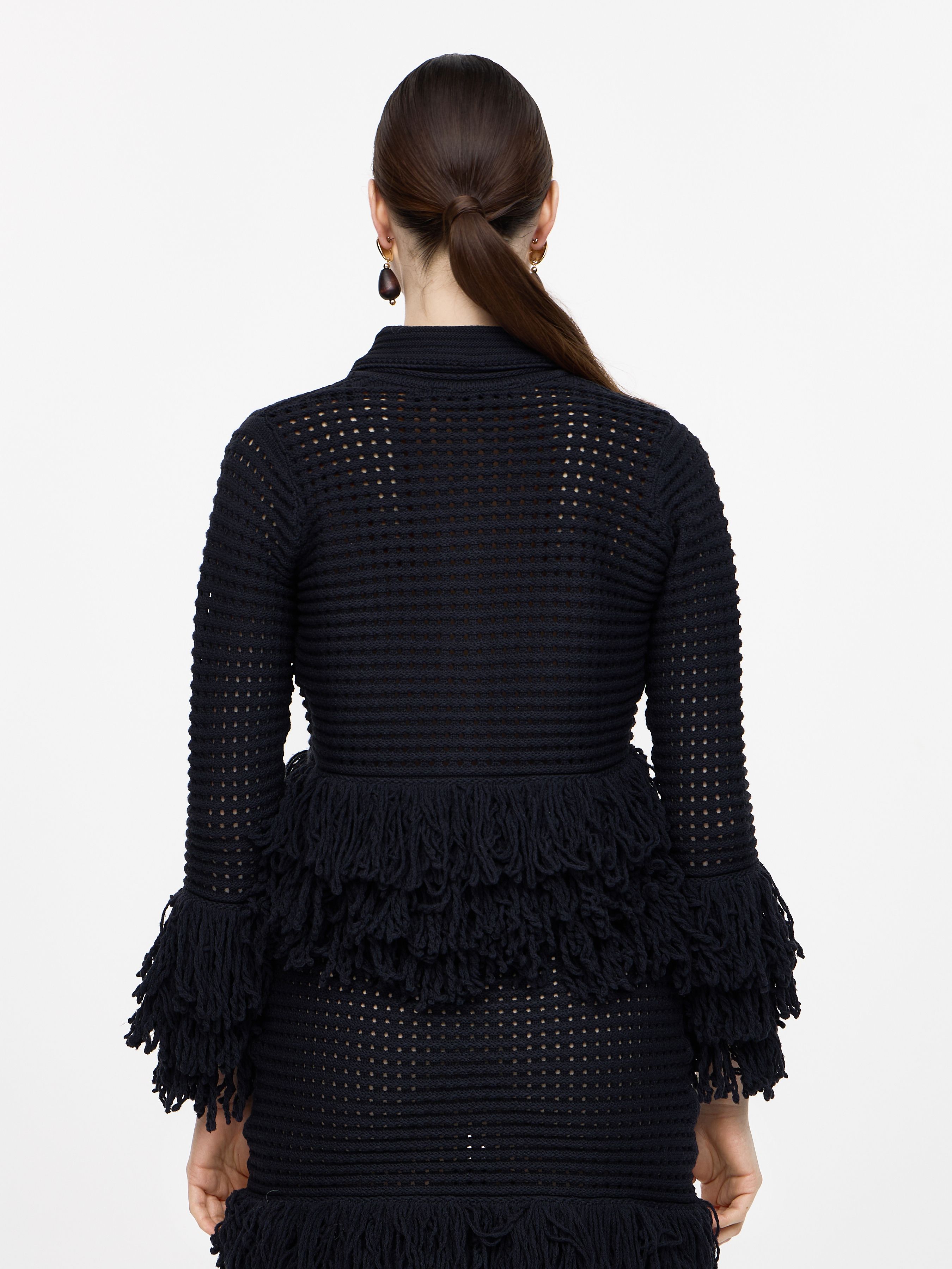 CHECKED KNIT JACKET WITH FRINGING