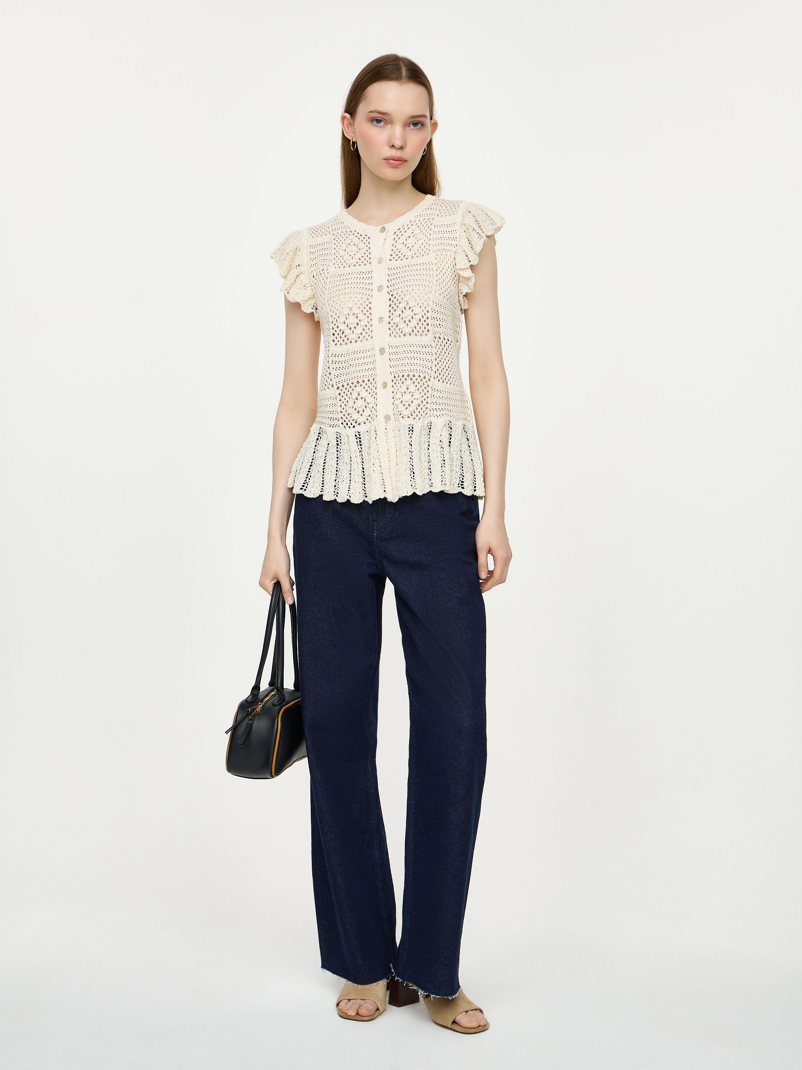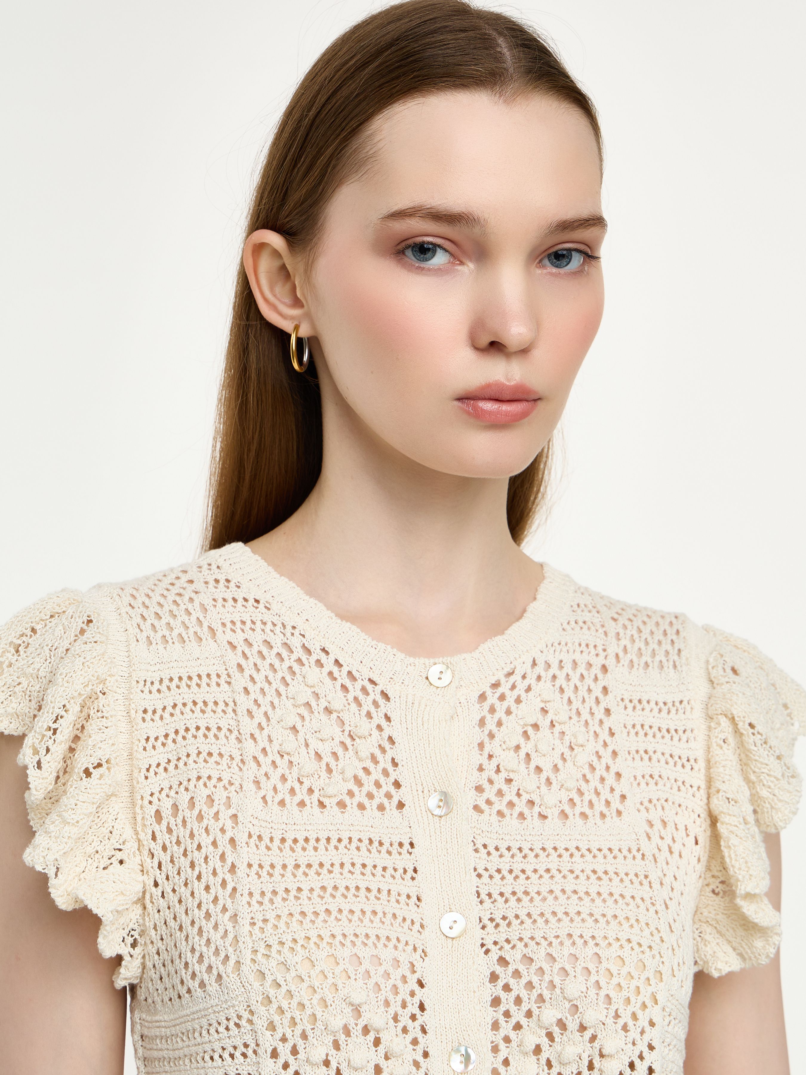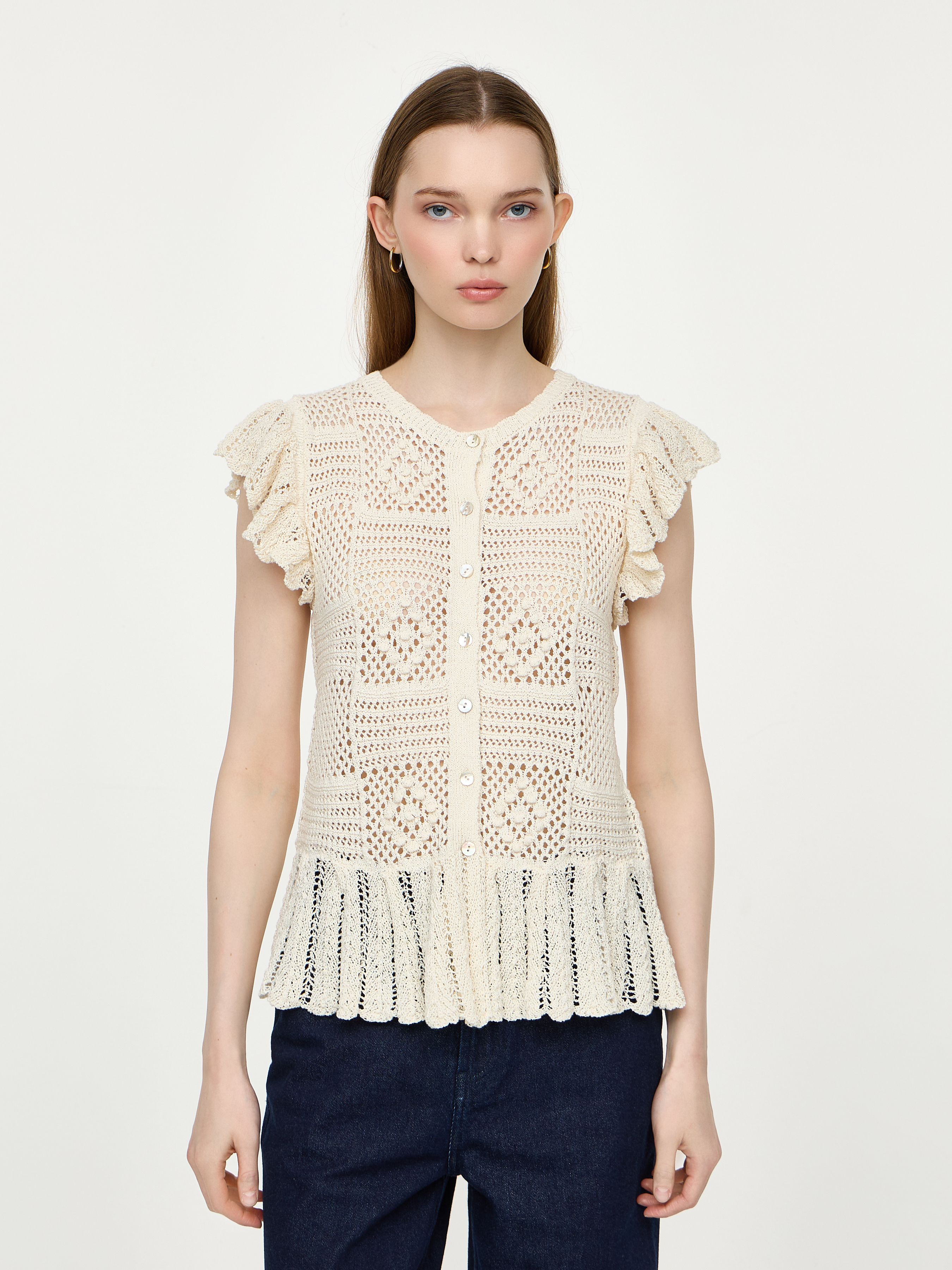KNITTED CARDIGAN WITH RUFFLES