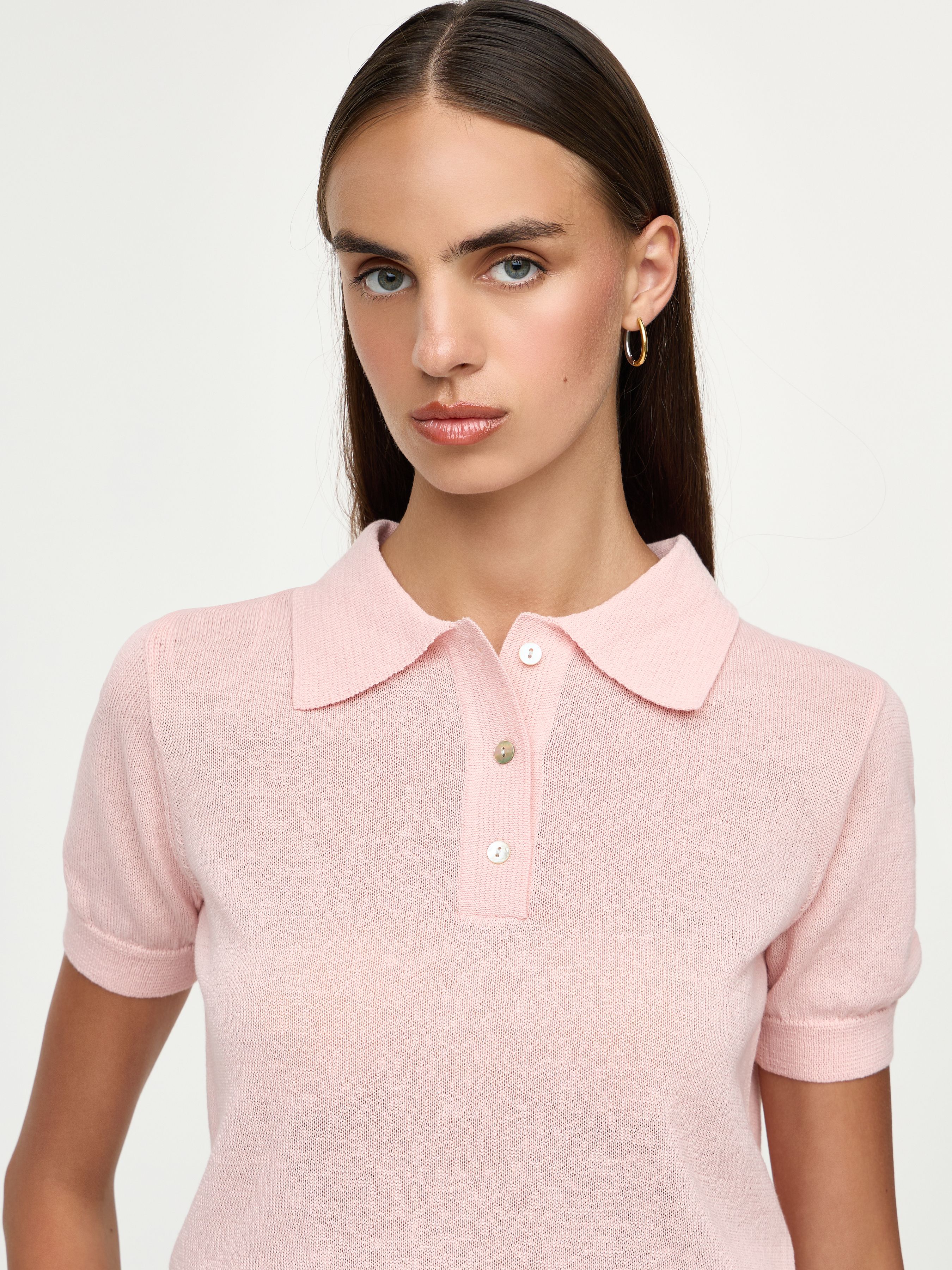 PLAIN FINE KNIT POLO IN LINEN