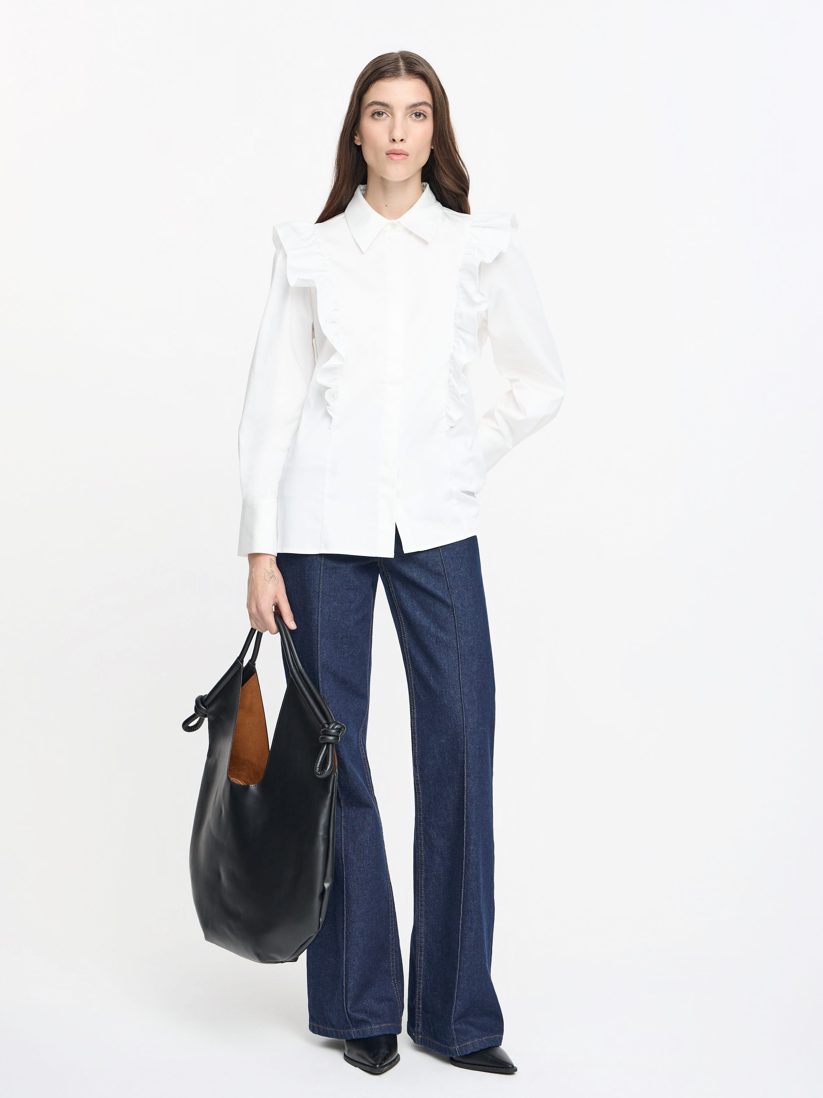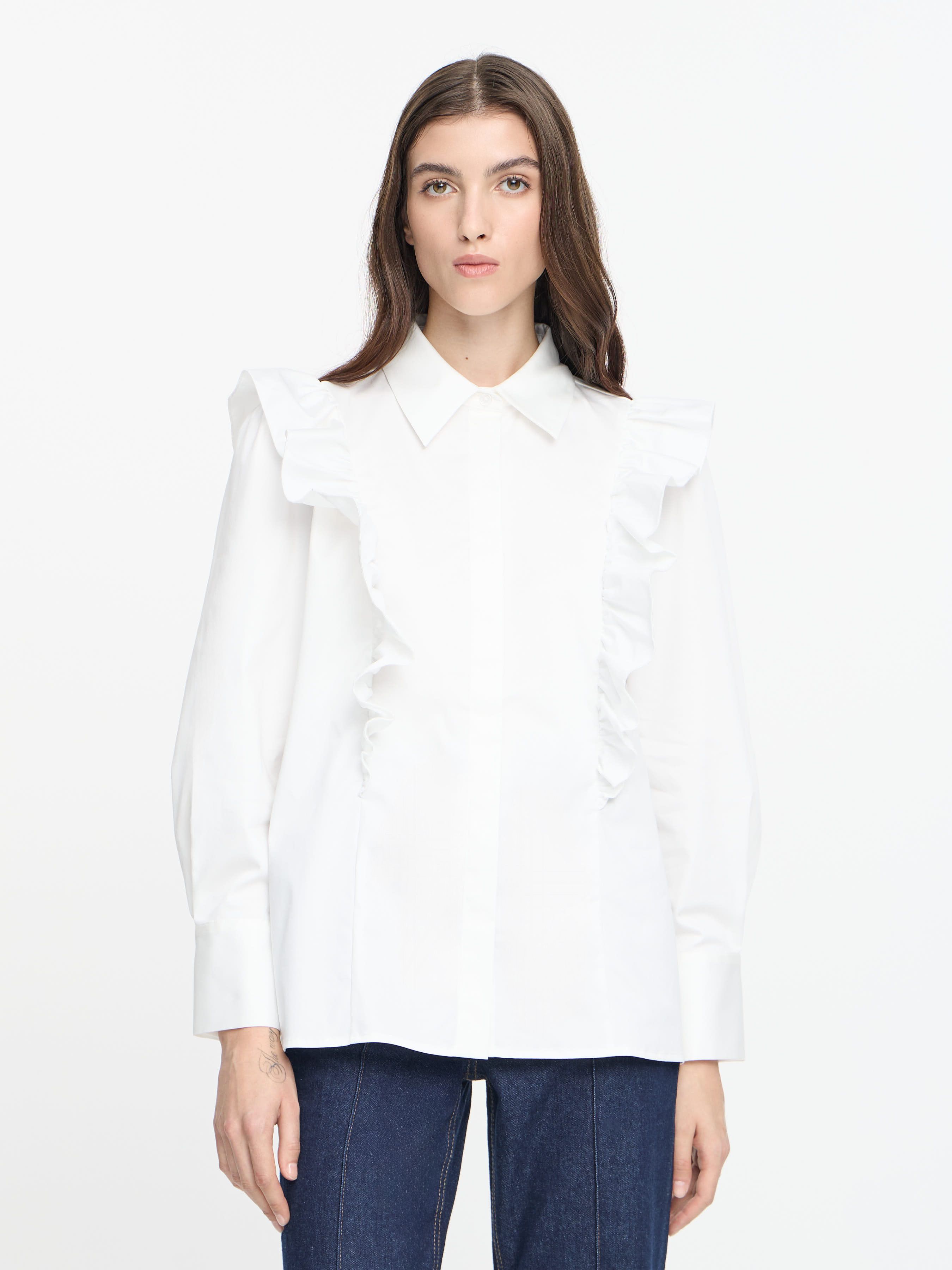 SATINATED POPLIN SHIRT WITH RUFFLES