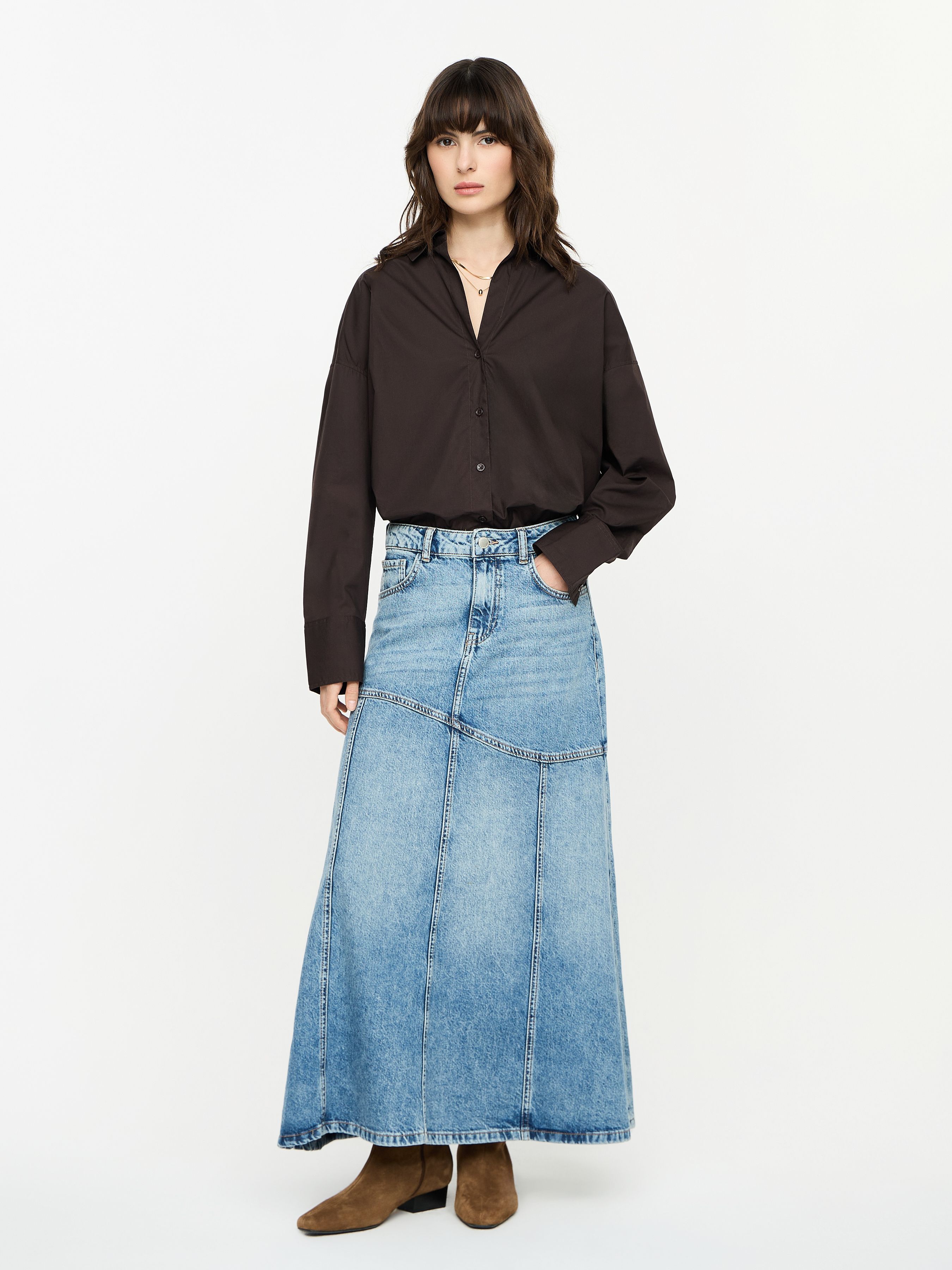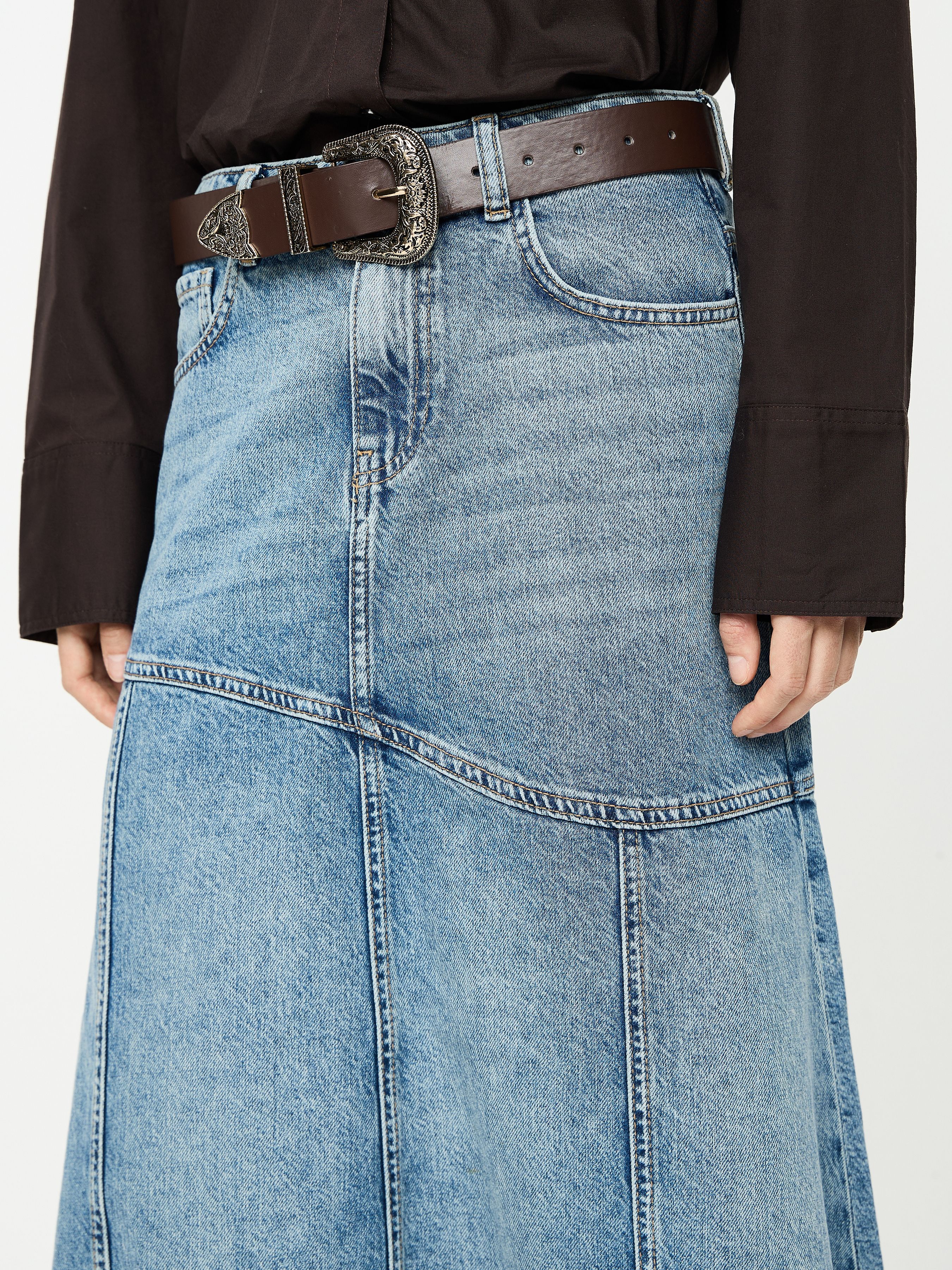 DENIM SKIRT WITH ASYMMETRIC SEAM