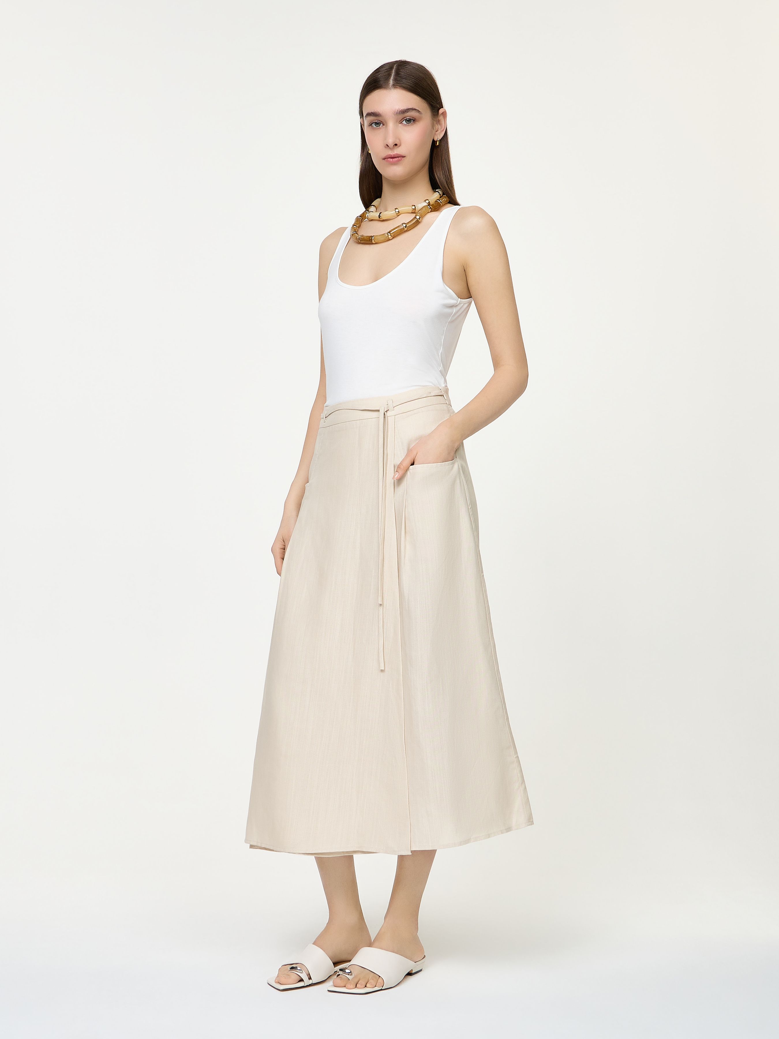 MAAG. LINEN BLEND WRAP SKIRT