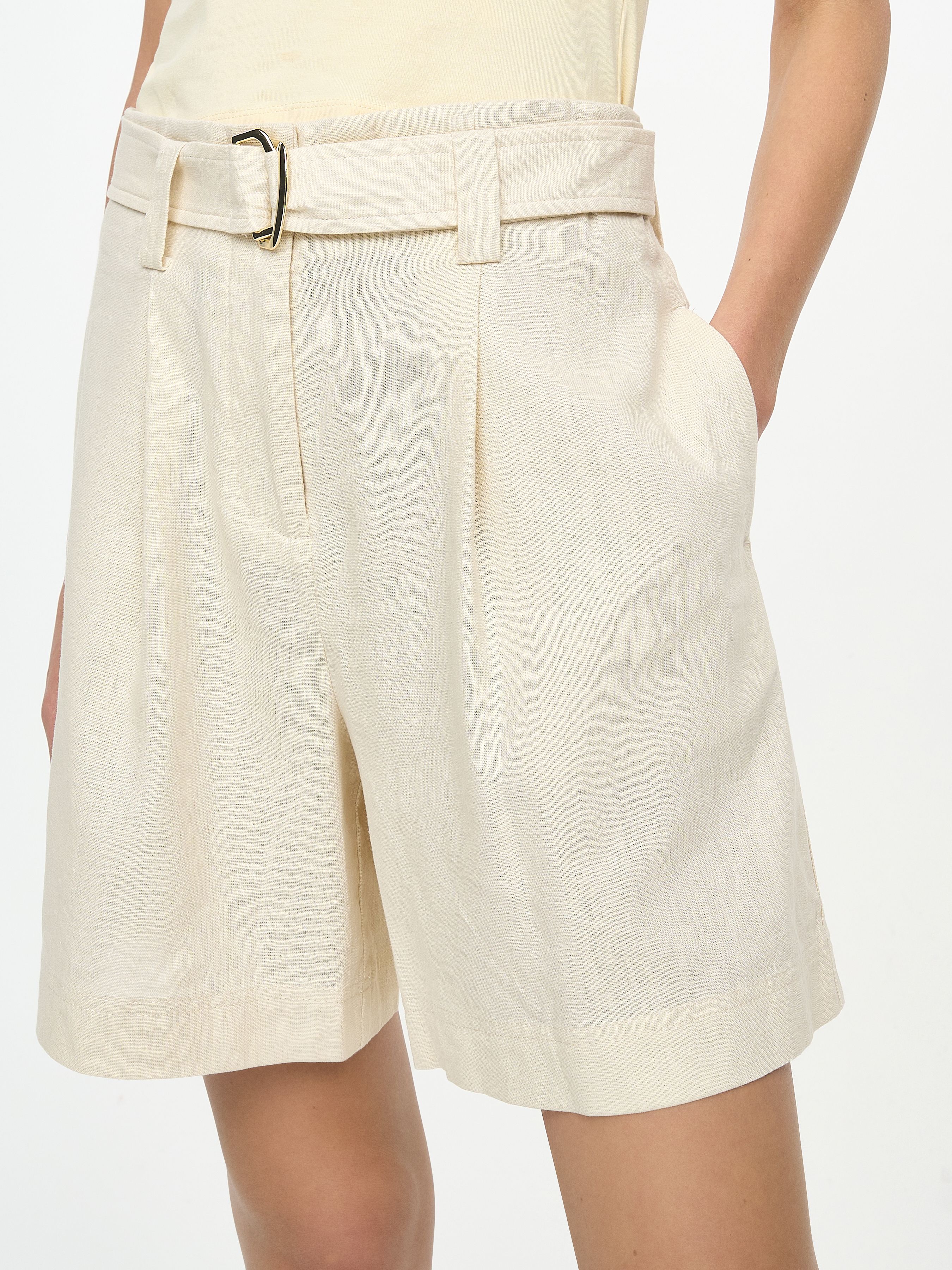 LINEN VISCOSE BERMUDA SHORTS WITH BELT