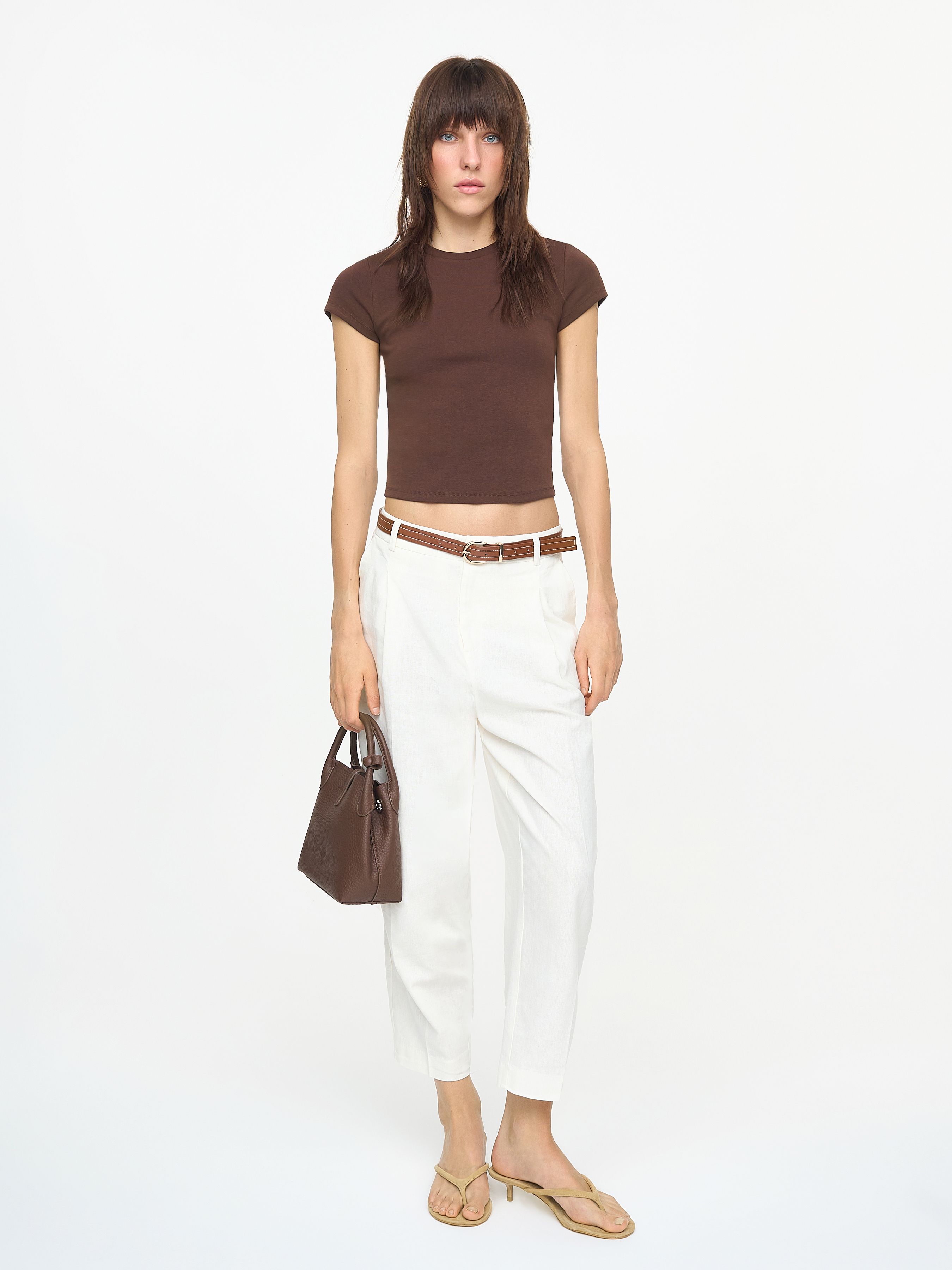 LINEN VISCOSE CARROT TROUSERS