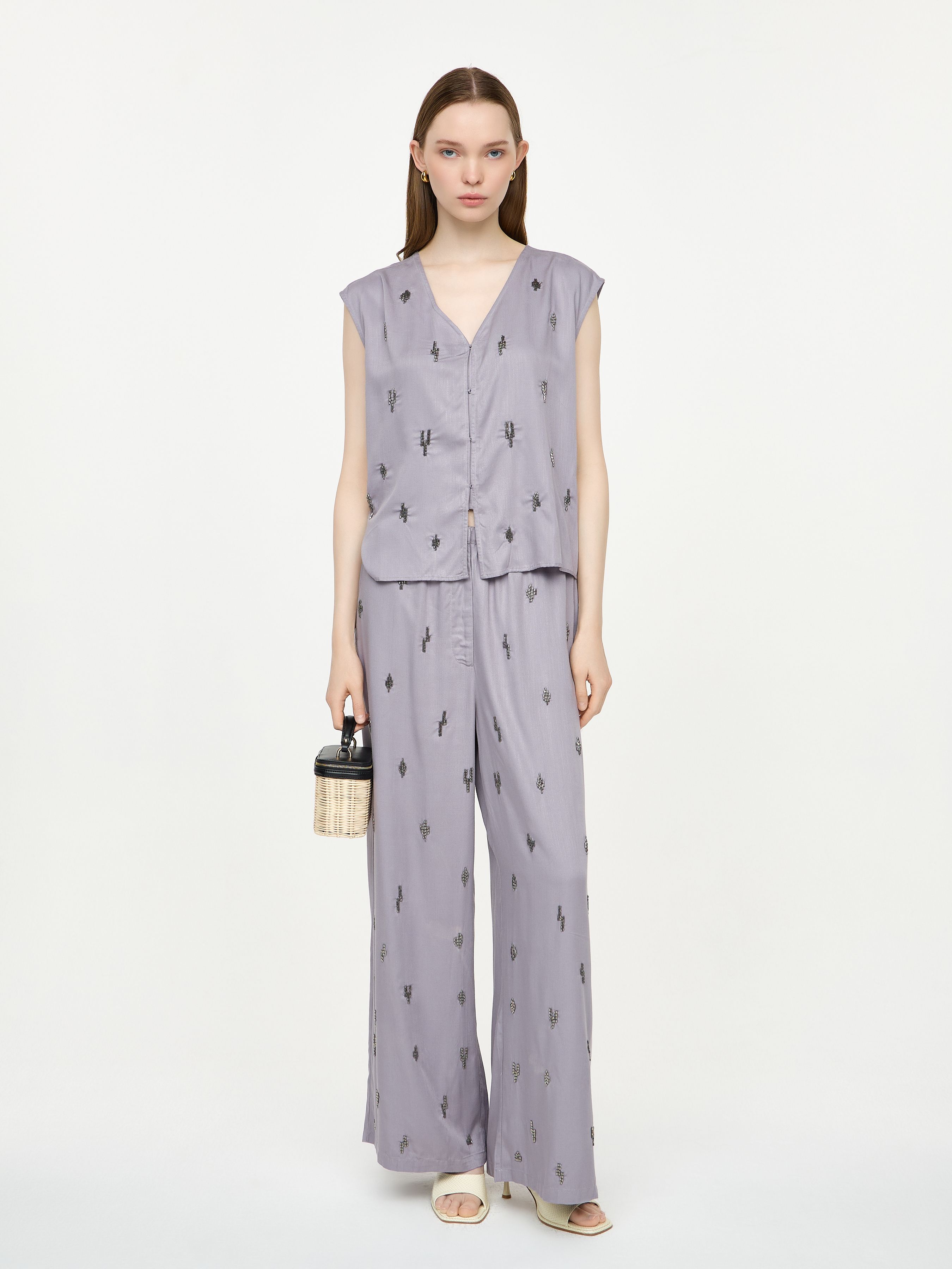 VISCOSE TROUSERS WITH EMBELLISHMENT