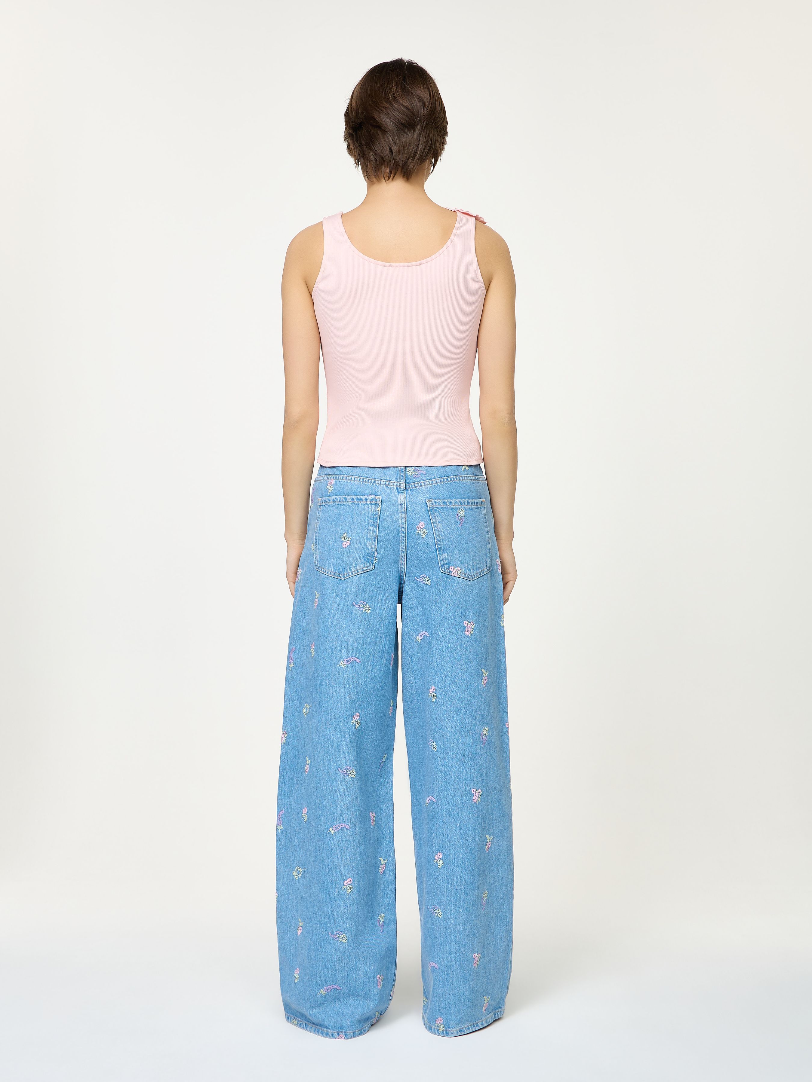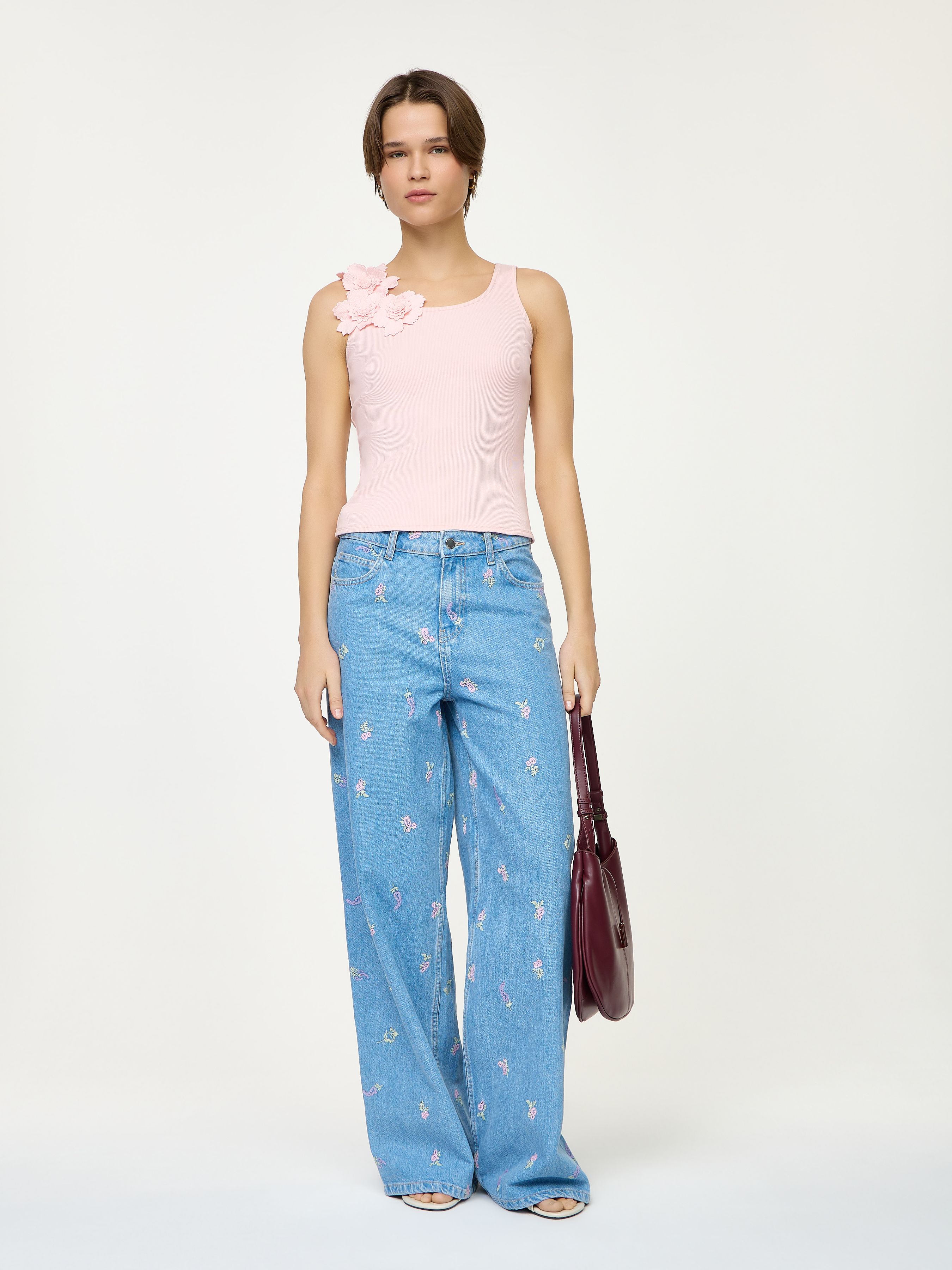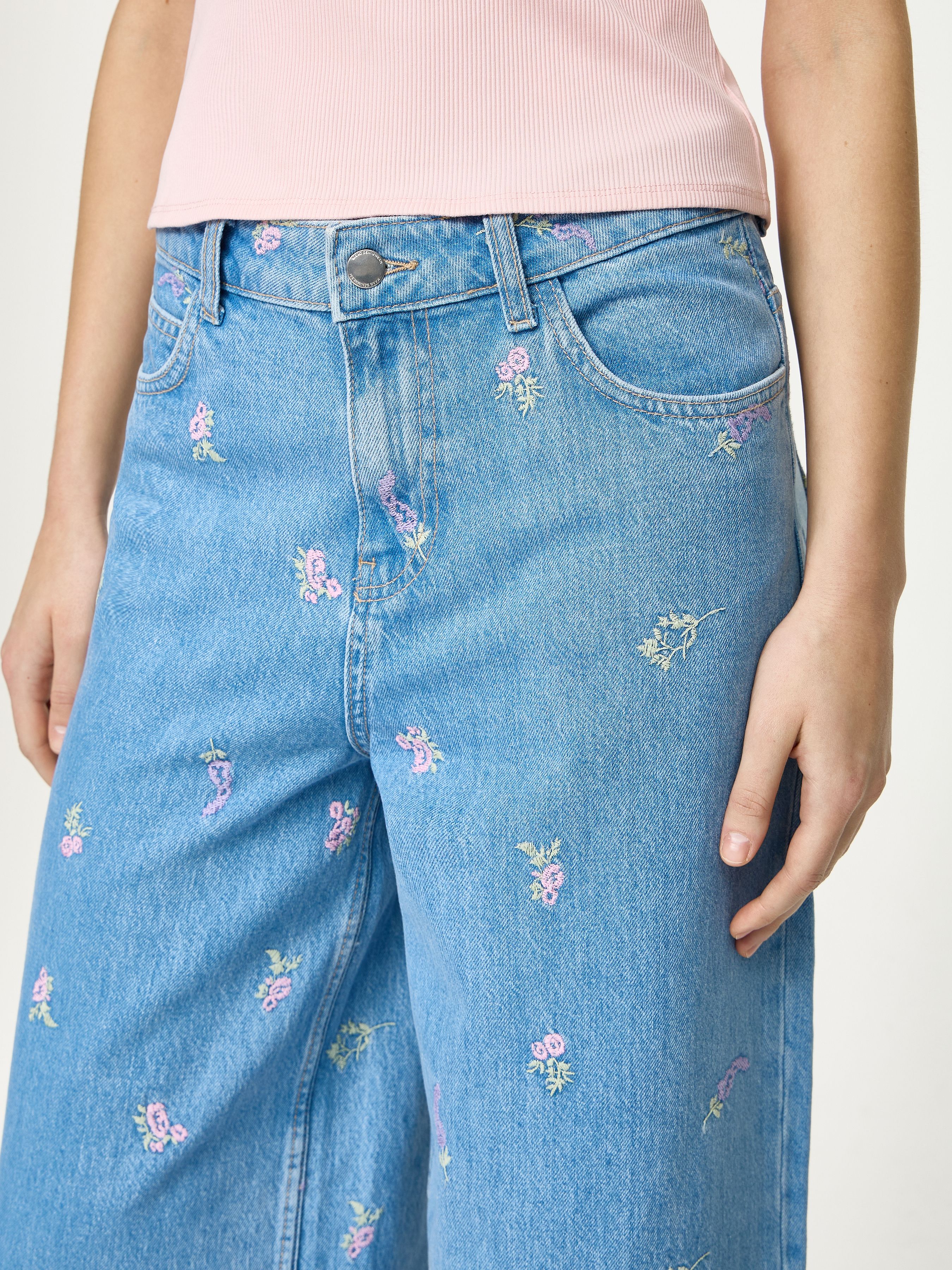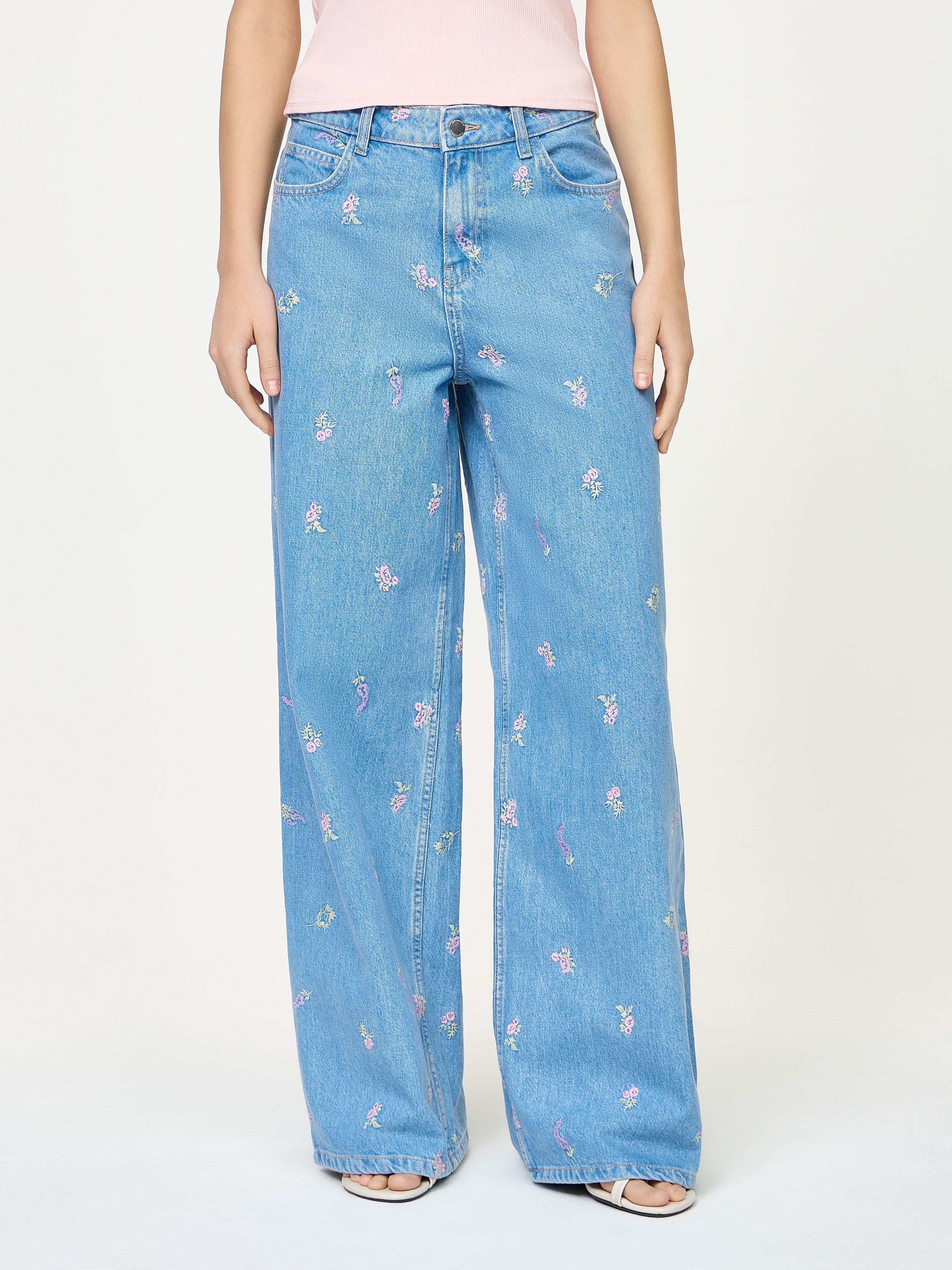 MID RISE WIDE LEG JEANS WITH EMBROIDERY