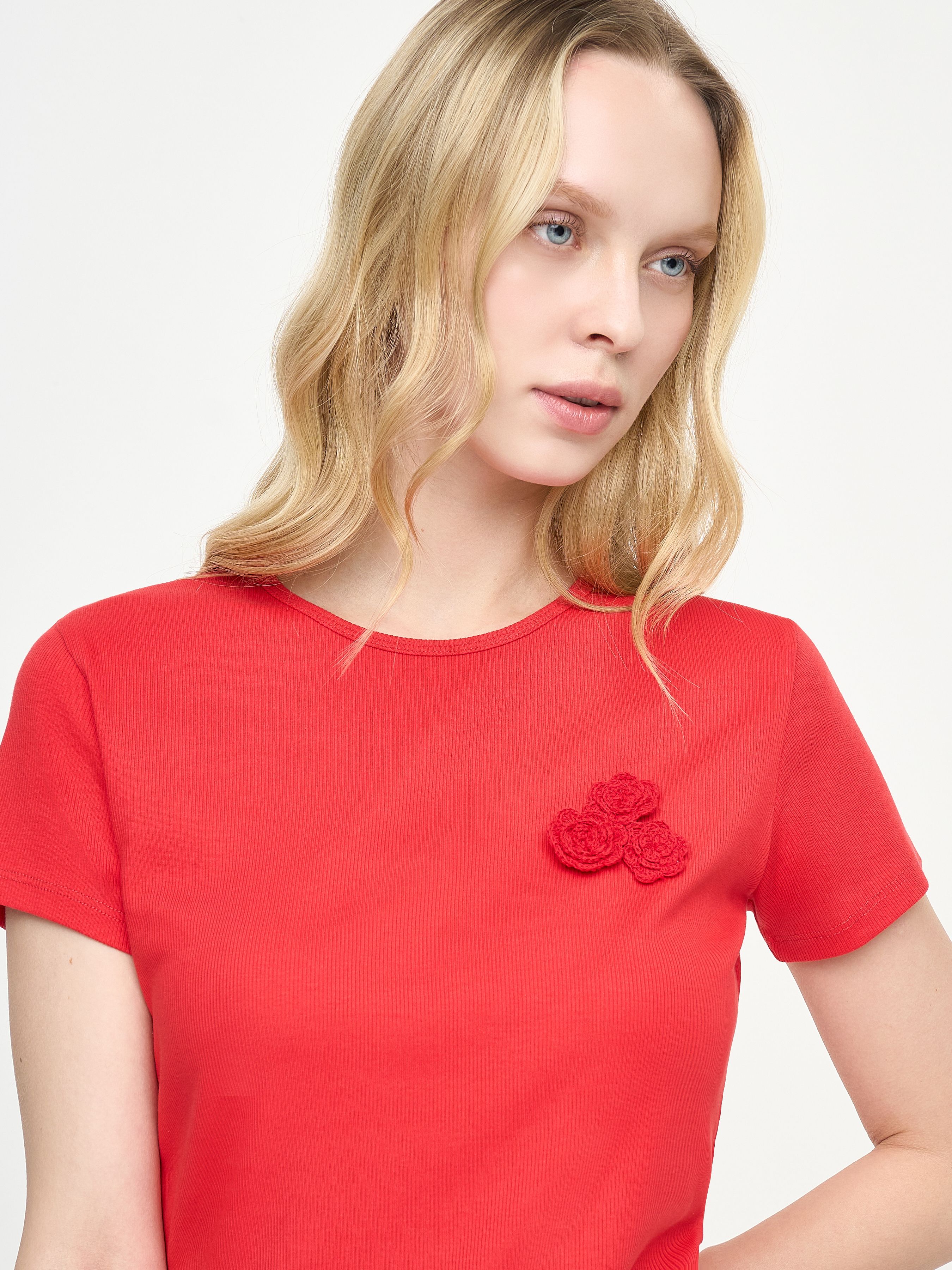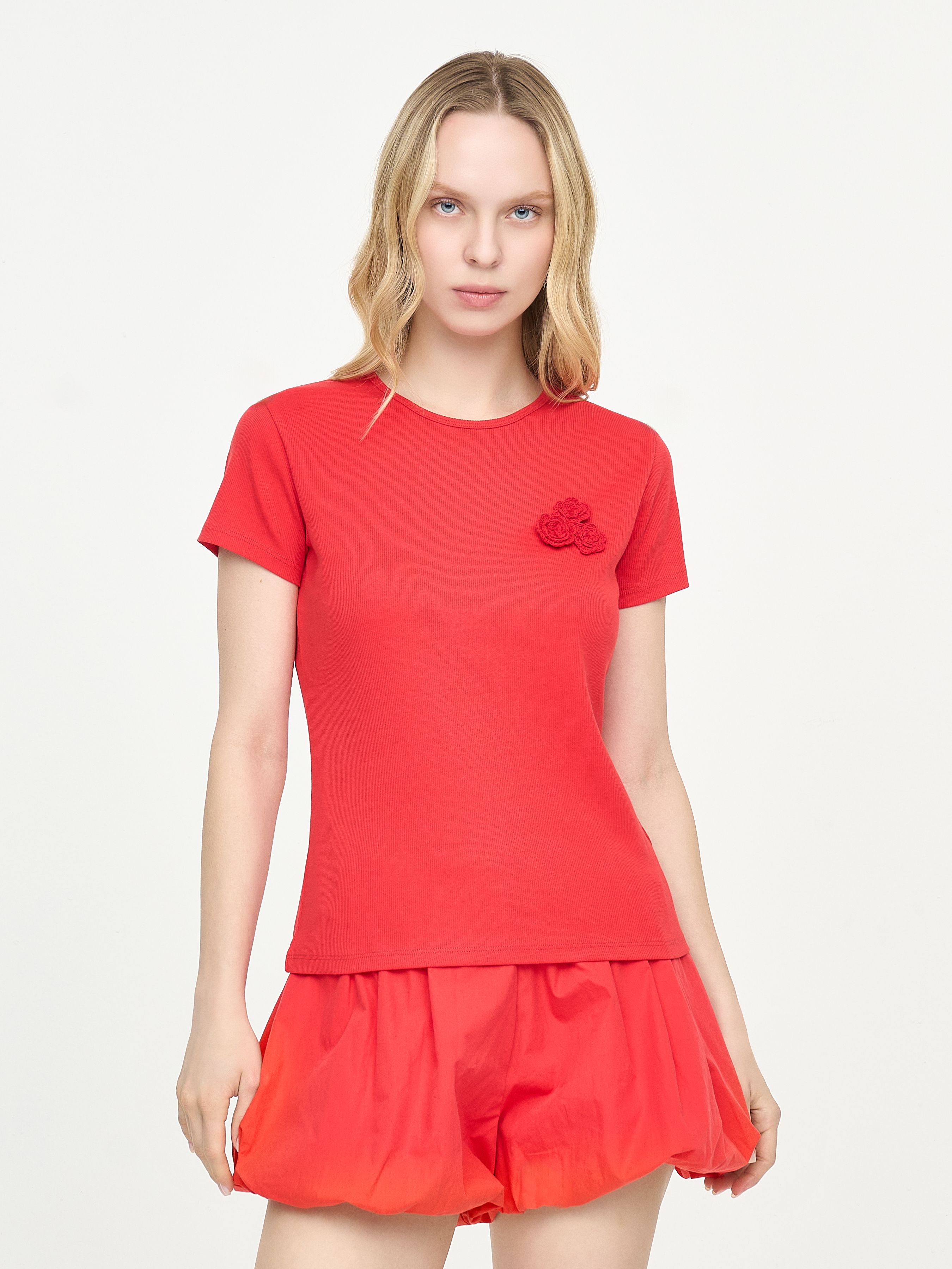 T-SHIRT WITH FLOWER APPLIQUÉ