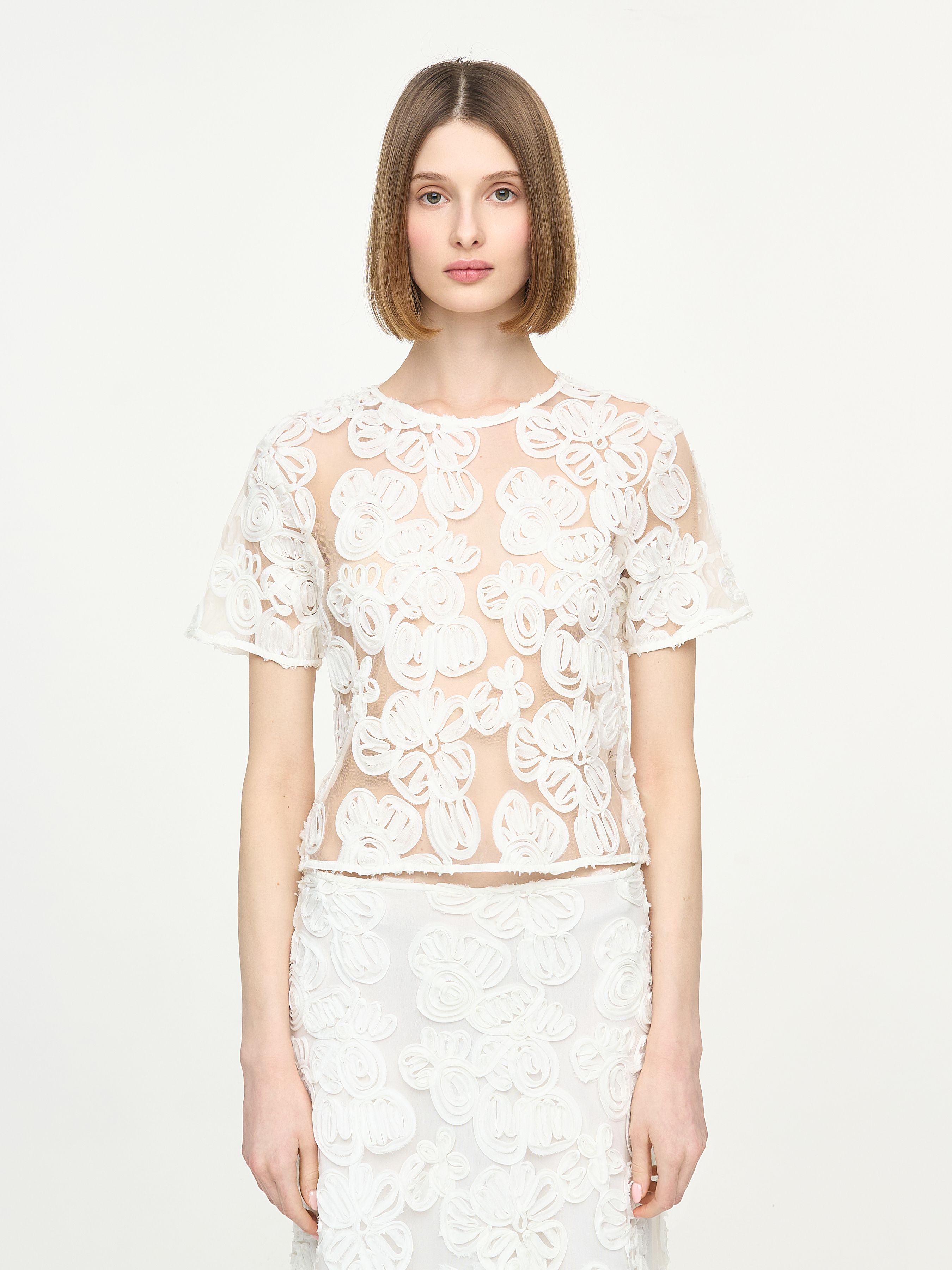 EMBROIDERED MESH TOP