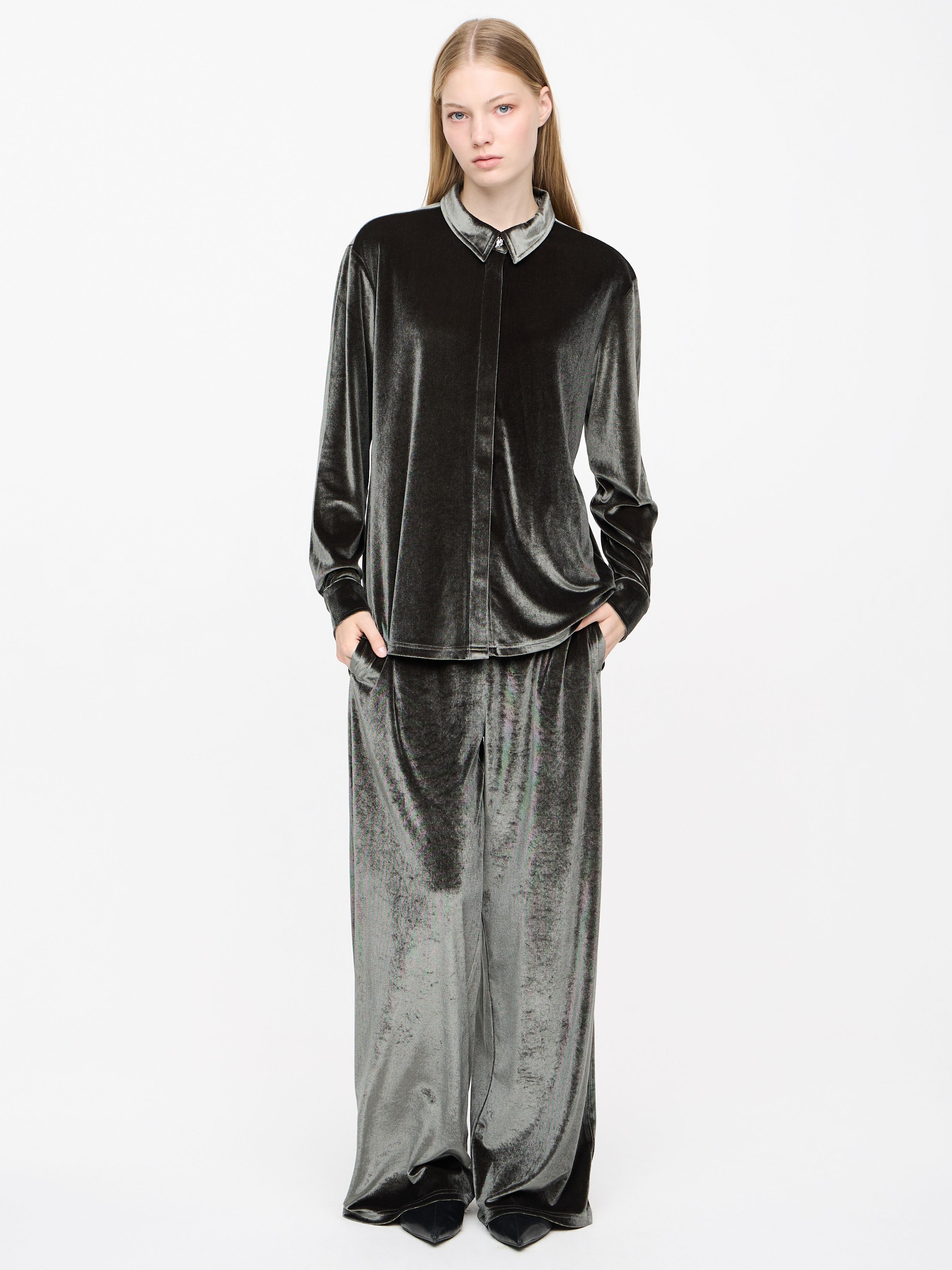 VELVET EMBELLISHED SHIRT