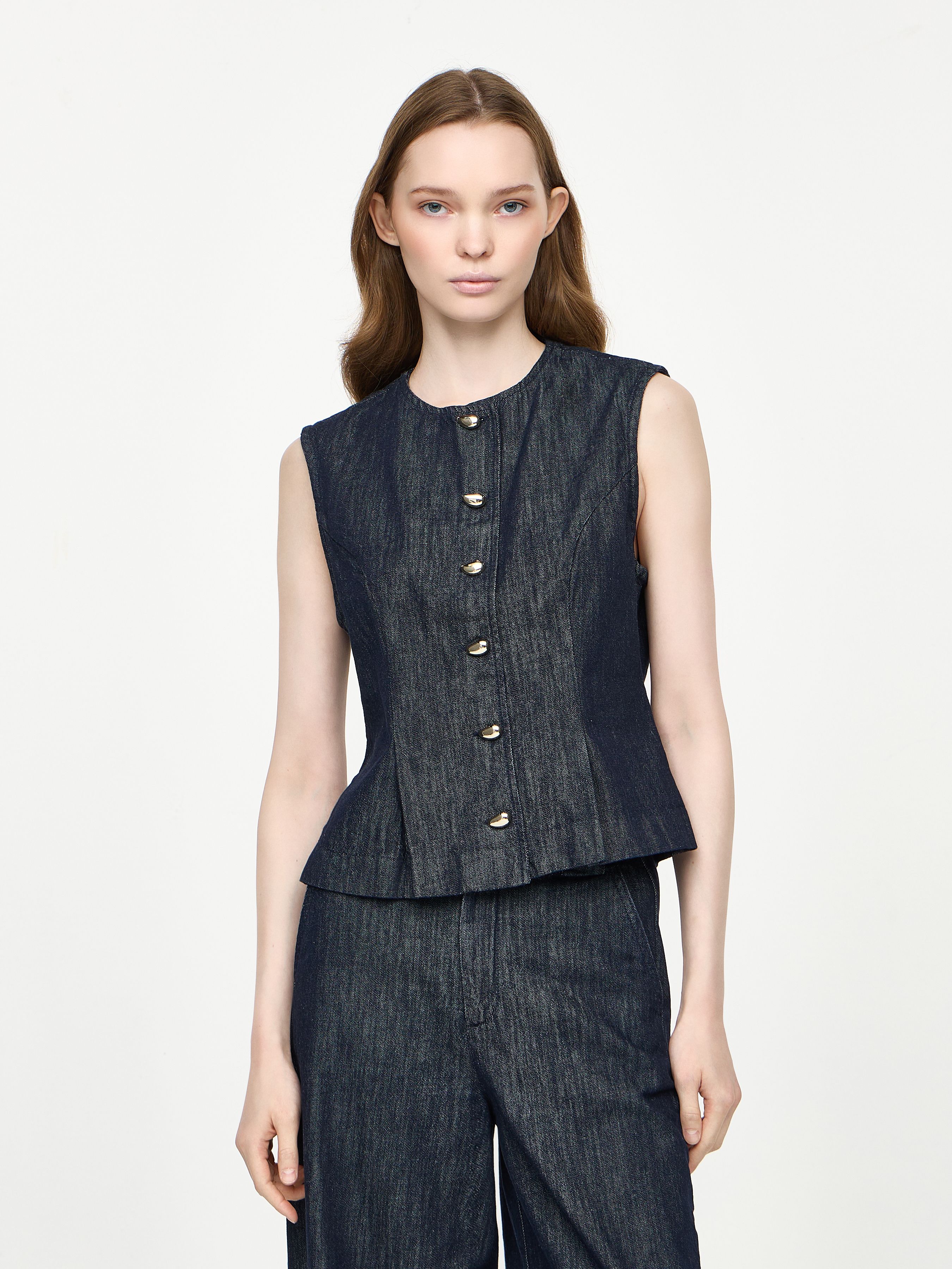 DENIM VEST WITH DART DETAIL