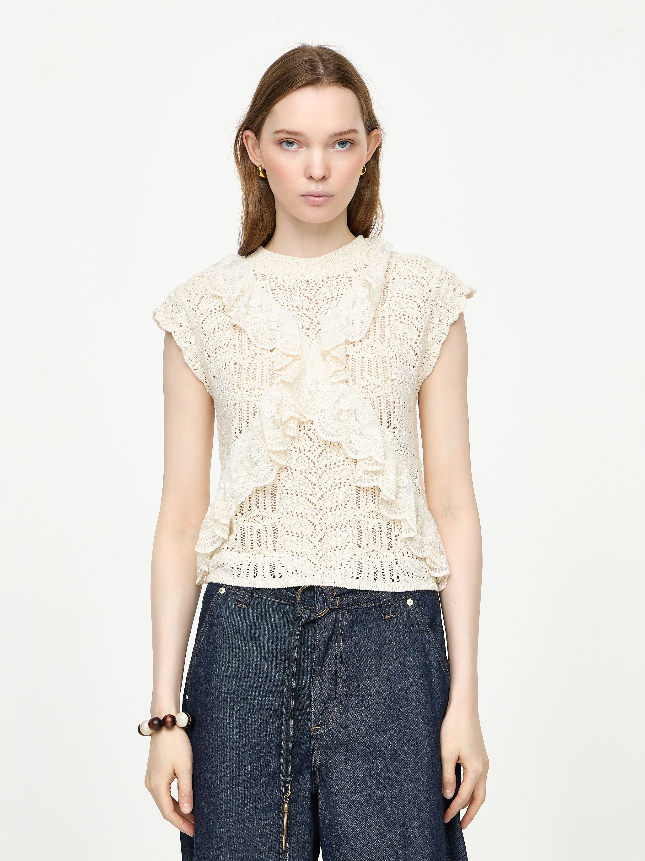 KNITTED TOP WITH RUFFLES