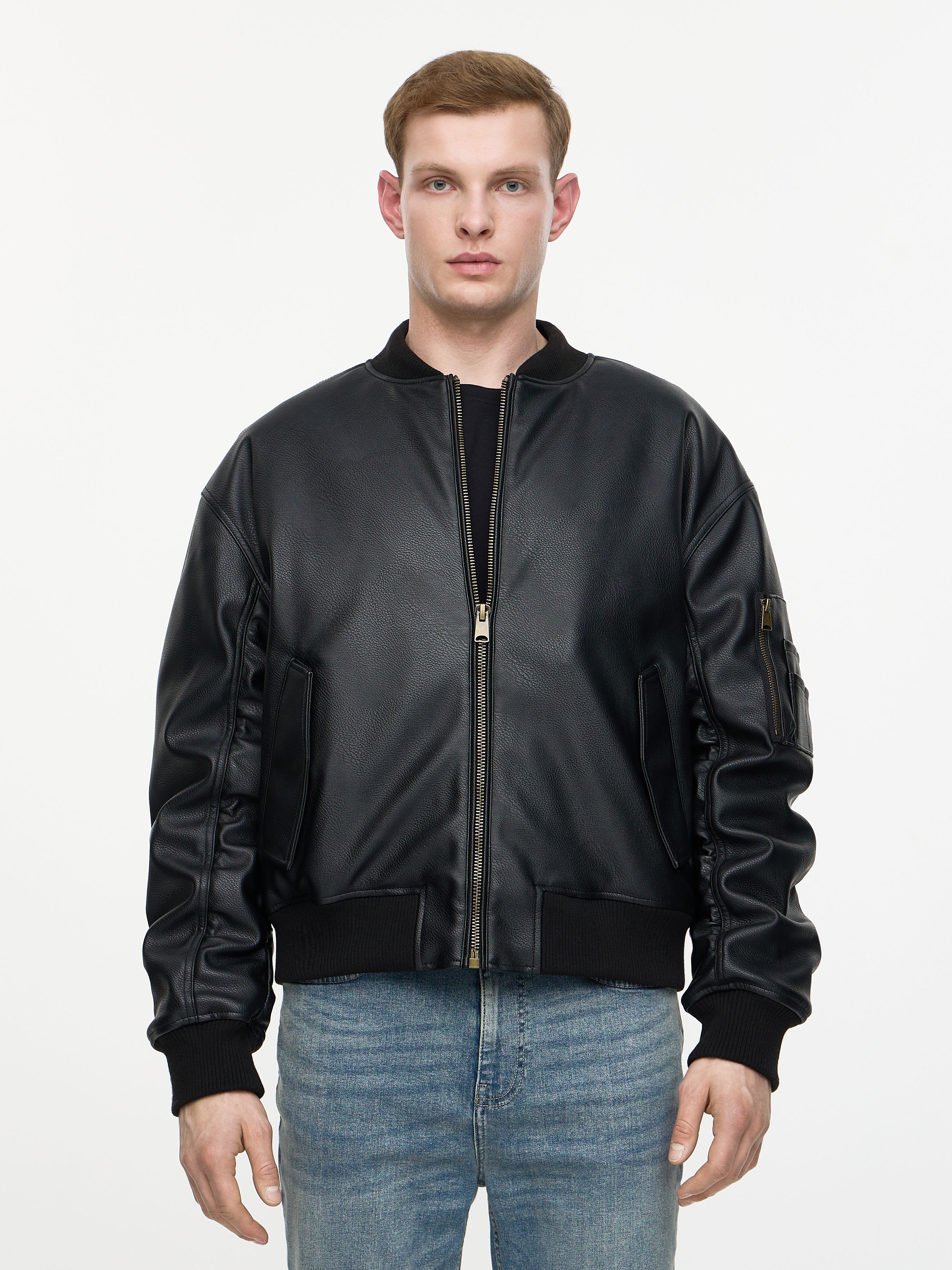 LEATHER EFFECT OVERSIZE BOMBER