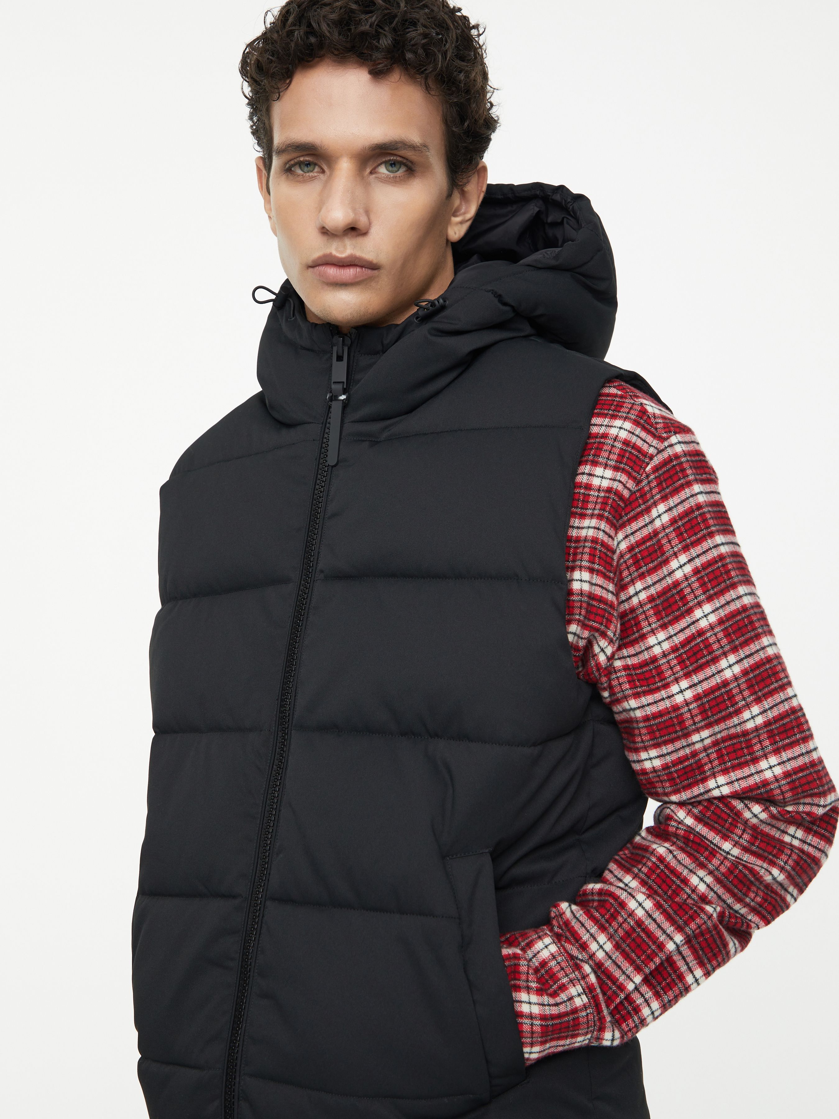 COTTON EFFECT VEST WITH HOOD