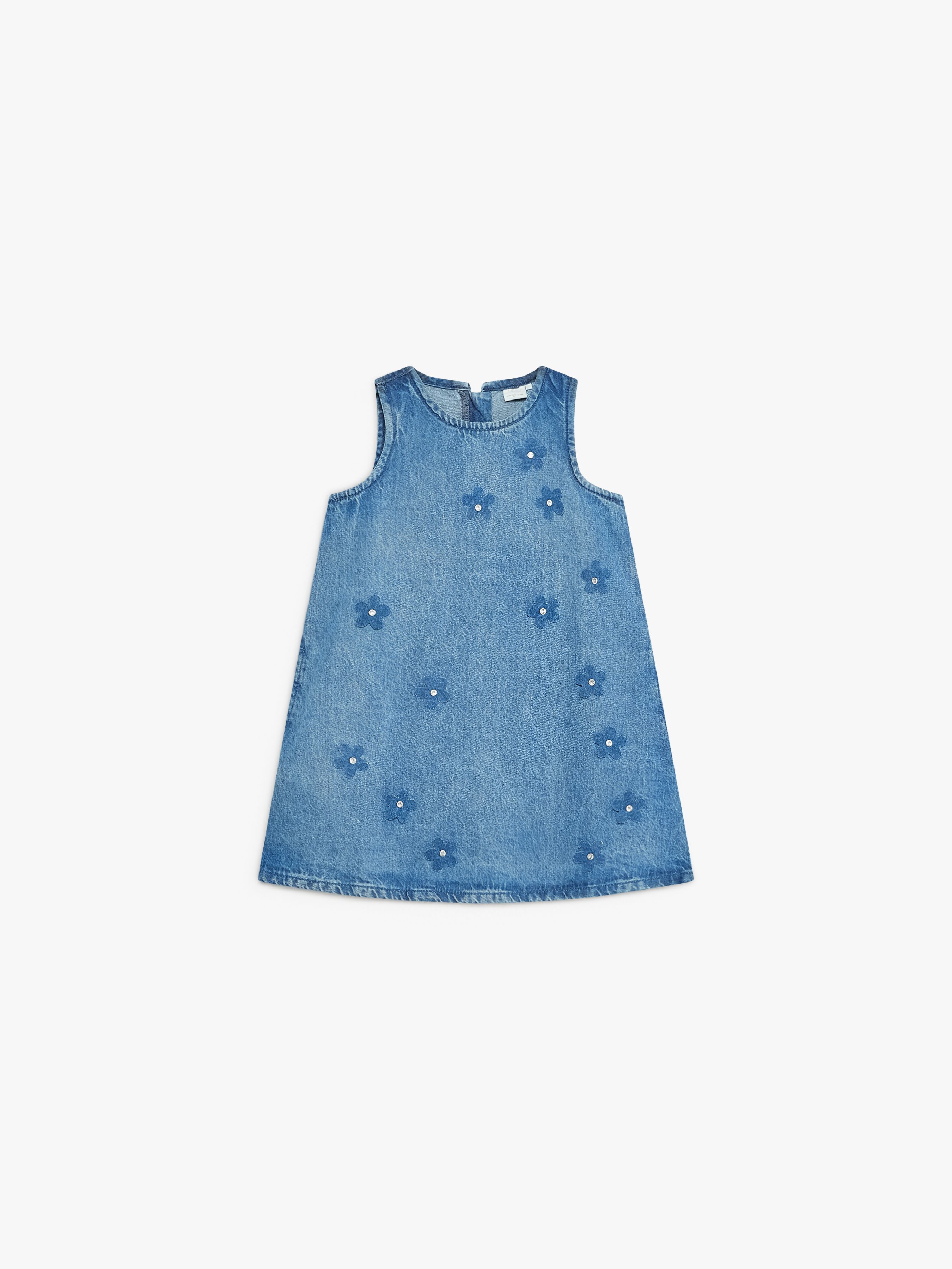 DENIM DRESS WITH FLOWERS