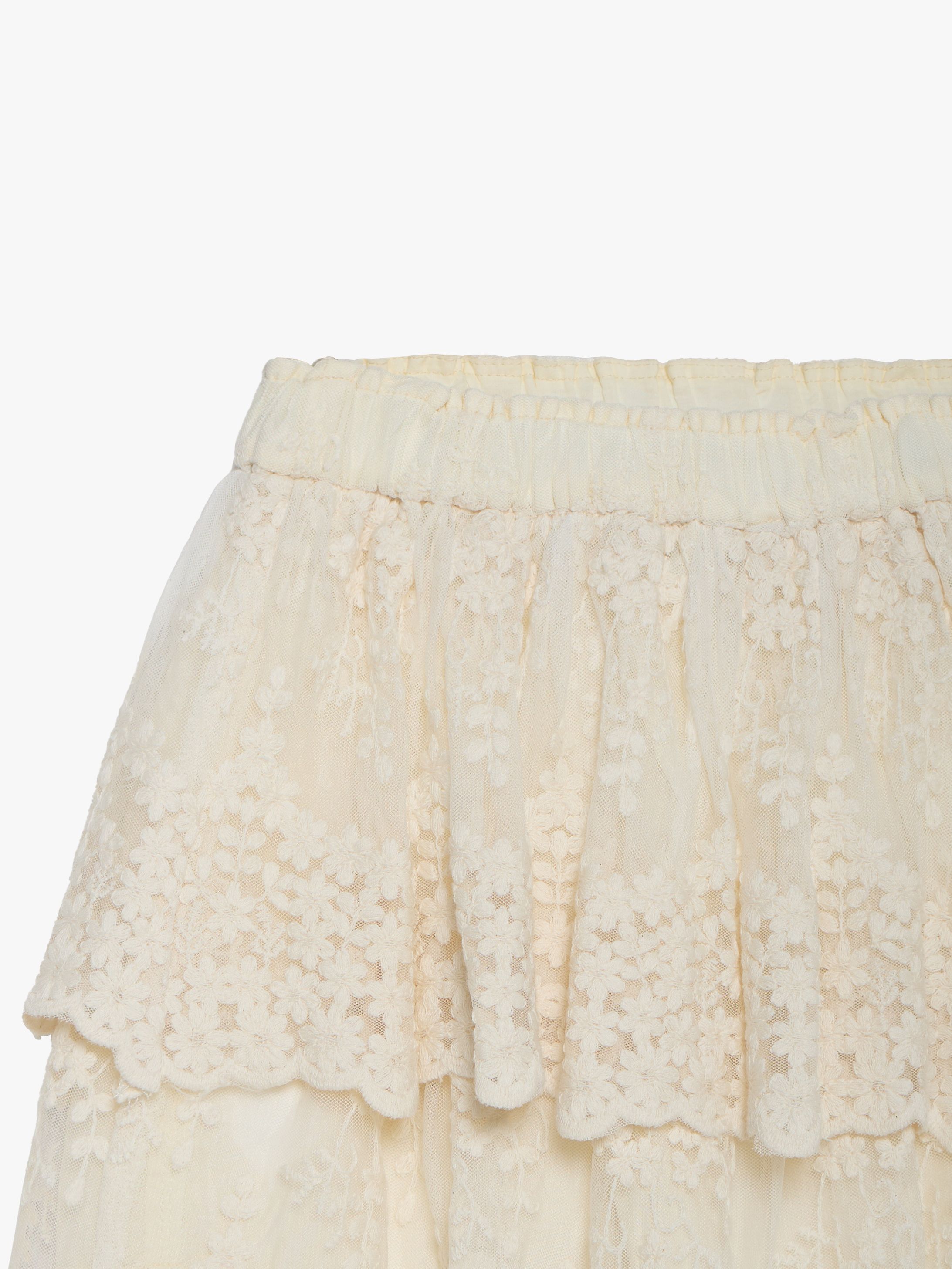 EMBROIDERED GAUZE RUFFLES SKIRT