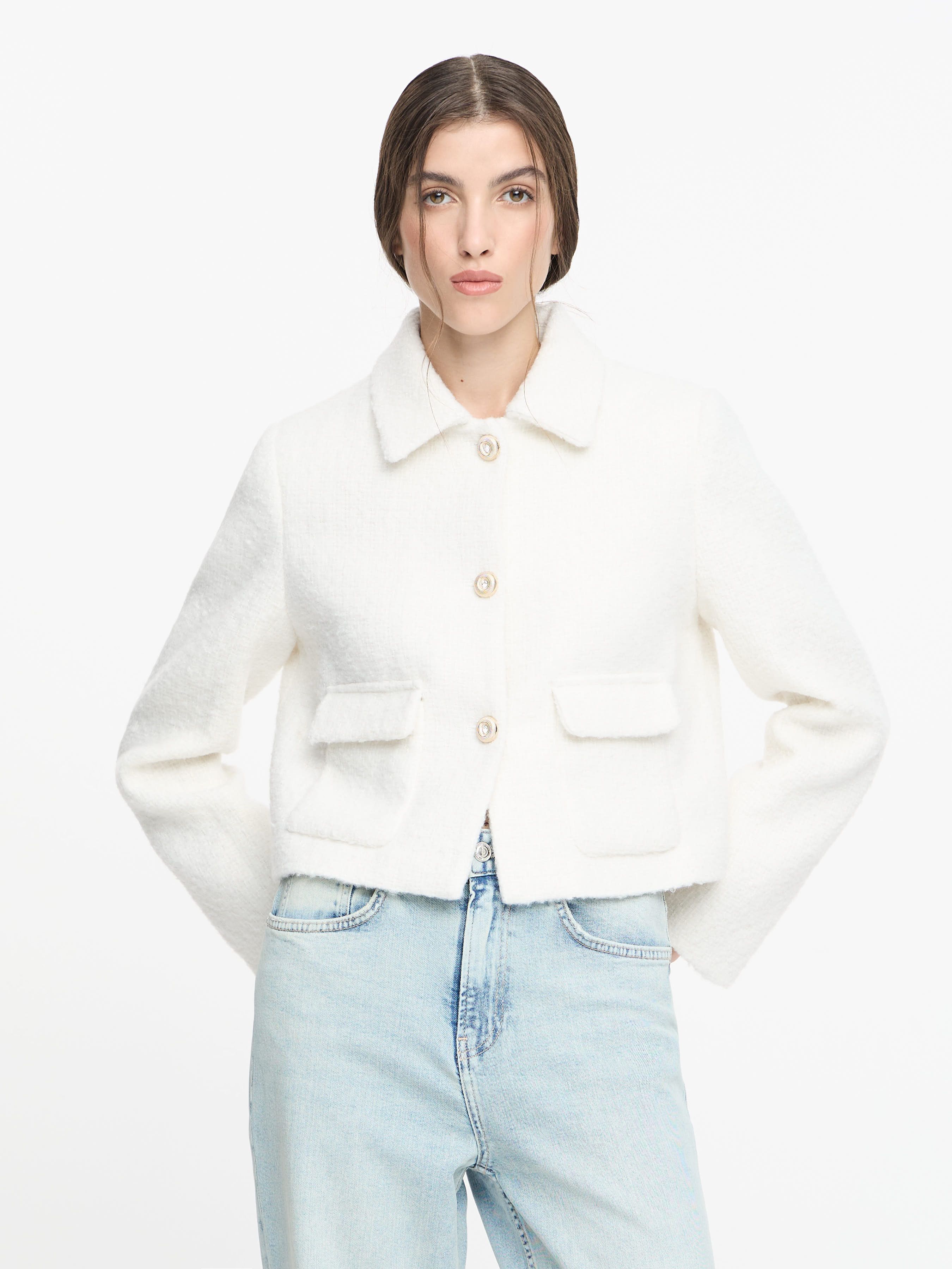 ТВИДОВЫЙ БЛЕЙЗЕР С ДЕКОРАТИВНЫМИ ПУГОВИЦАМИ