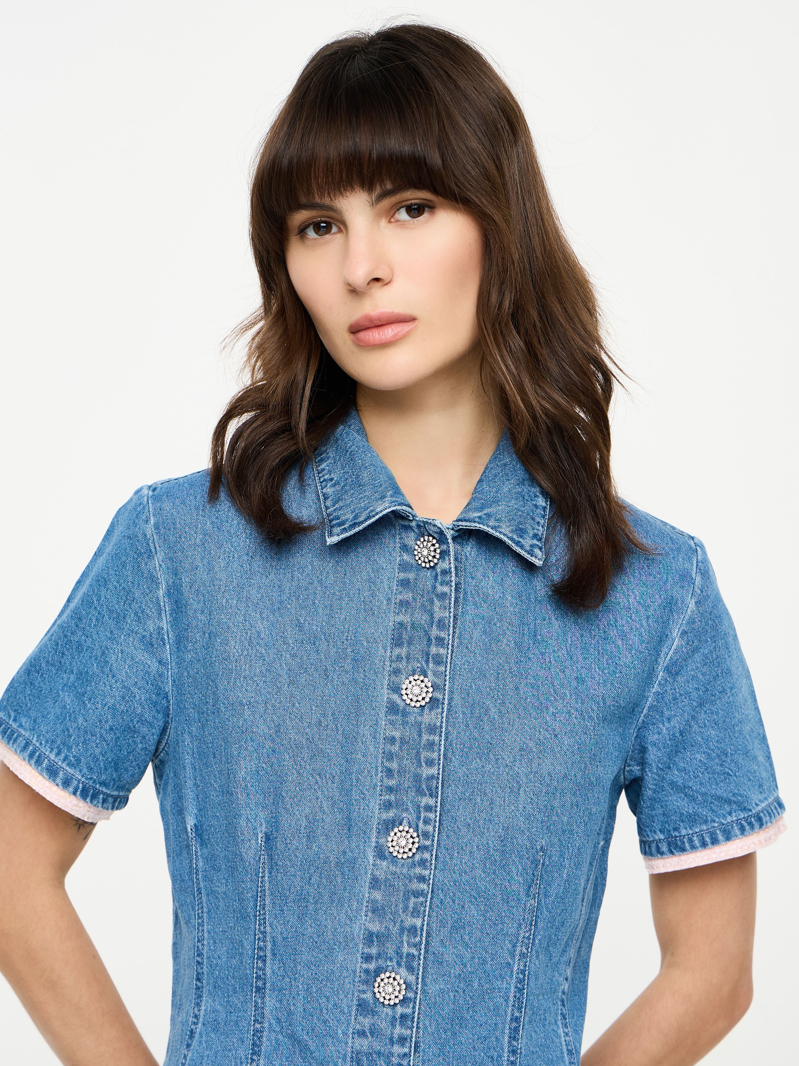 ДЖИНСОВОЕ ПЛАТЬЕ С КОРОТКИМ РУКАВОМ