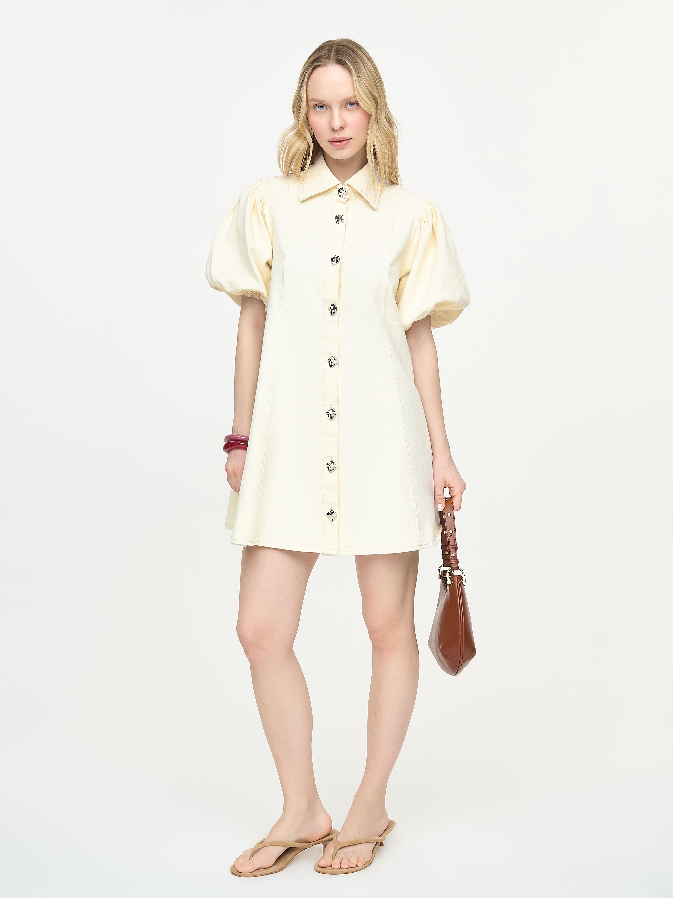 МИНИ-ПЛАТЬЕ С ОБЪЕМНЫМИ РУКАВАМИ