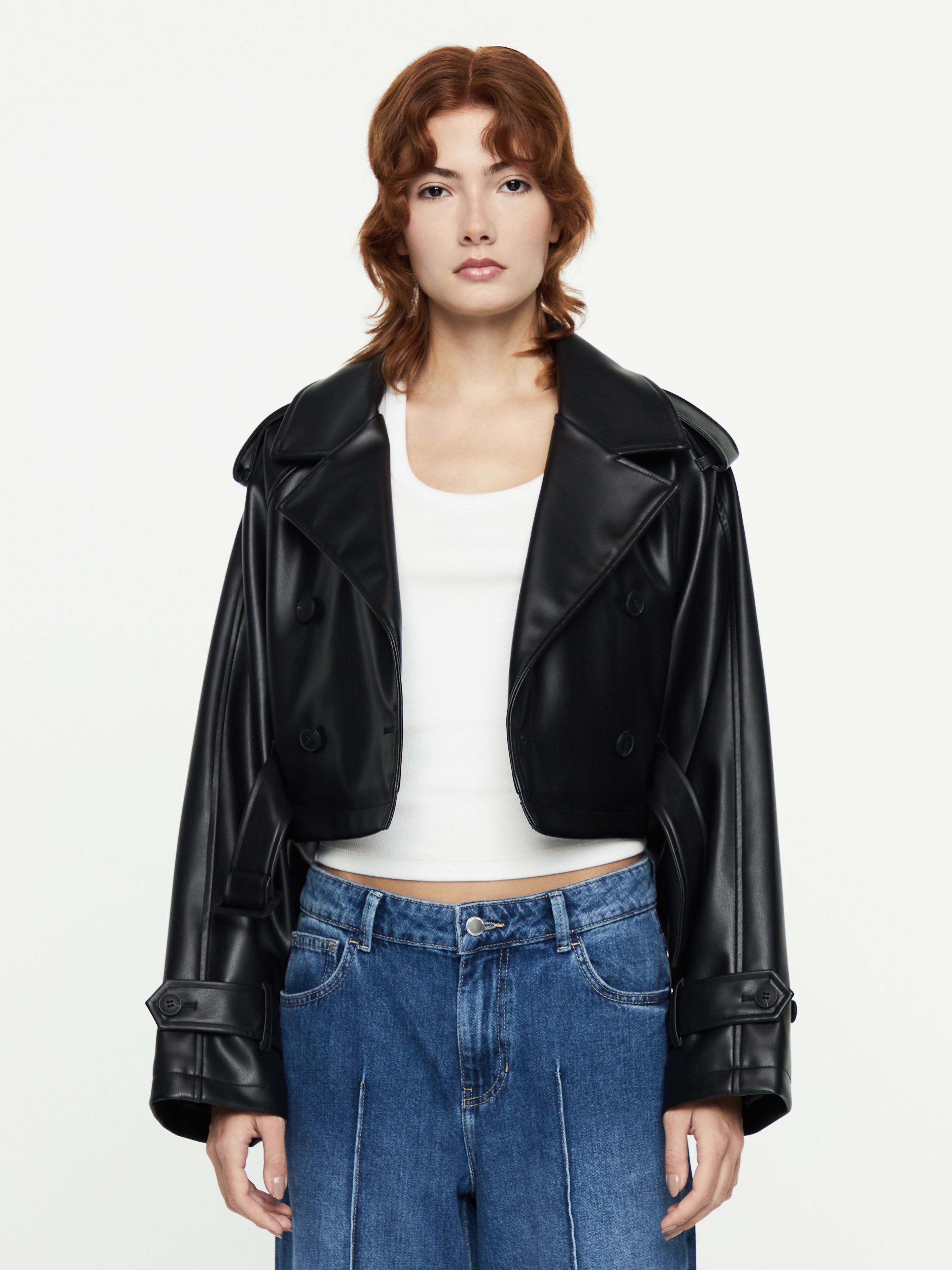 УКОРОЧЕННЫЙ ЖАКЕТ ИЗ ЭКОКОЖИ