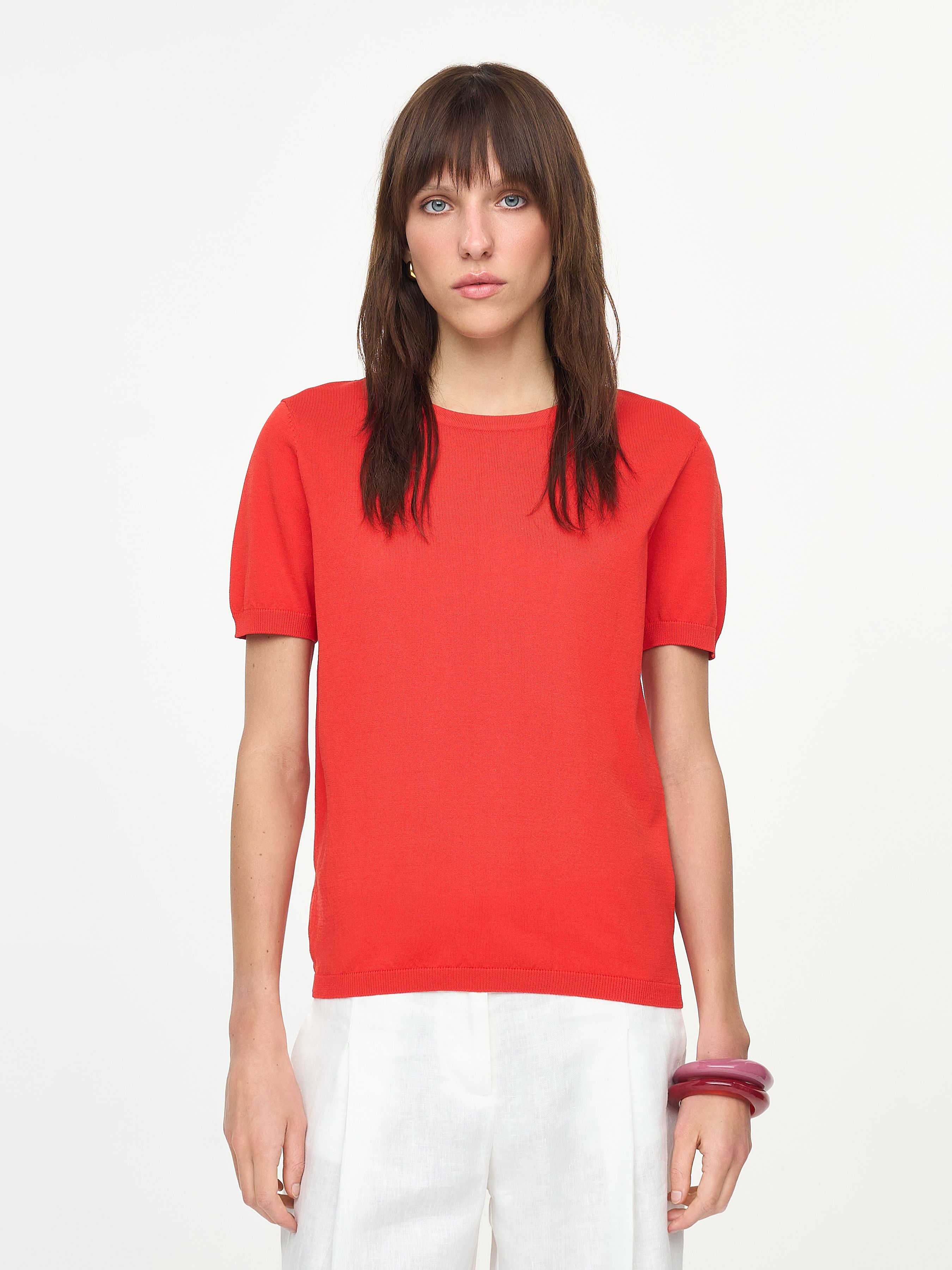 ТРИКОТАЖНЫЙ ТОП С КОРОТКИМИ РУКАВАМИ