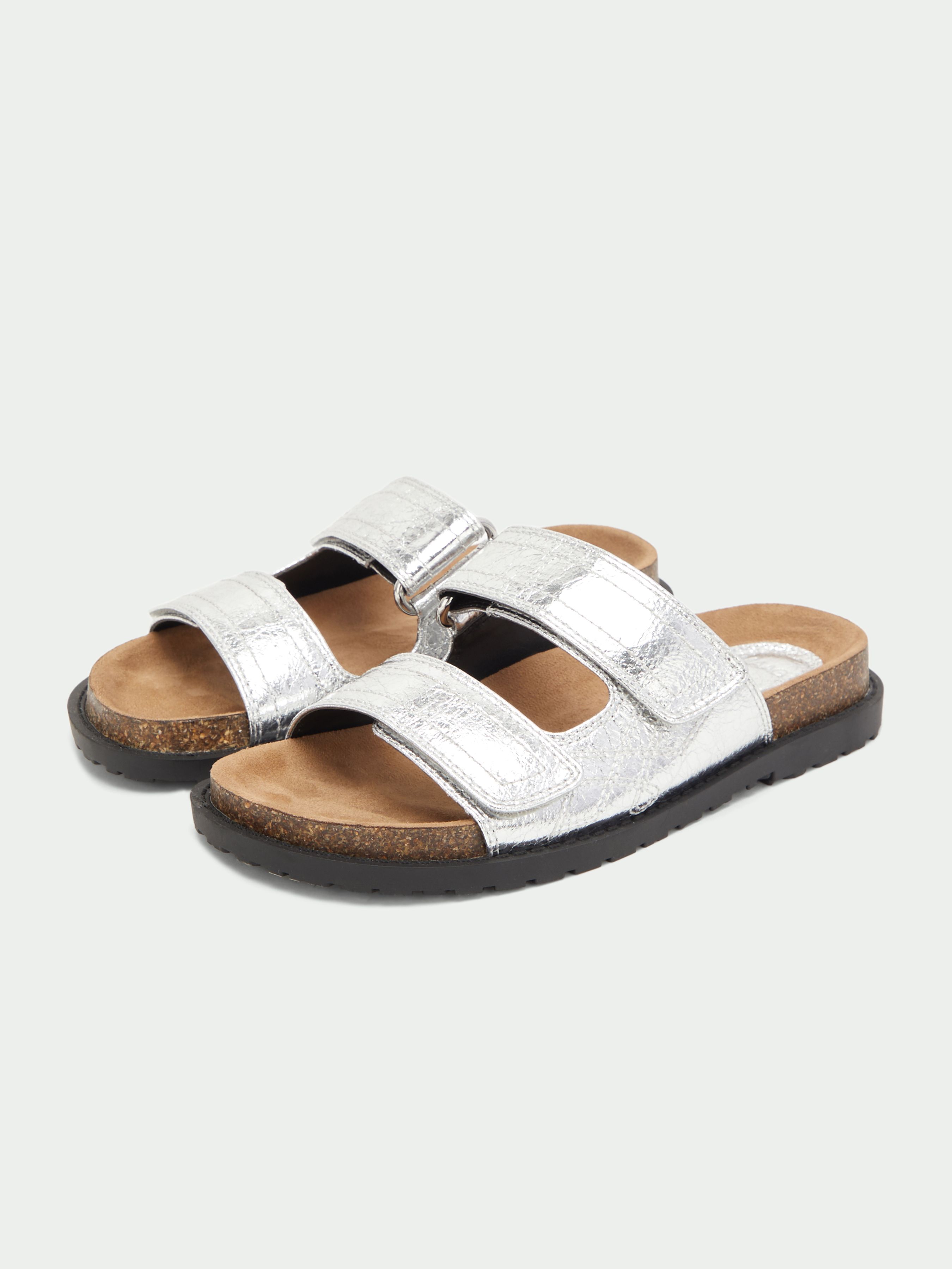 MAAG. СЕРЕБРИСТЫЕ САНДАЛИИ НА ПЛОСКОЙ ПОДОШВЕ
