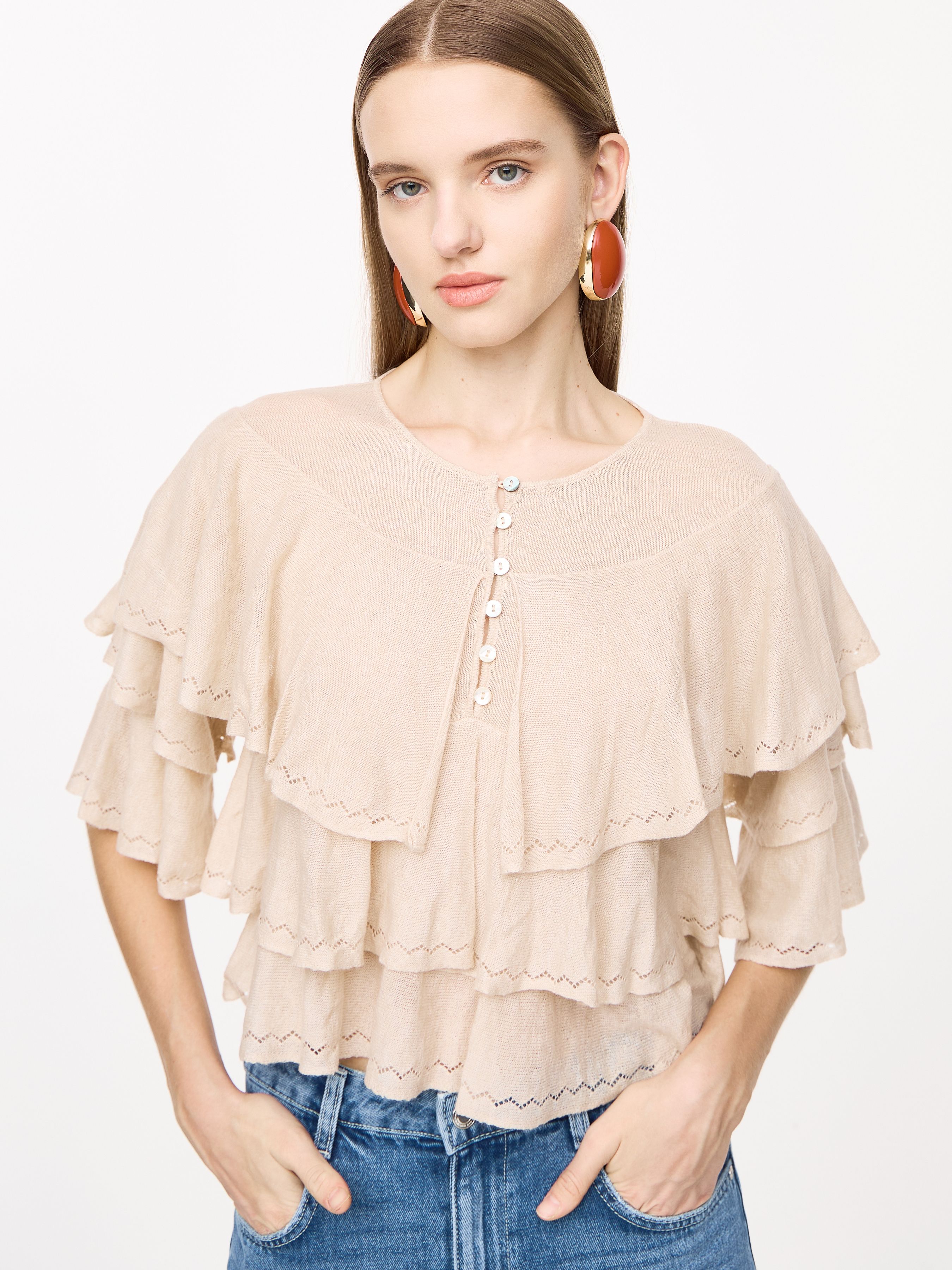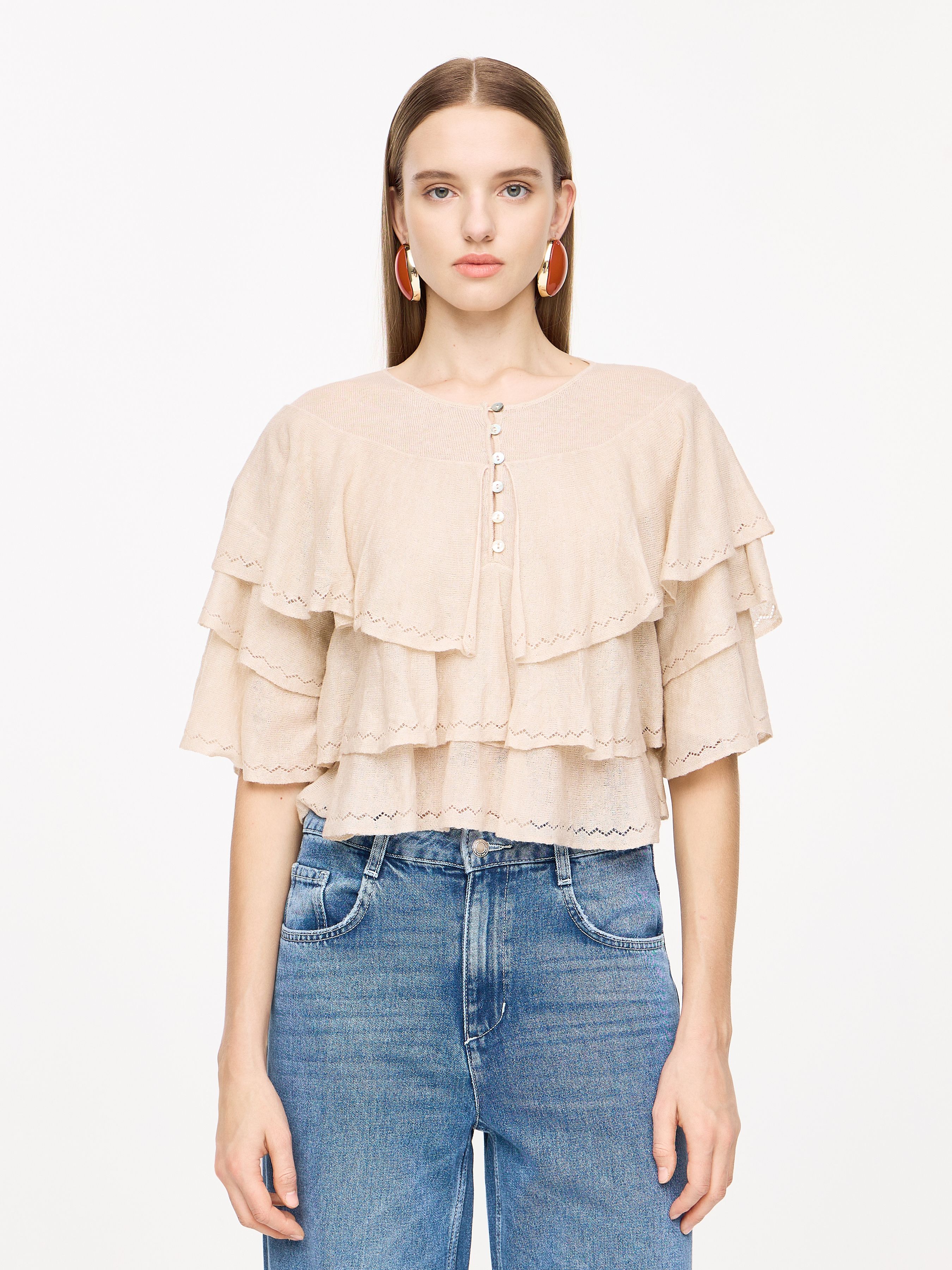 ТРИКОТАЖНЫЙ ТОП С ВОЛАНАМИ