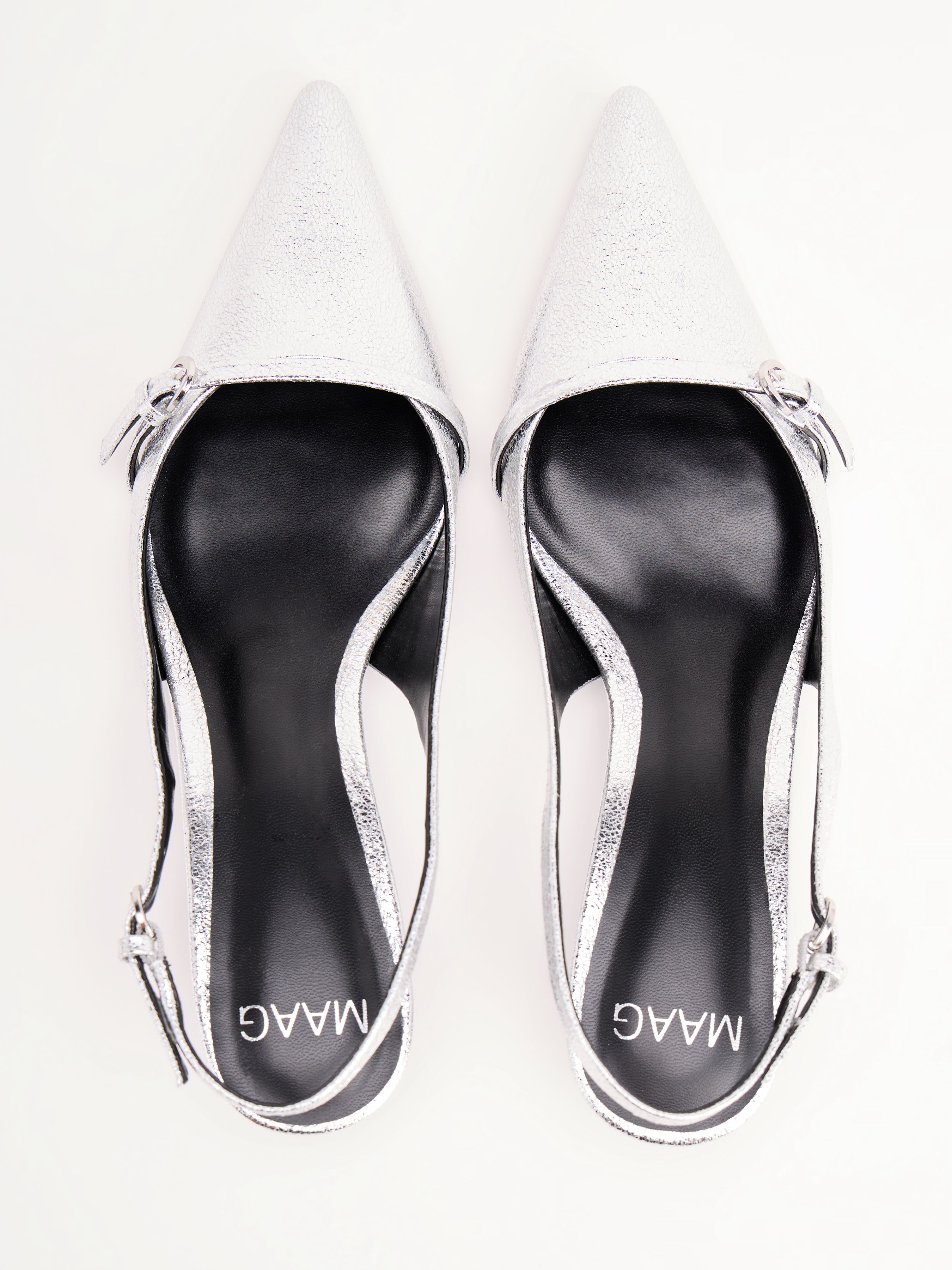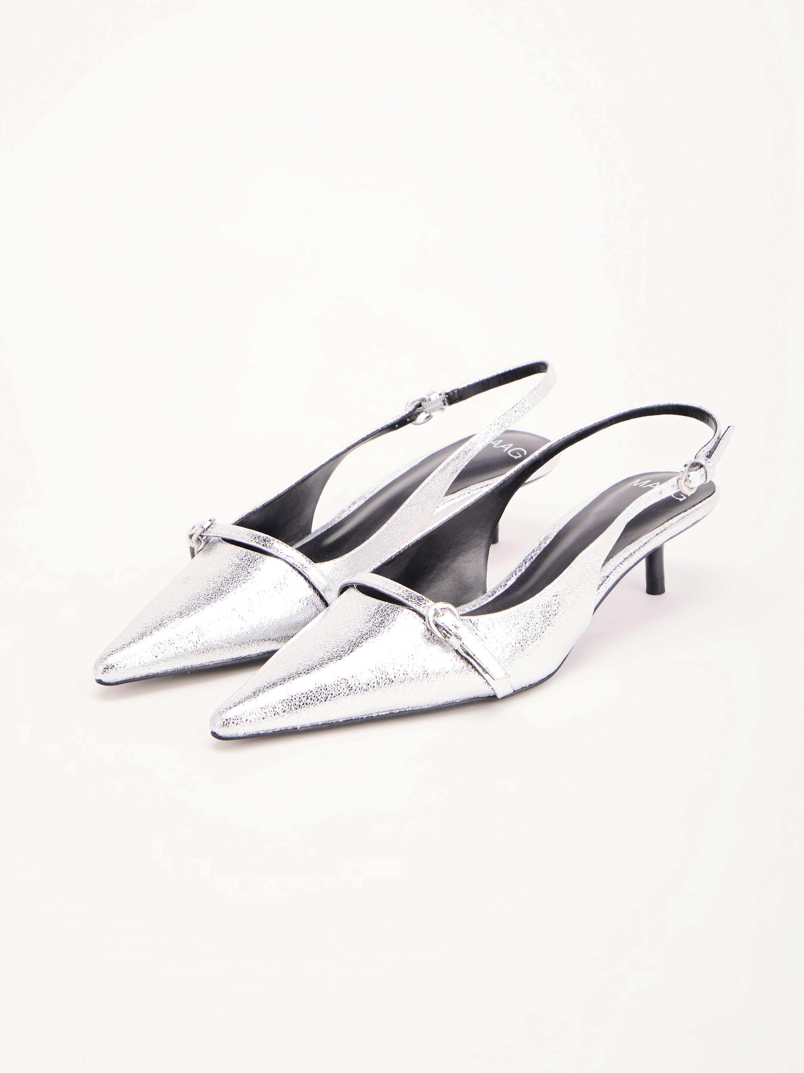 MAAG. СЕРЕБРИСТЫЕ ТУФЛИ С КАБЛУКОМ KITTEN HEEL