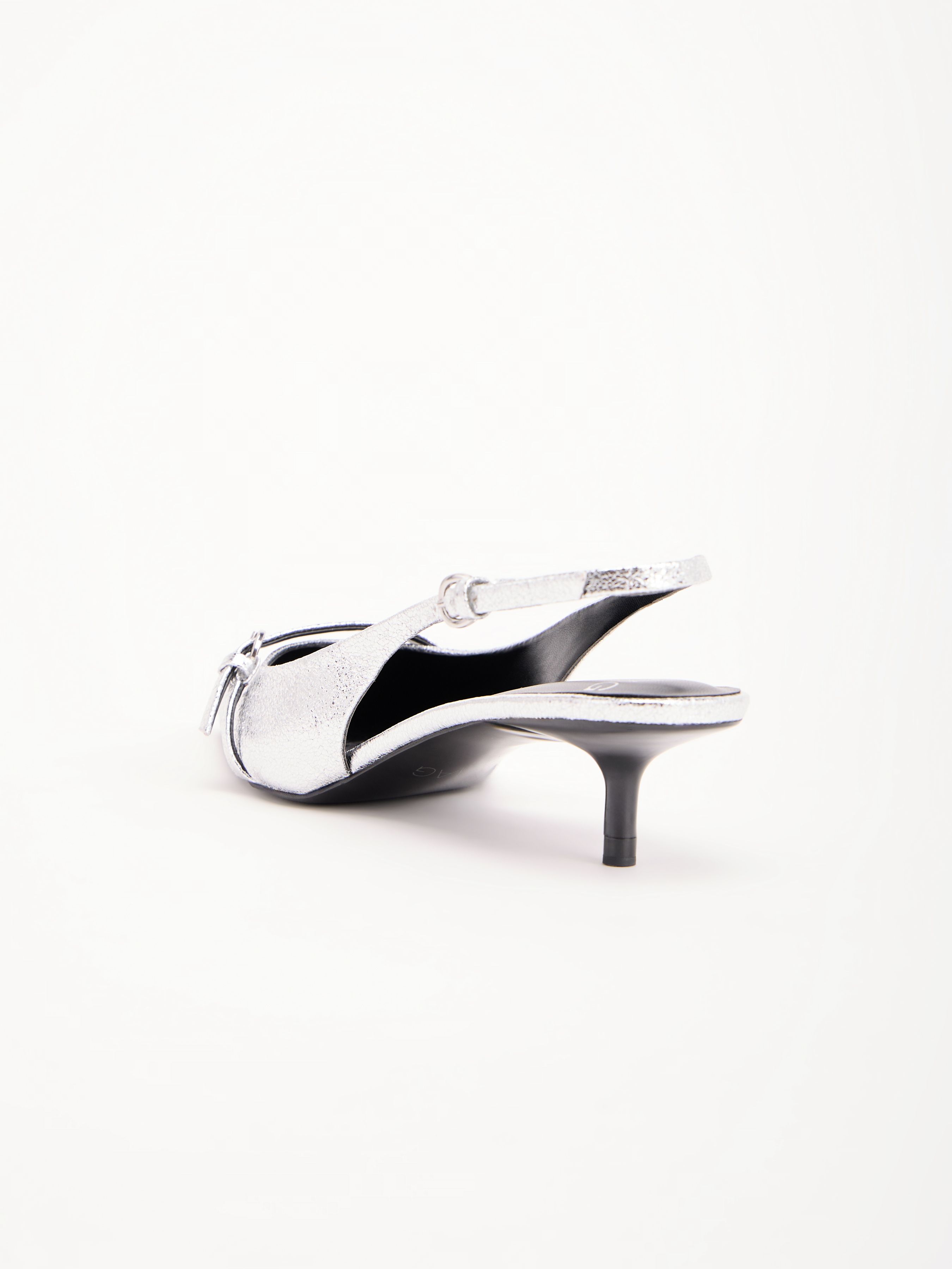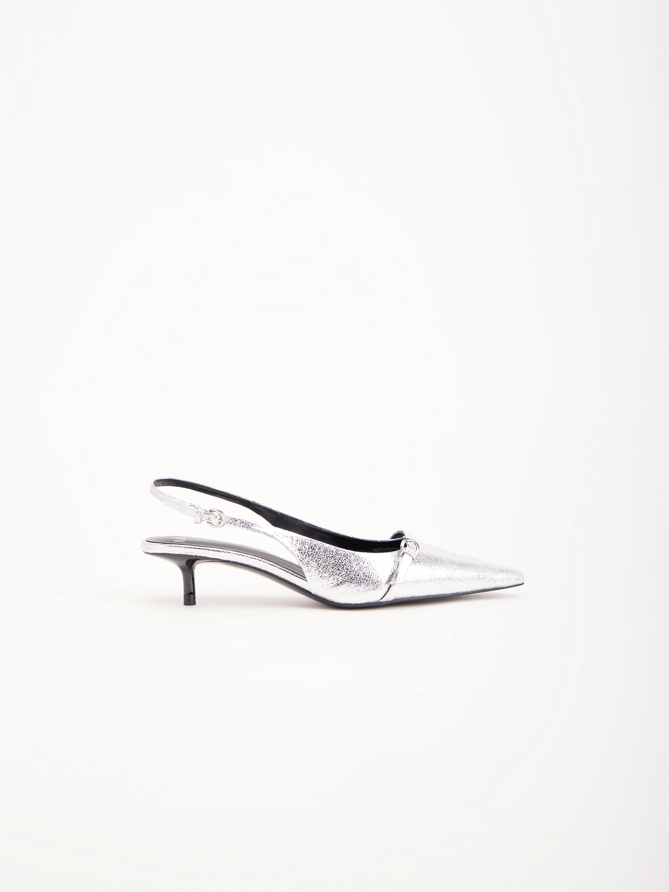 СЕРЕБРИСТЫЕ ТУФЛИ С КАБЛУКОМ KITTEN HEEL