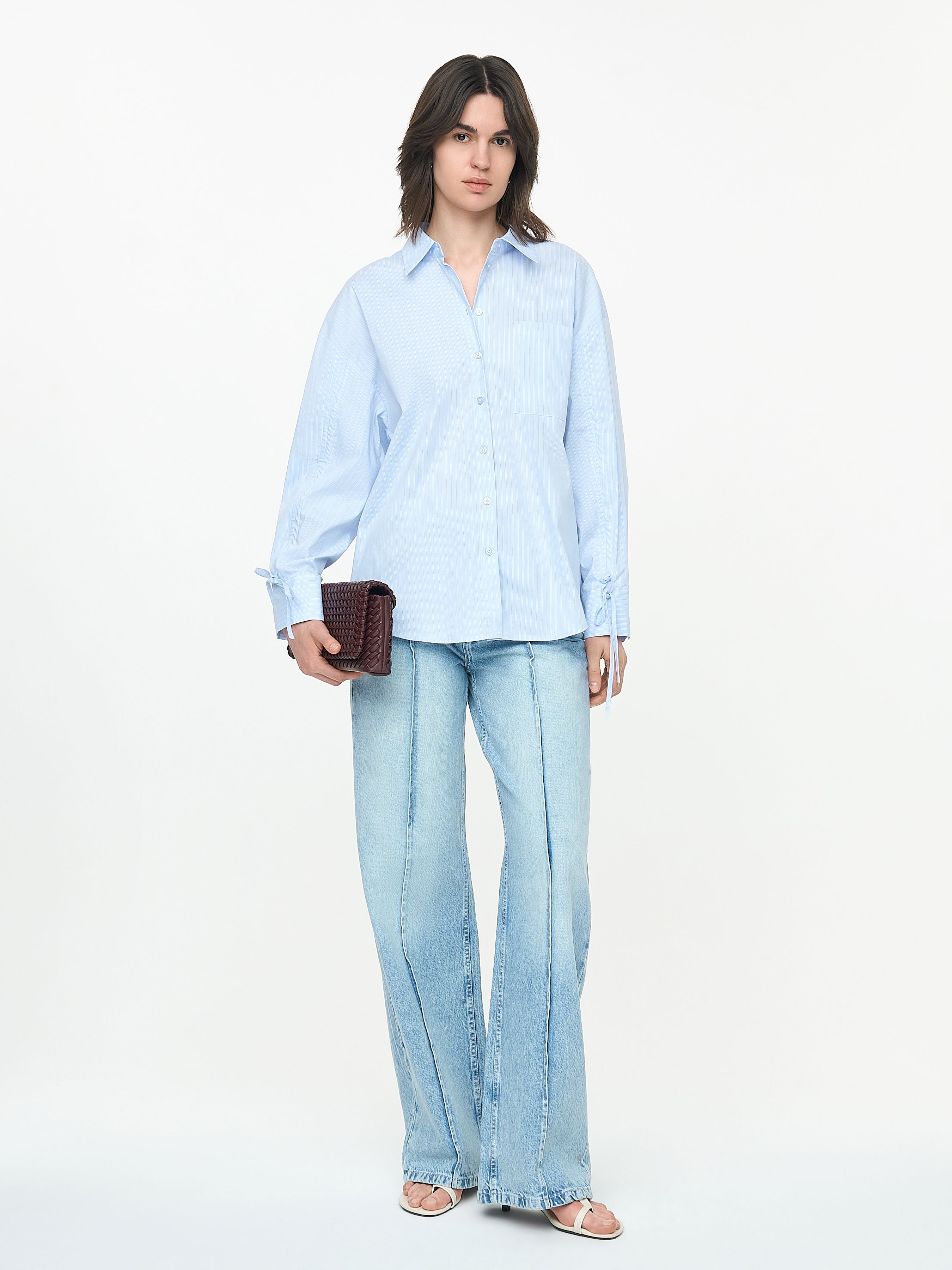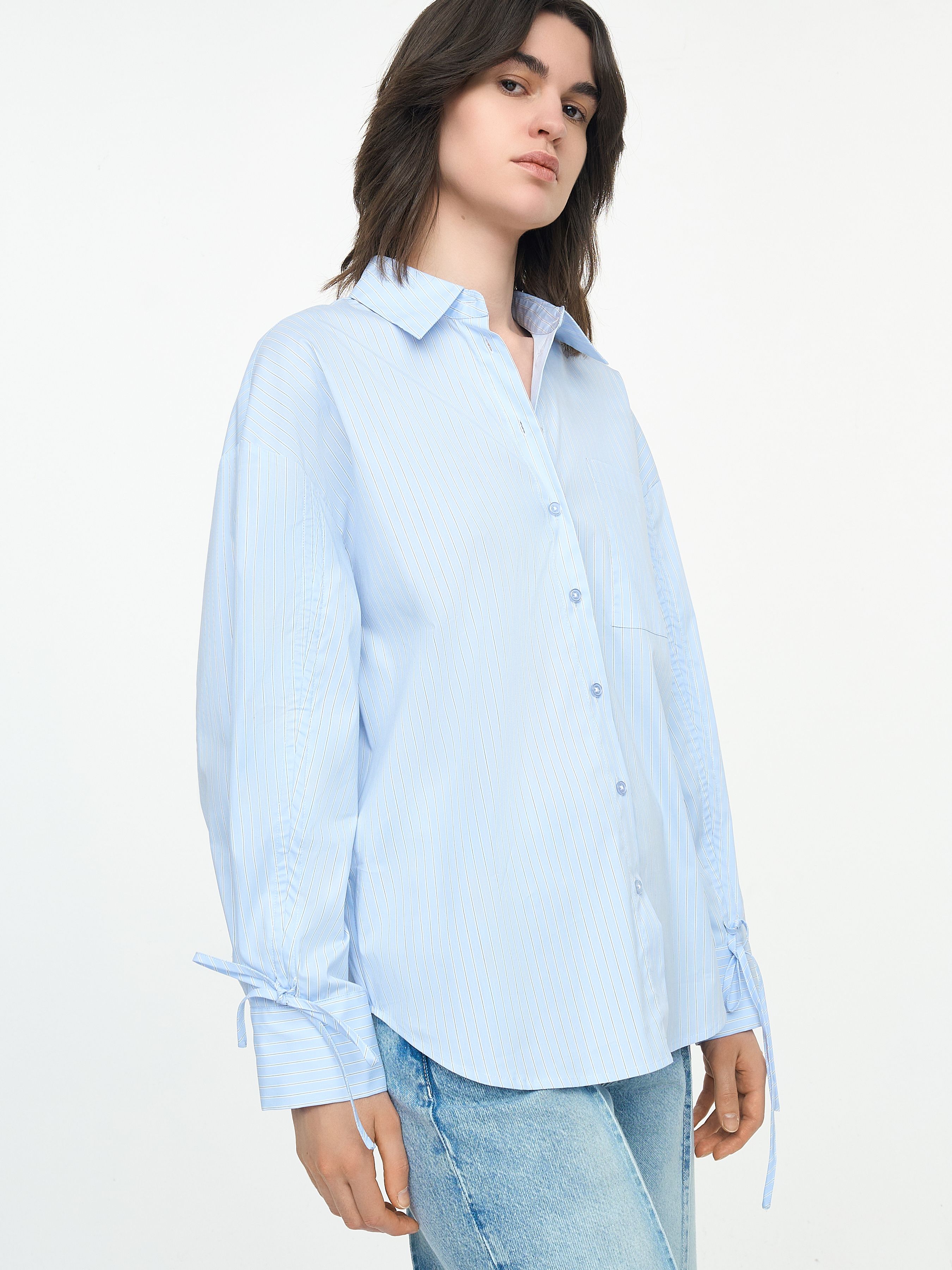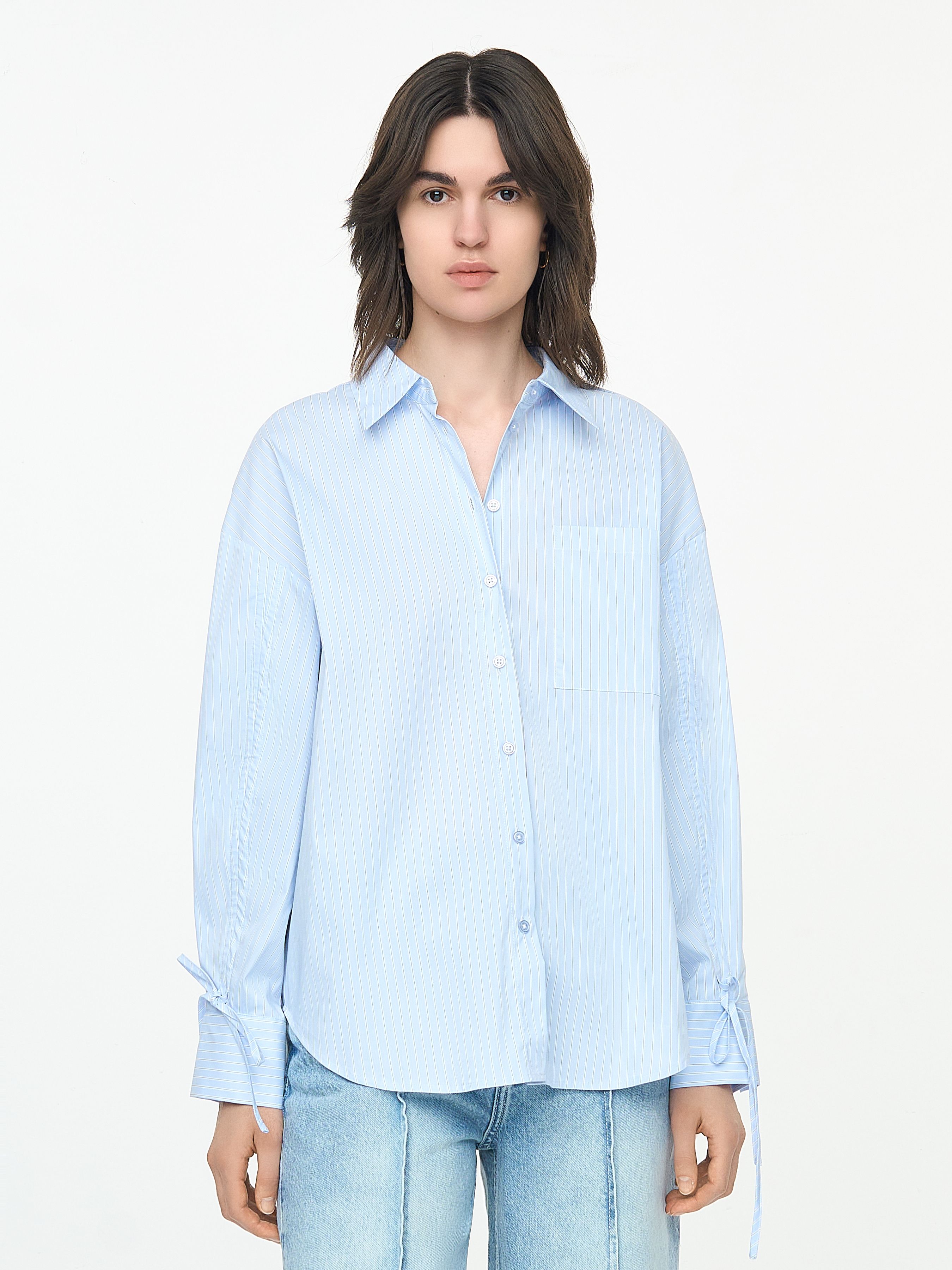 РУБАШКА ИЗ ПОПЛИНА С ДЕТАЛЯМИ НА РУКАВАХ