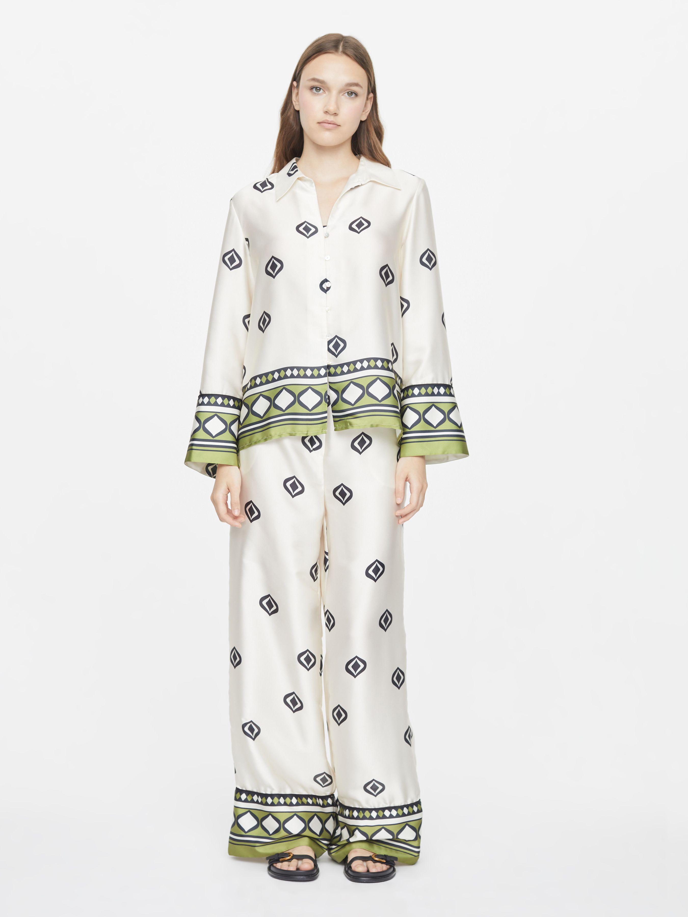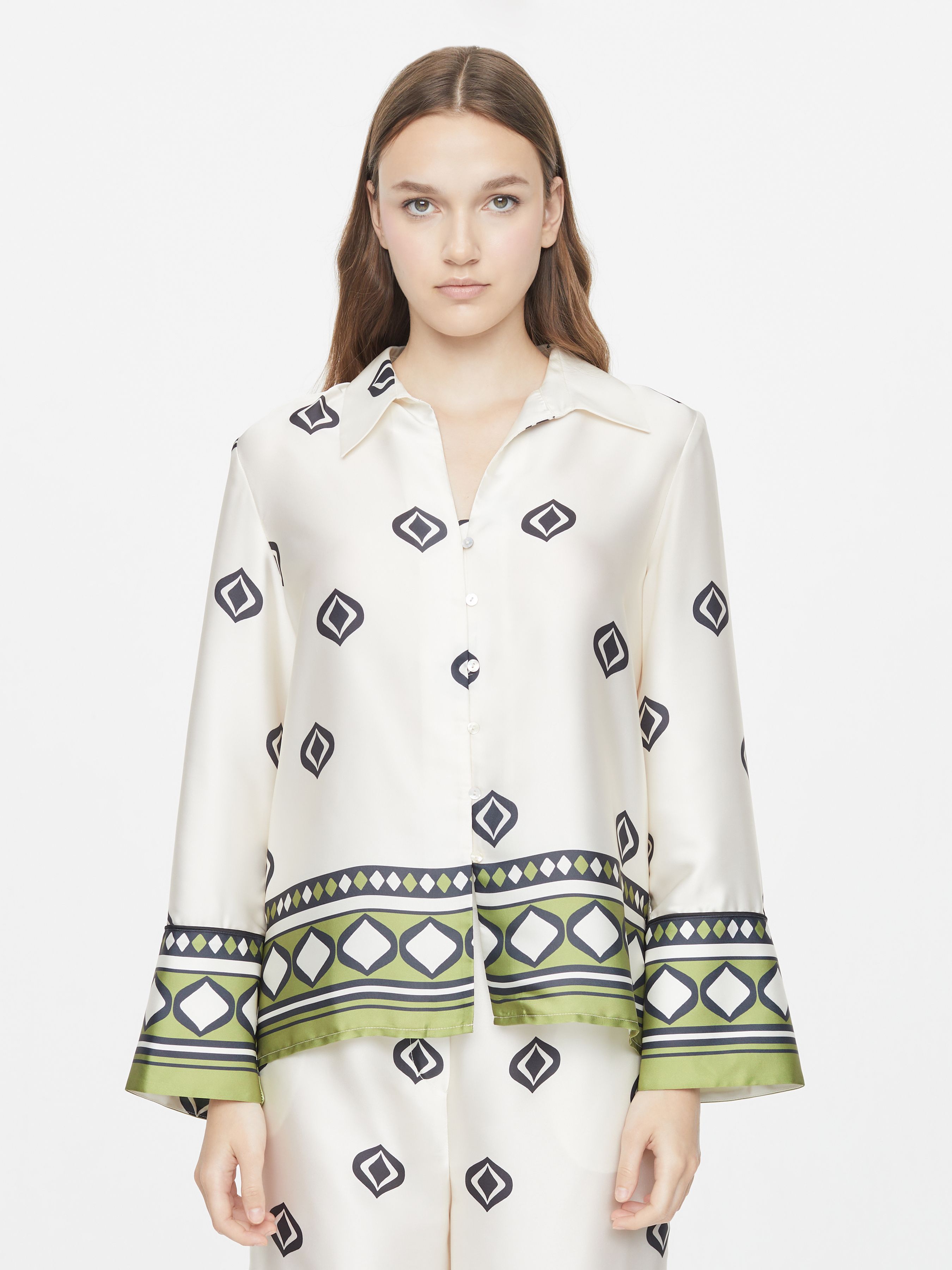 САТИНОВАЯ РУБАШКА С ГЕОМЕТРИЧНЫМ ПРИНТОМ