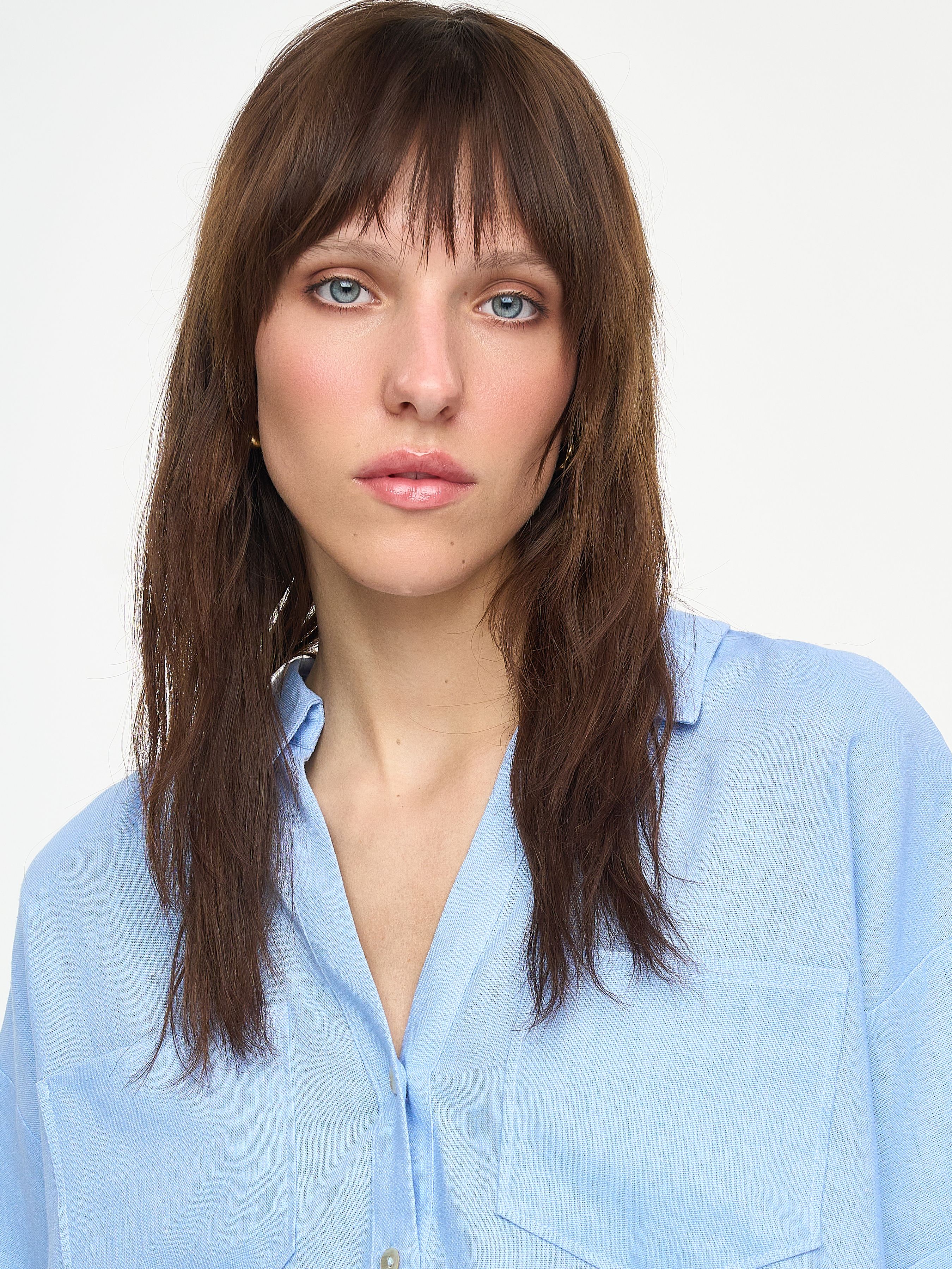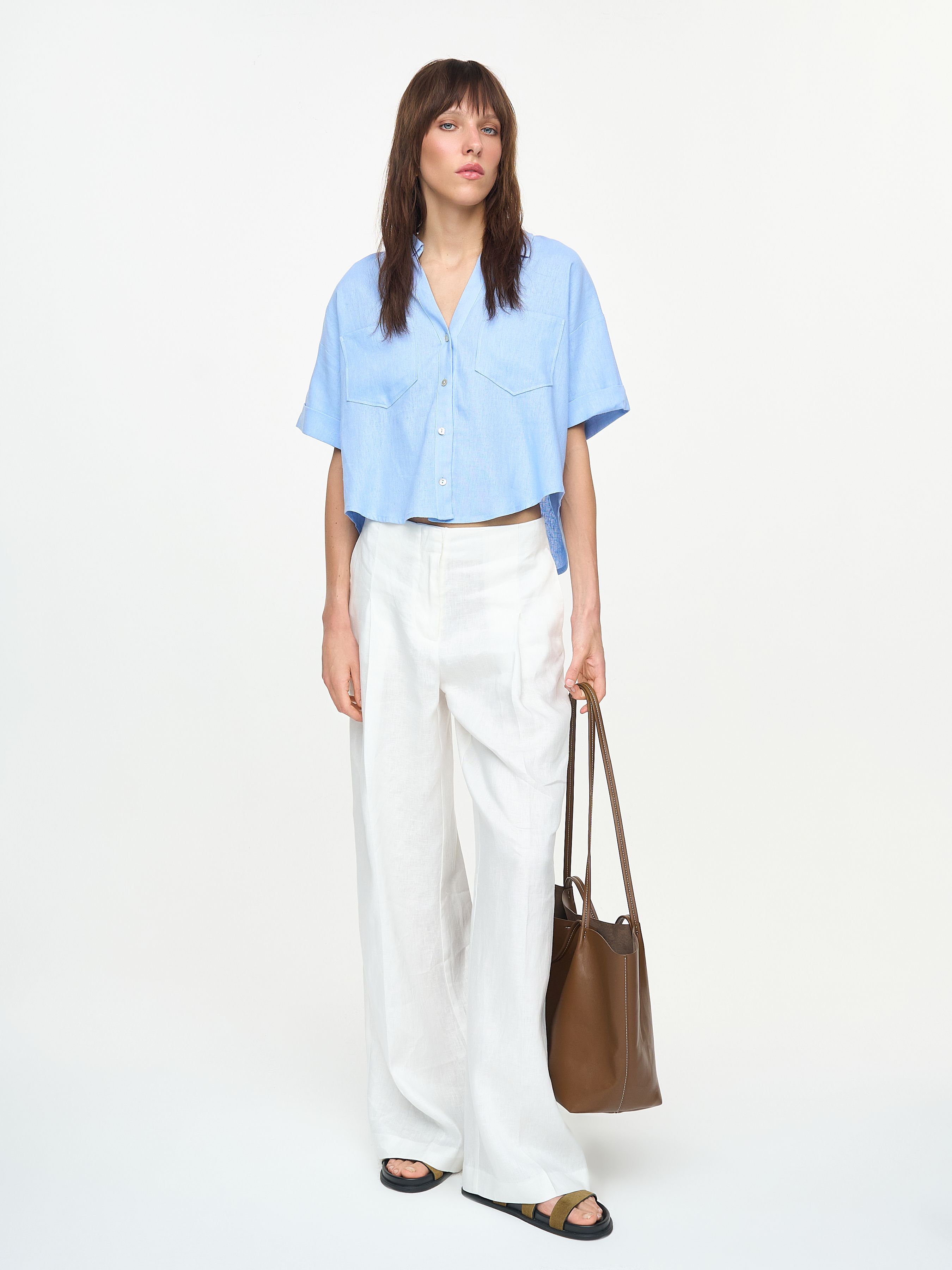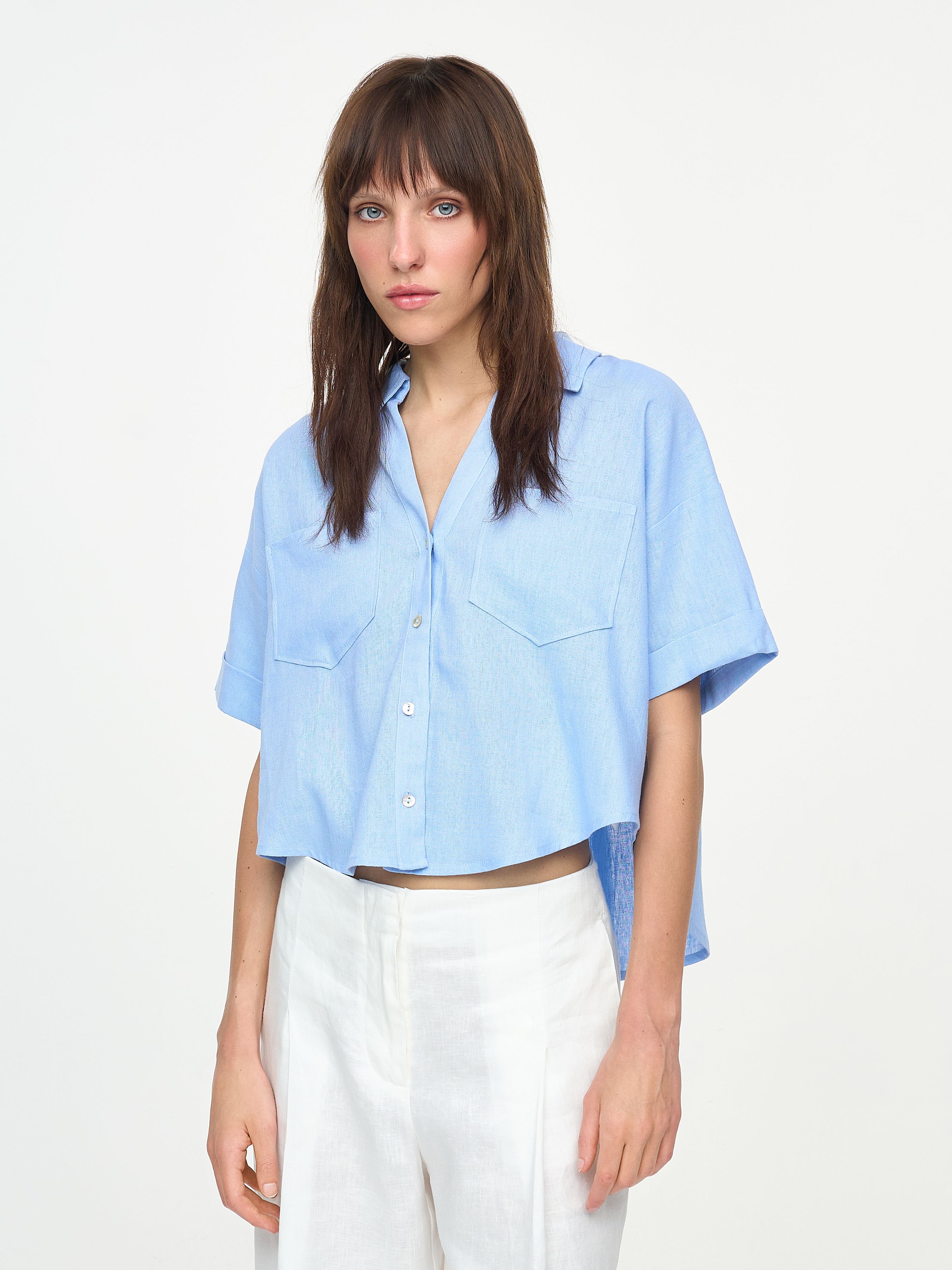 УКОРОЧЕННАЯ РУБАШКА ИЗ ВИСКОЗЫ И ЛЬНА
