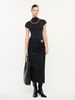 MAAG. ДЖИНСОВАЯ ЮБКА МИДИ С ДРАПИРОВКОЙ И БРОШЬЮ