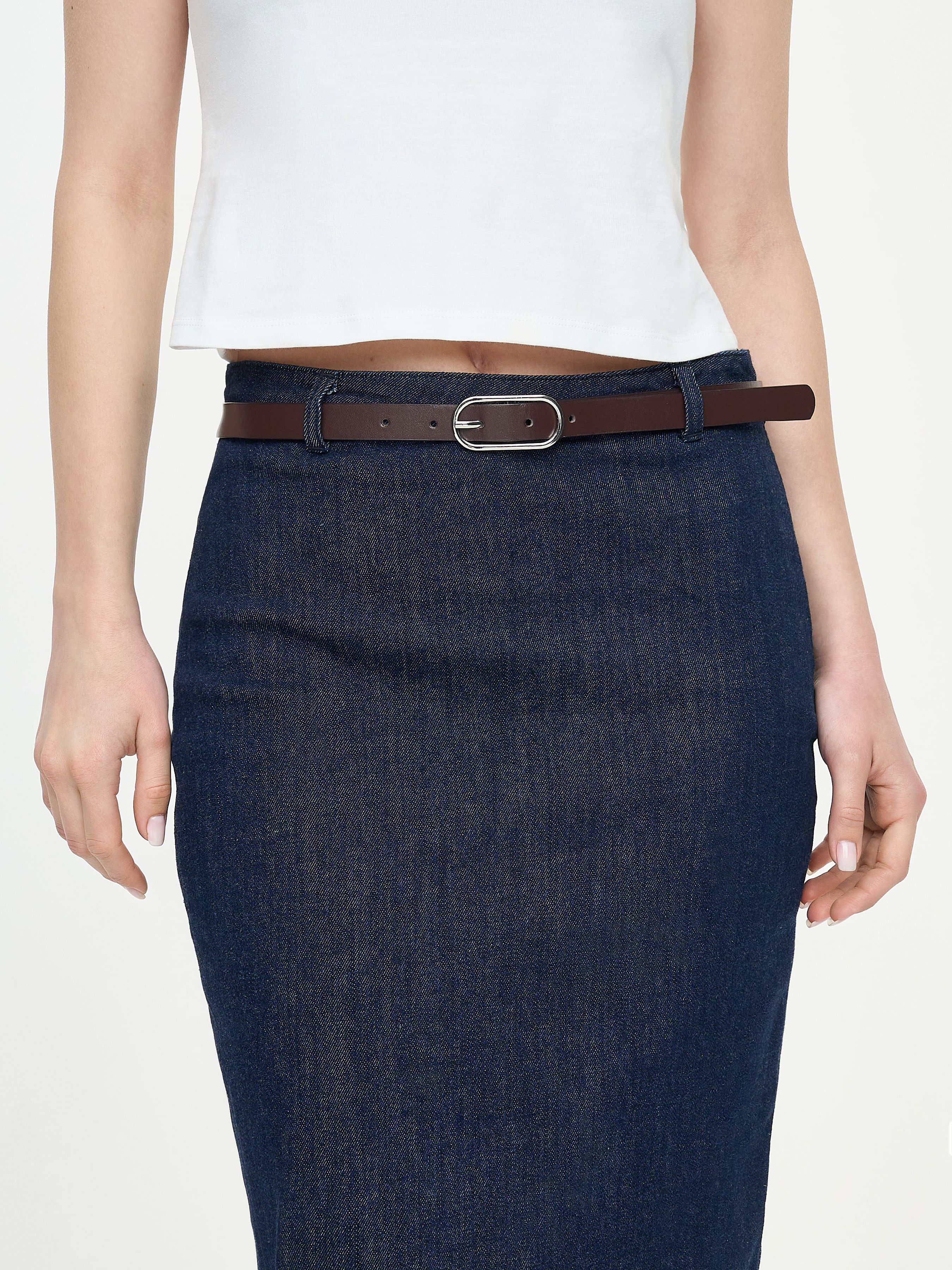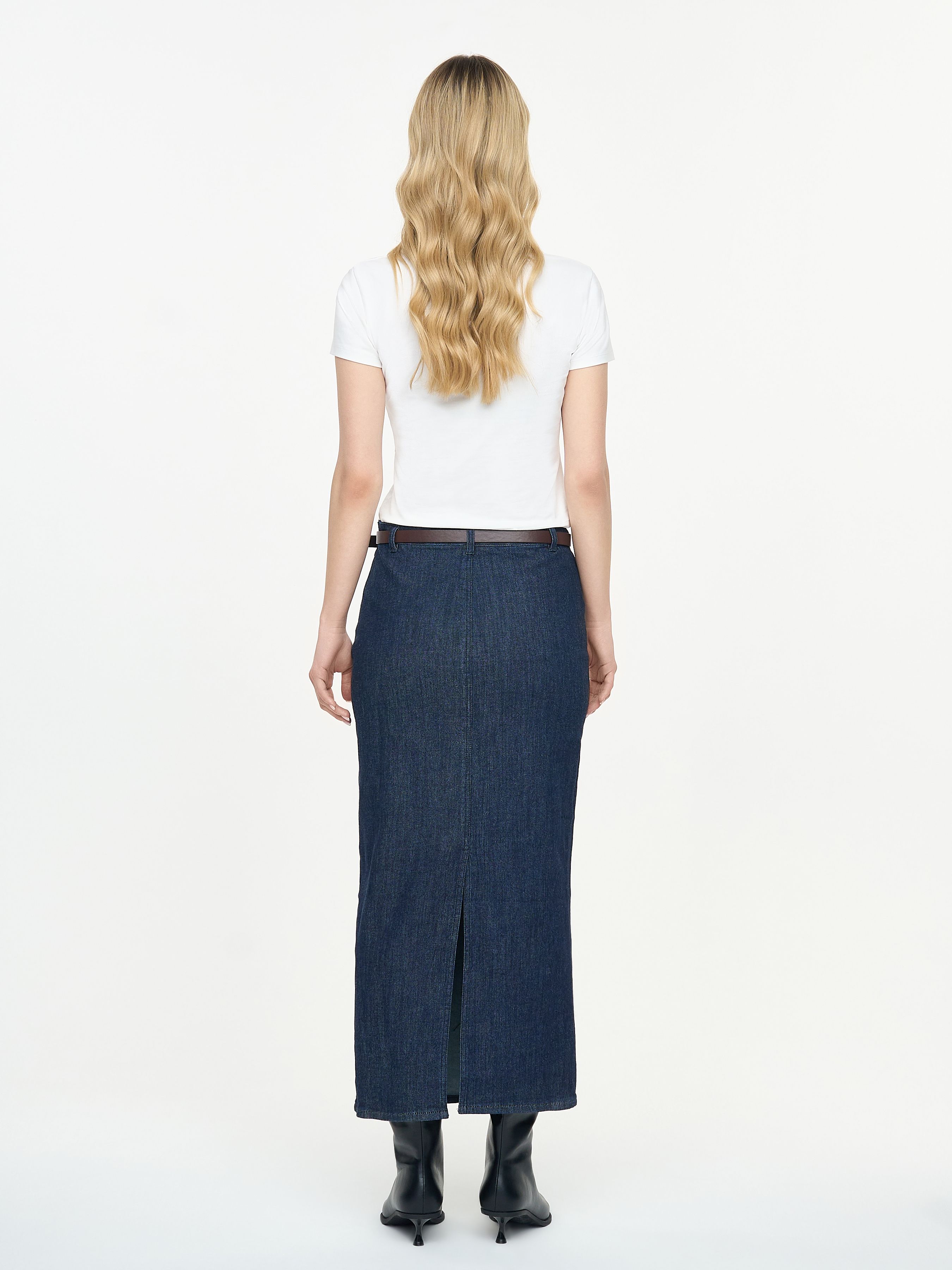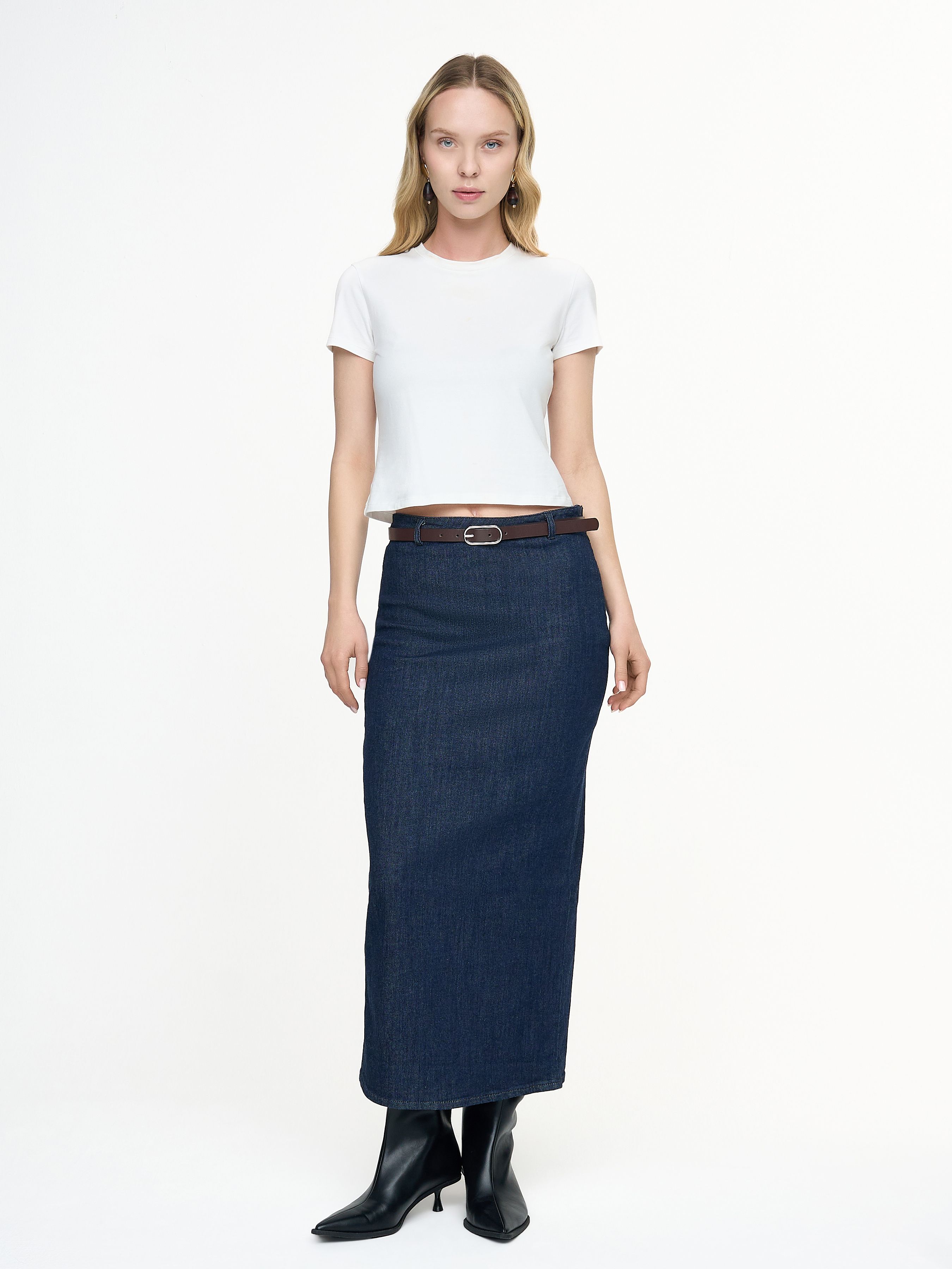 ДЖИНСОВАЯ ЮБКА МИДИ С РЕМНЕМ