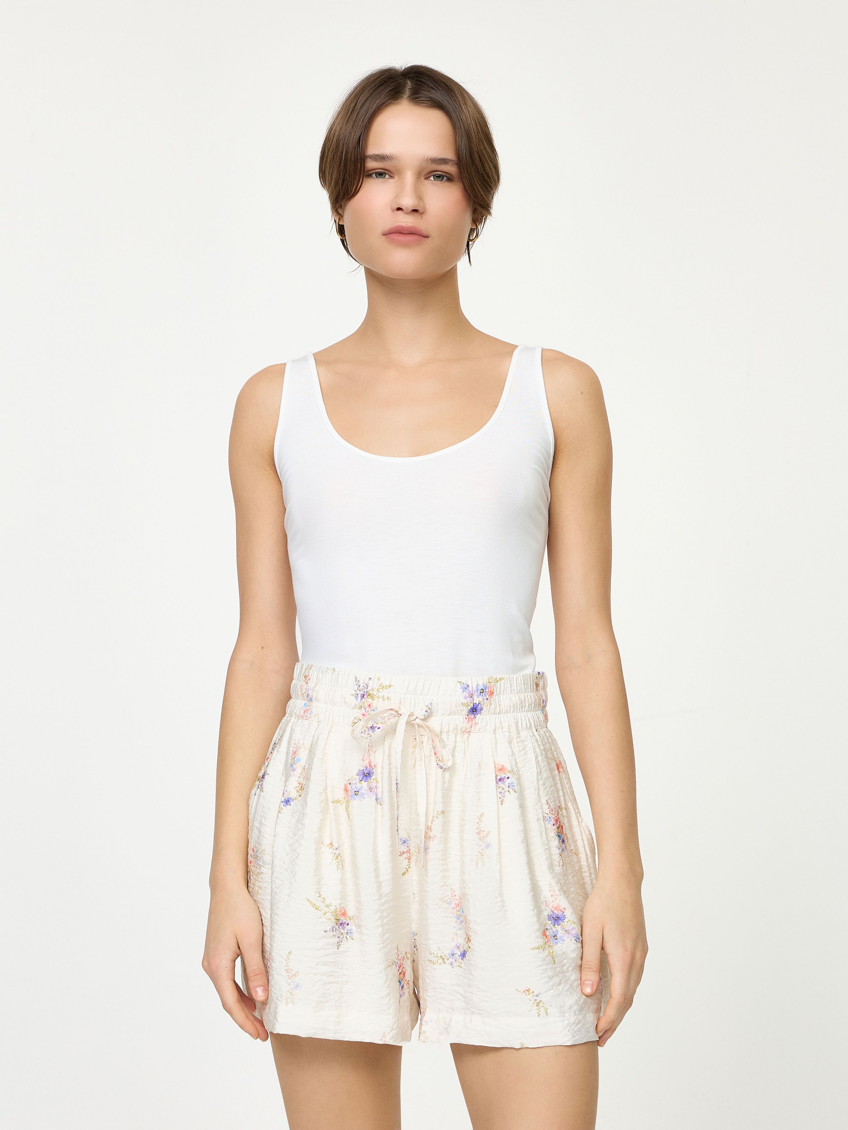 ШОРТЫ ИЗ ОРГАНЗЫ С ЦВЕТОЧНЫМ ПРИНТОМ