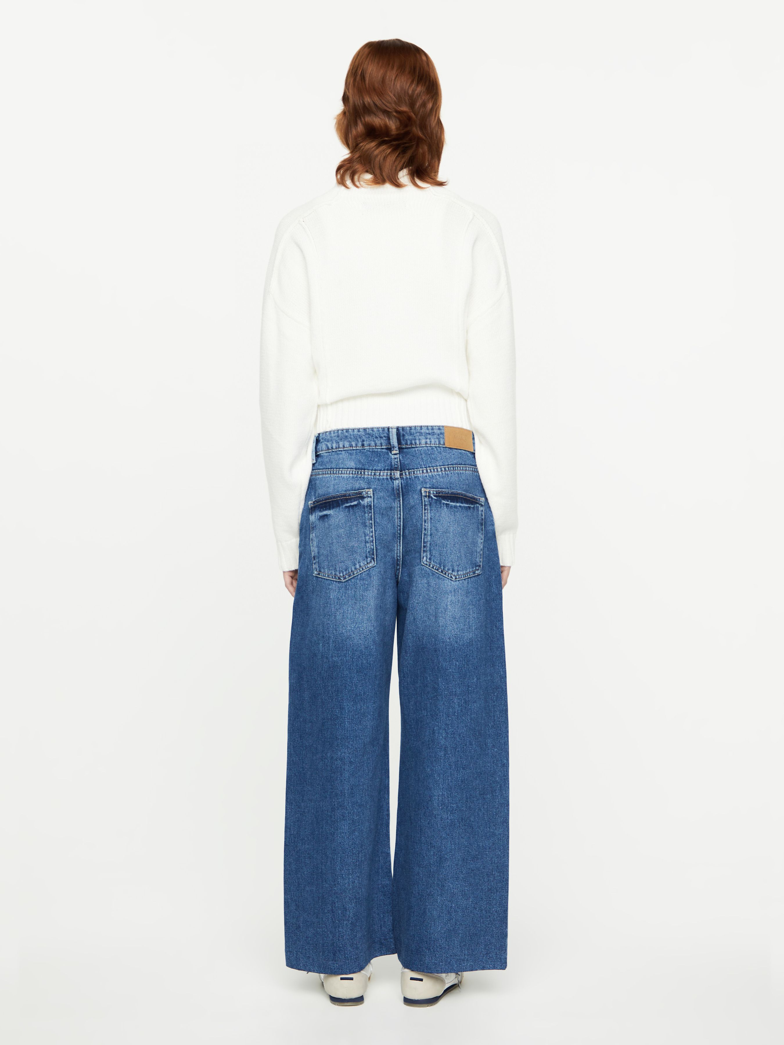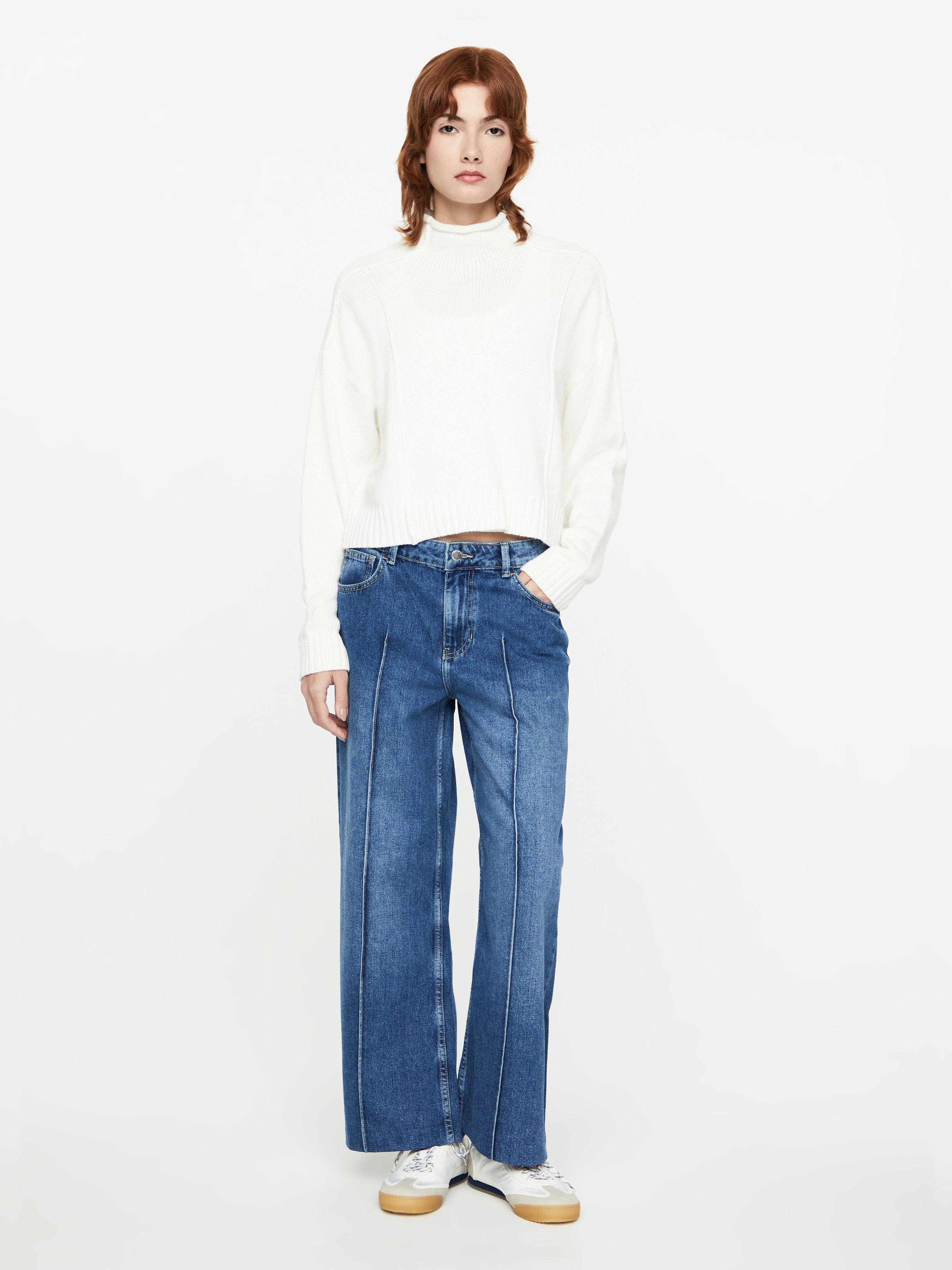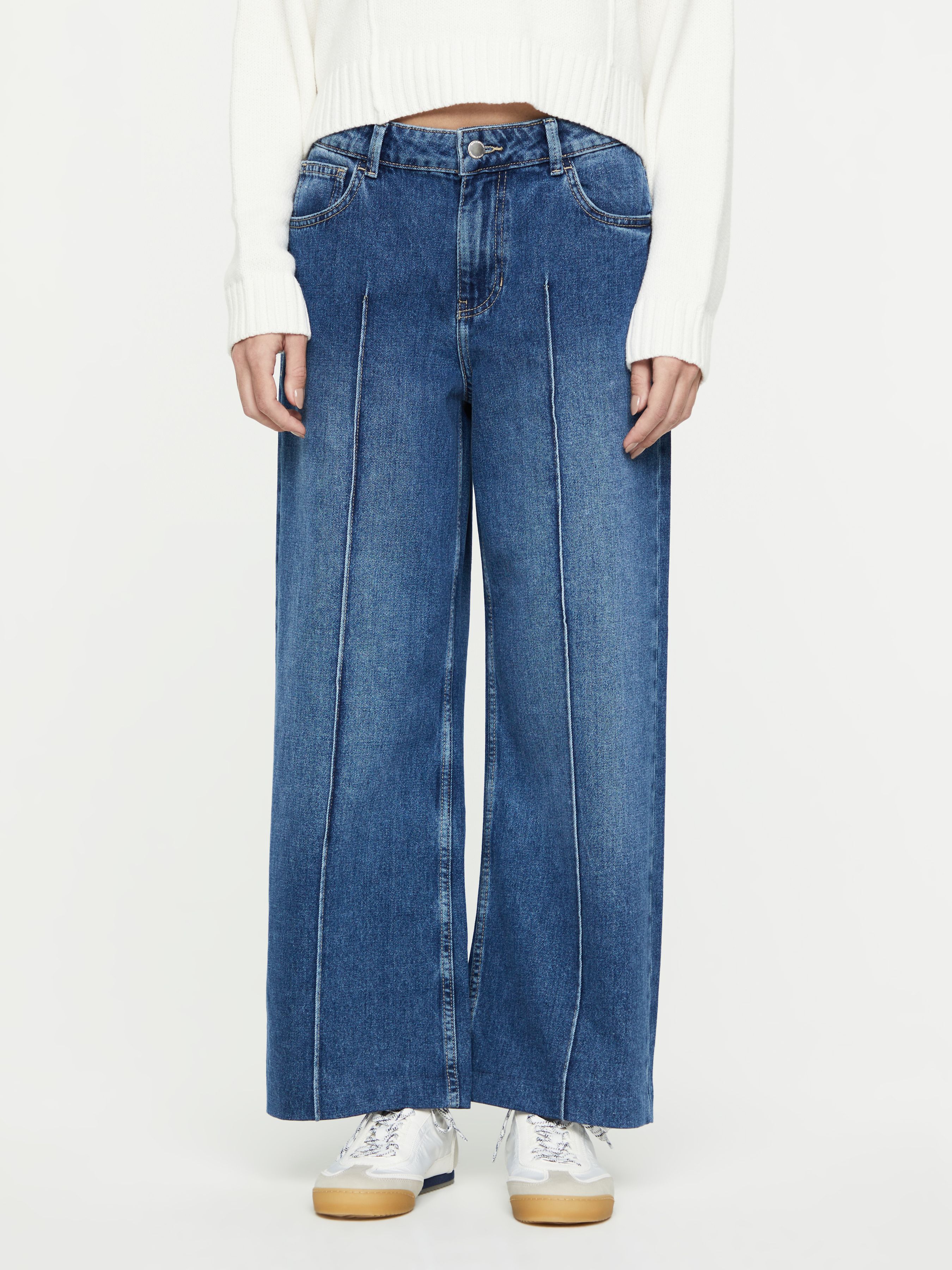 УКОРОЧЕННЫЕ ДЖИНСЫ WIDE LEG С ДЕКОРАТИВНОЙ СТРОЧКОЙ