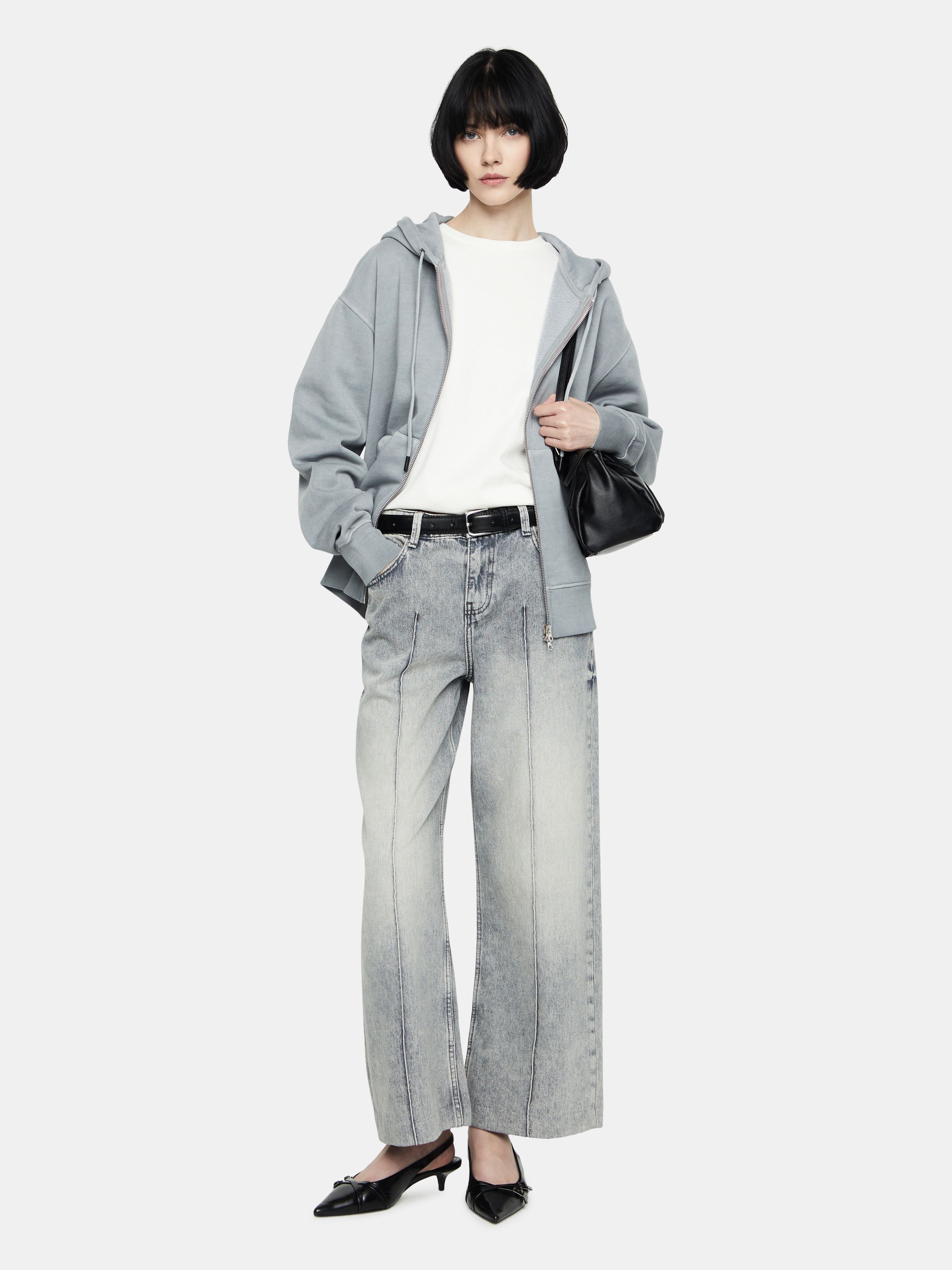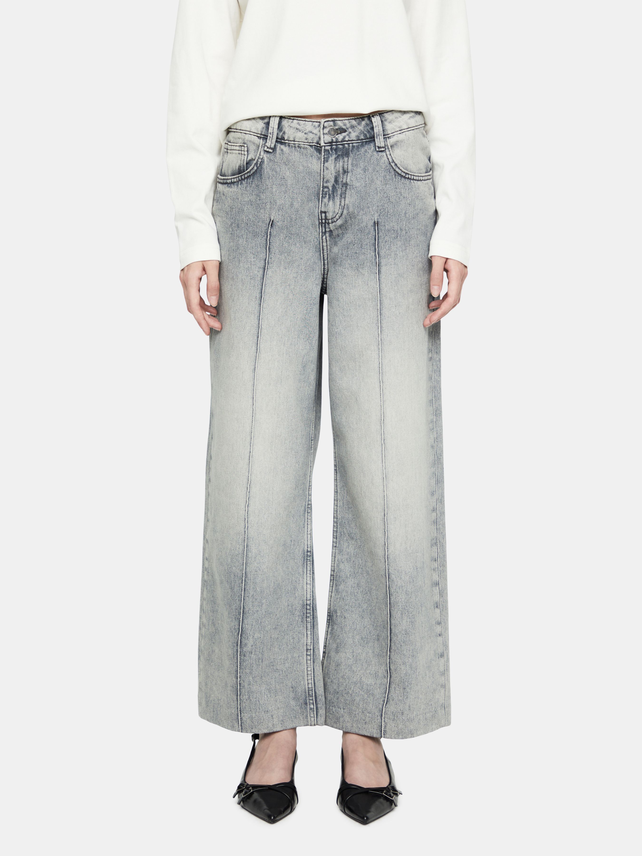 УКОРОЧЕННЫЕ ДЖИНСЫ WIDE LEG С ДЕКОРАТИВНОЙ СТРОЧКОЙ