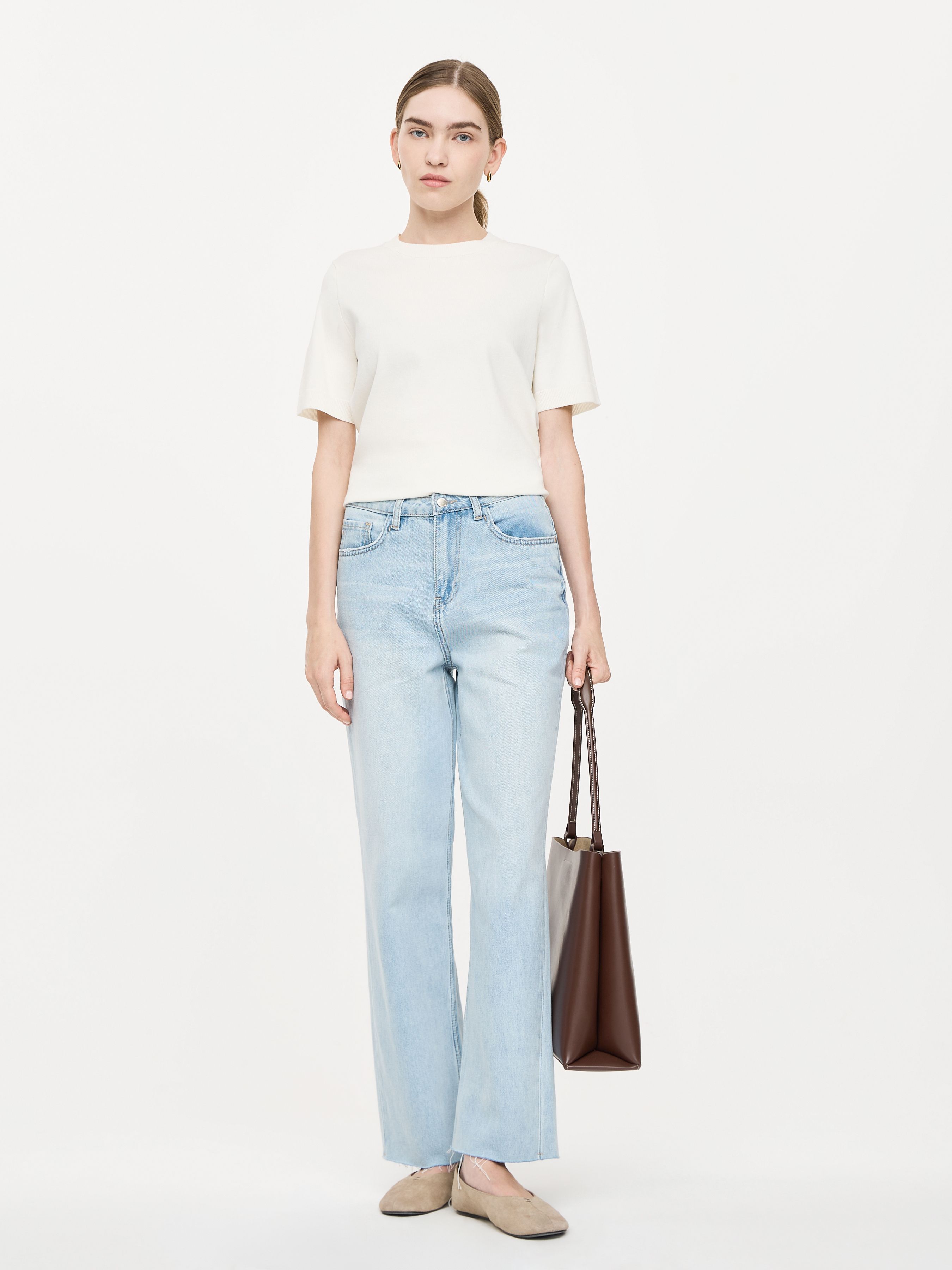 УКОРОЧЕННЫЕ ДЖИНСЫ ПРЯМОГО КРОЯ