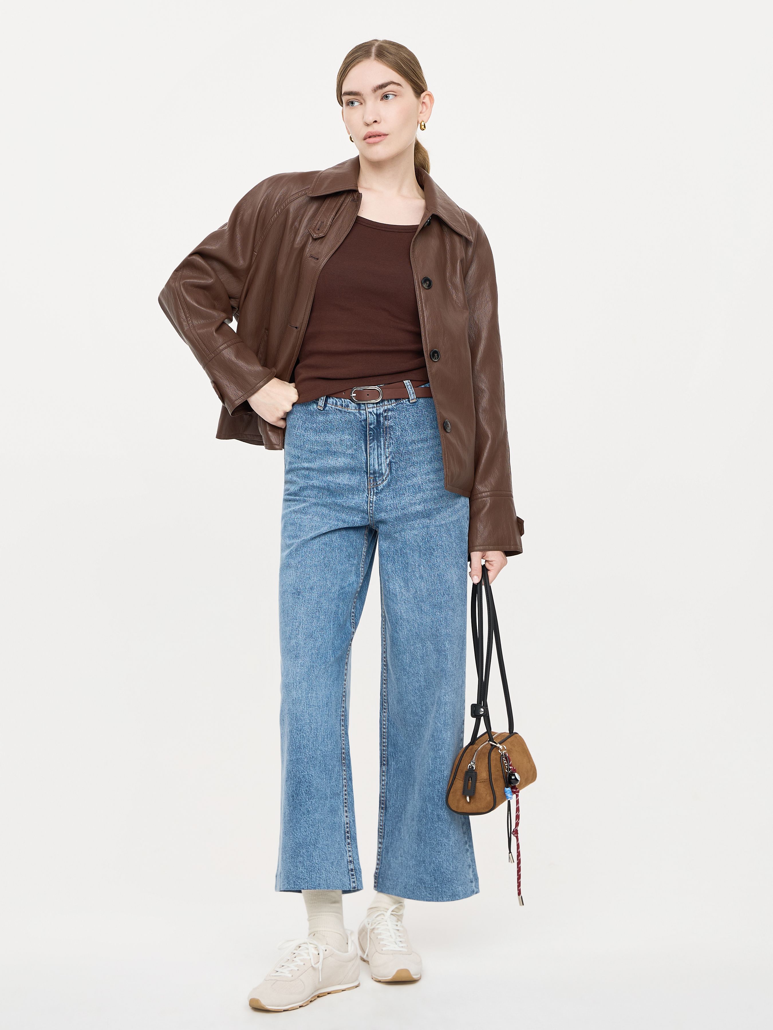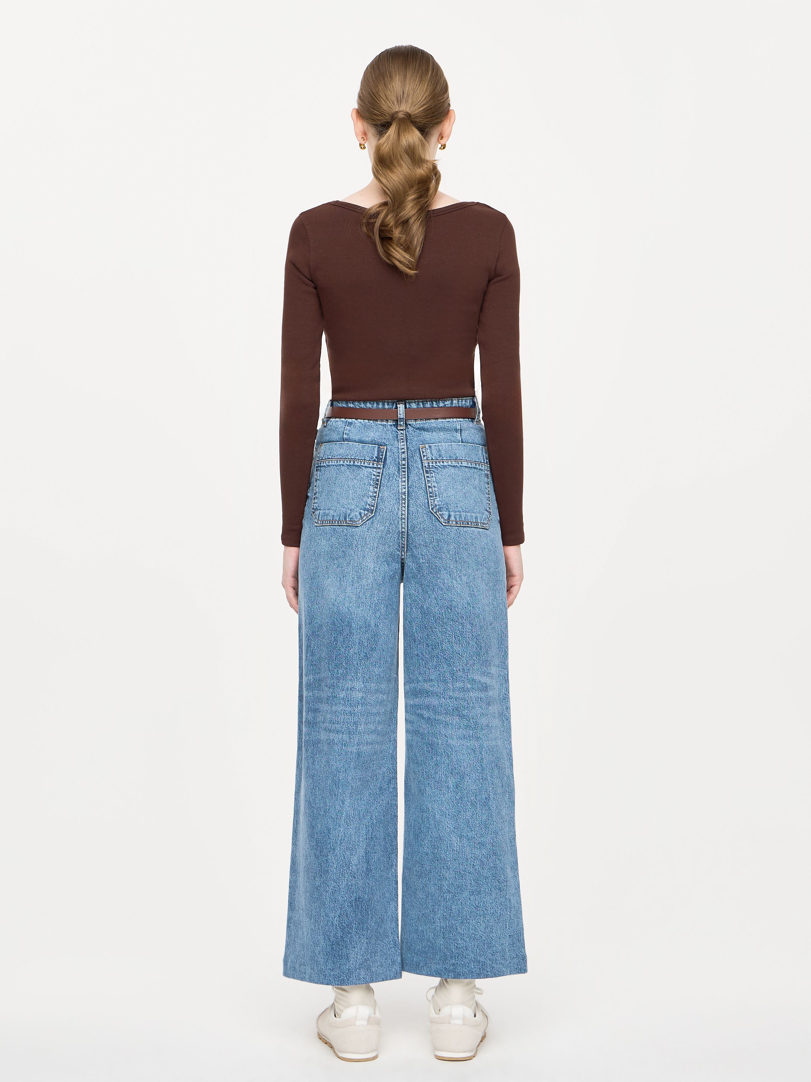 УКОРОЧЕННЫЕ ДЖИНСЫ ШИРОКОГО КРОЯ