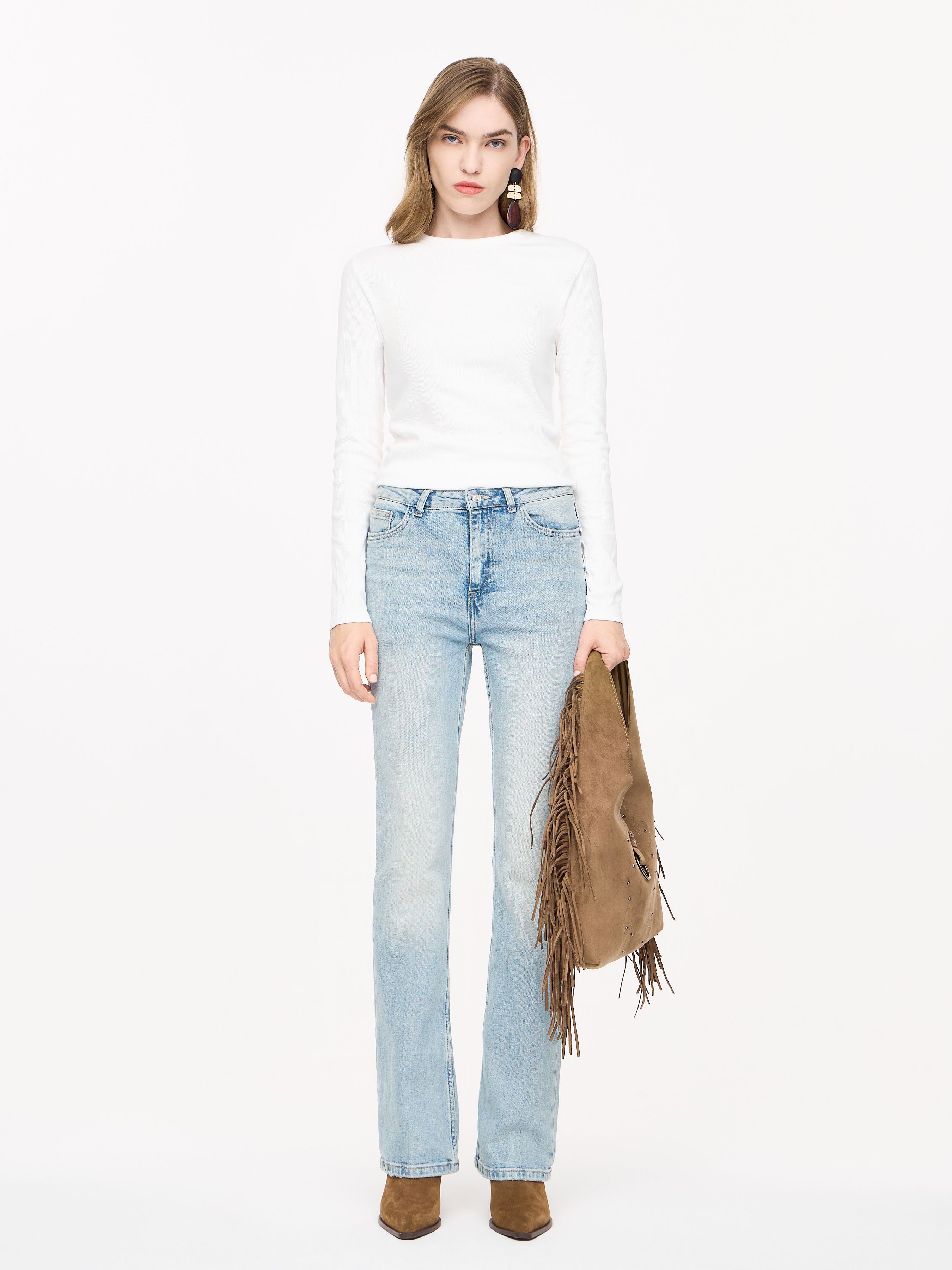 РАСКЛЕШЕННЫЕ ДЖИНСЫ С ВЫСОКОЙ ПОСАДКОЙ
