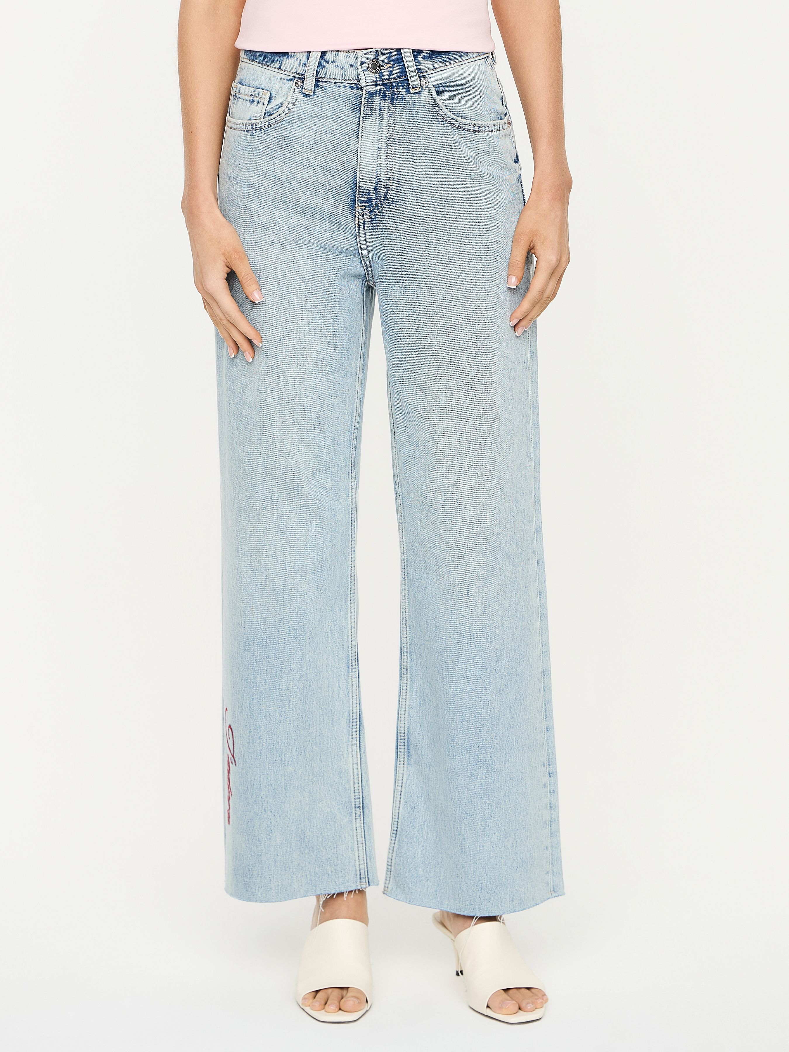 УКОРОЧЕННЫЕ ДЖИНСЫ ПРЯМОГО КРОЯ С НАШИВКОЙ