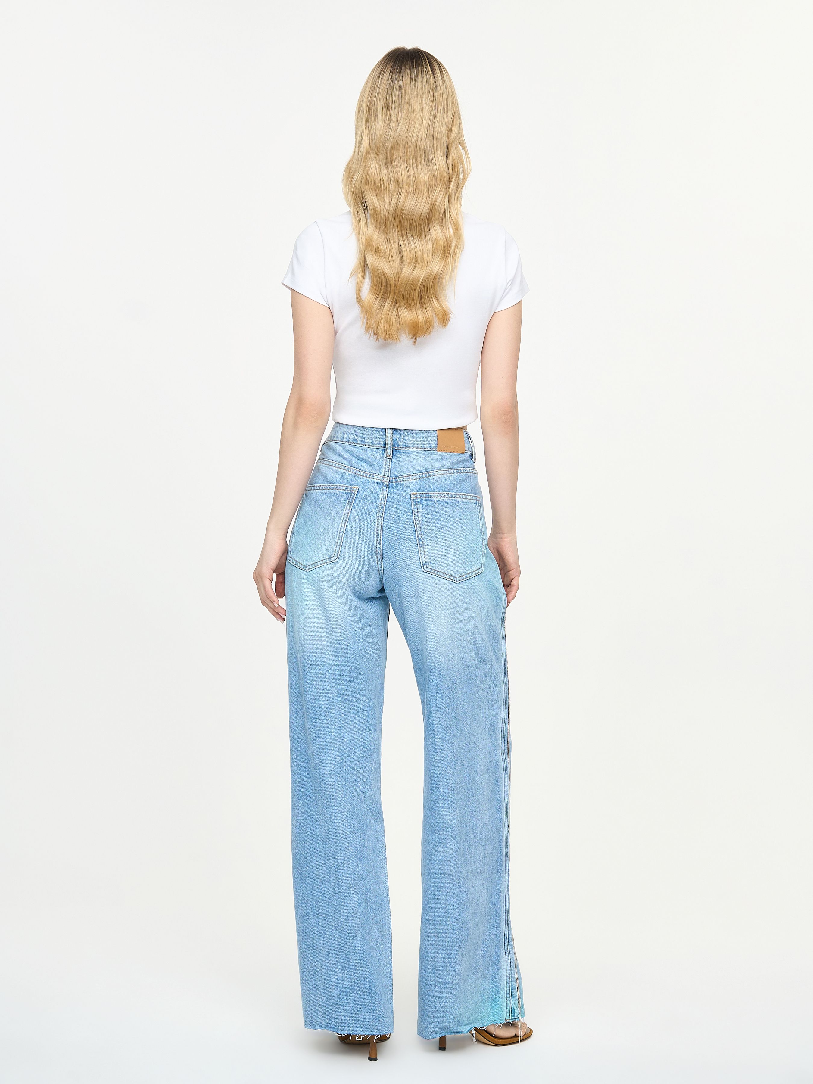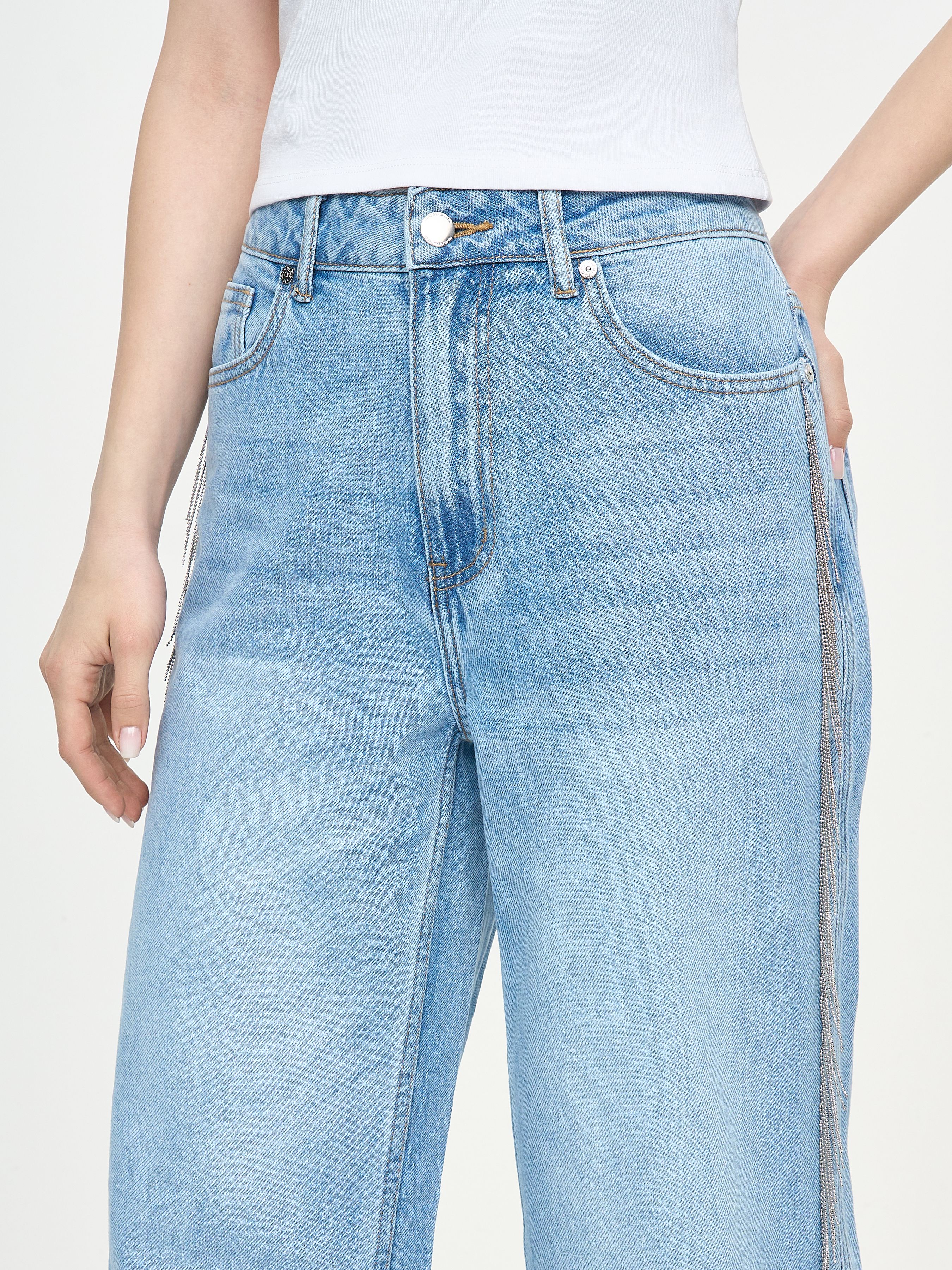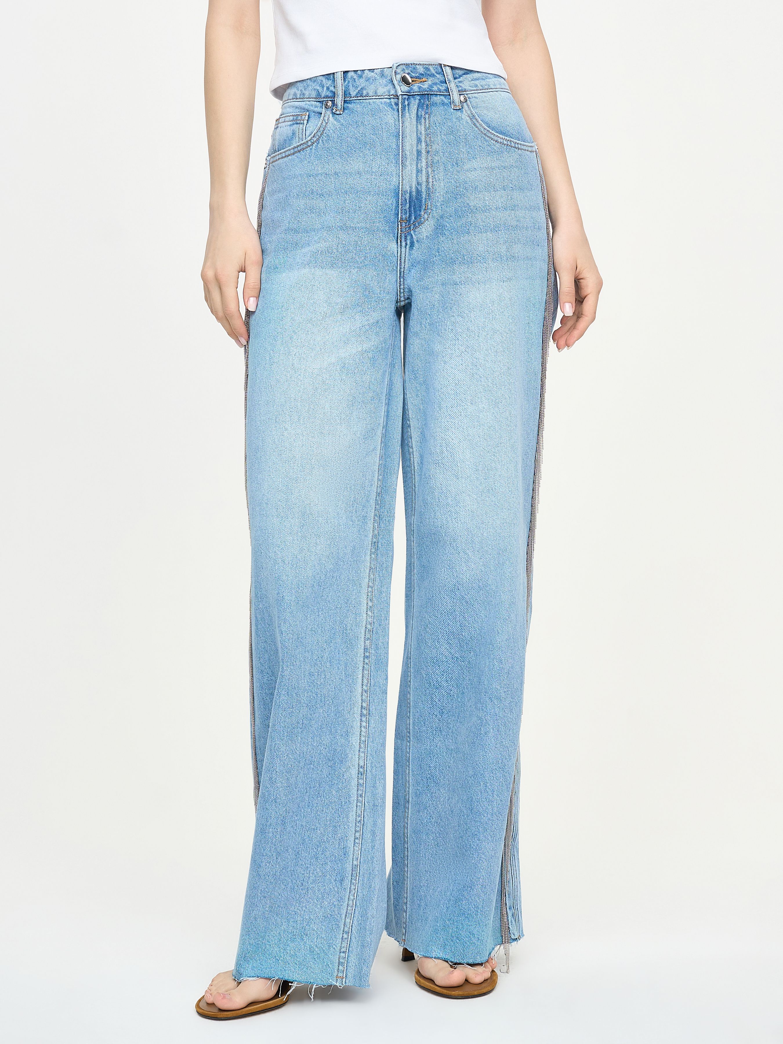 ДЖИНСЫ ШИРОКОГО КРОЯ С МЕТАЛЛИЧЕСКОЙ БАХРОМОЙ