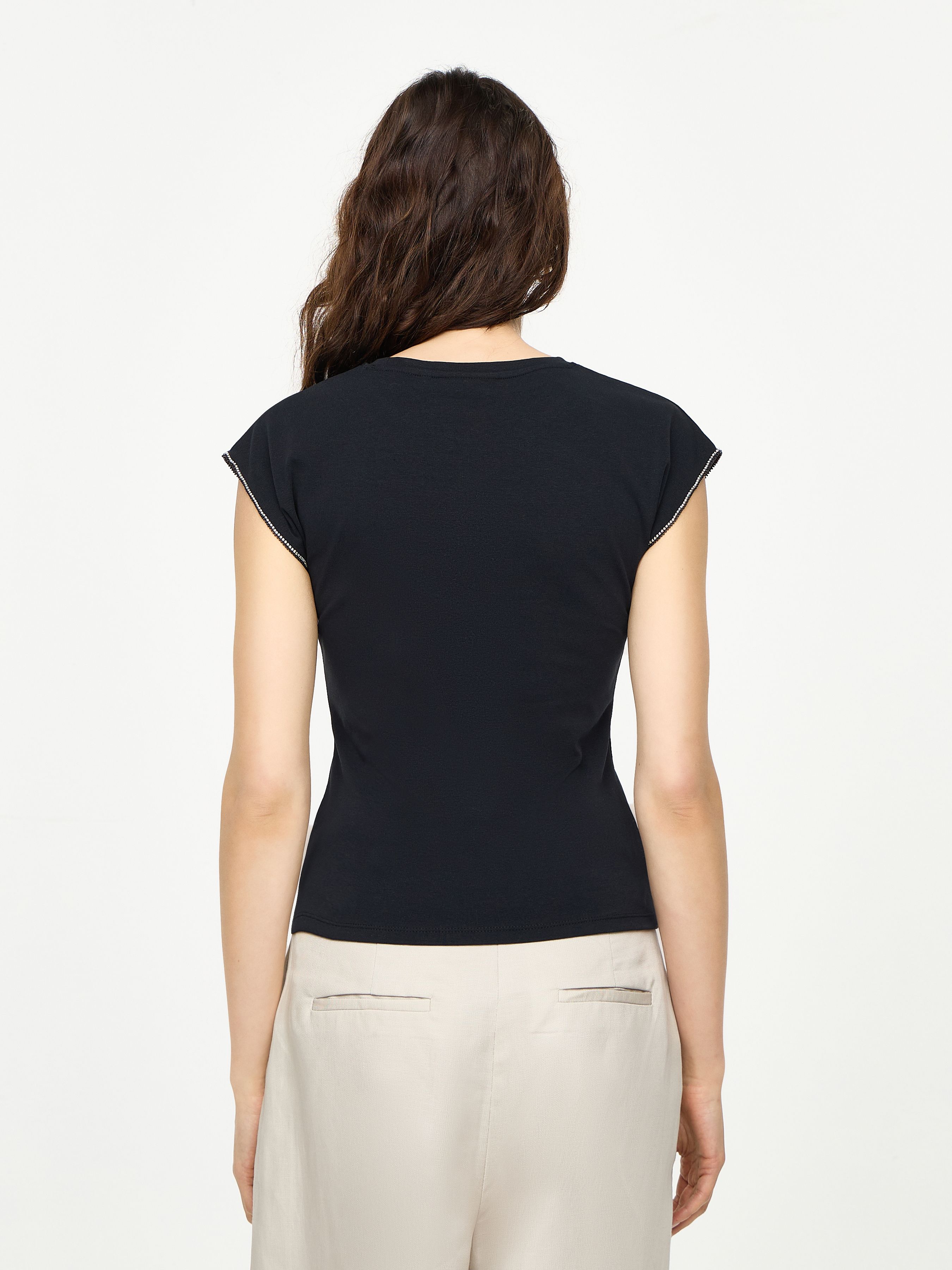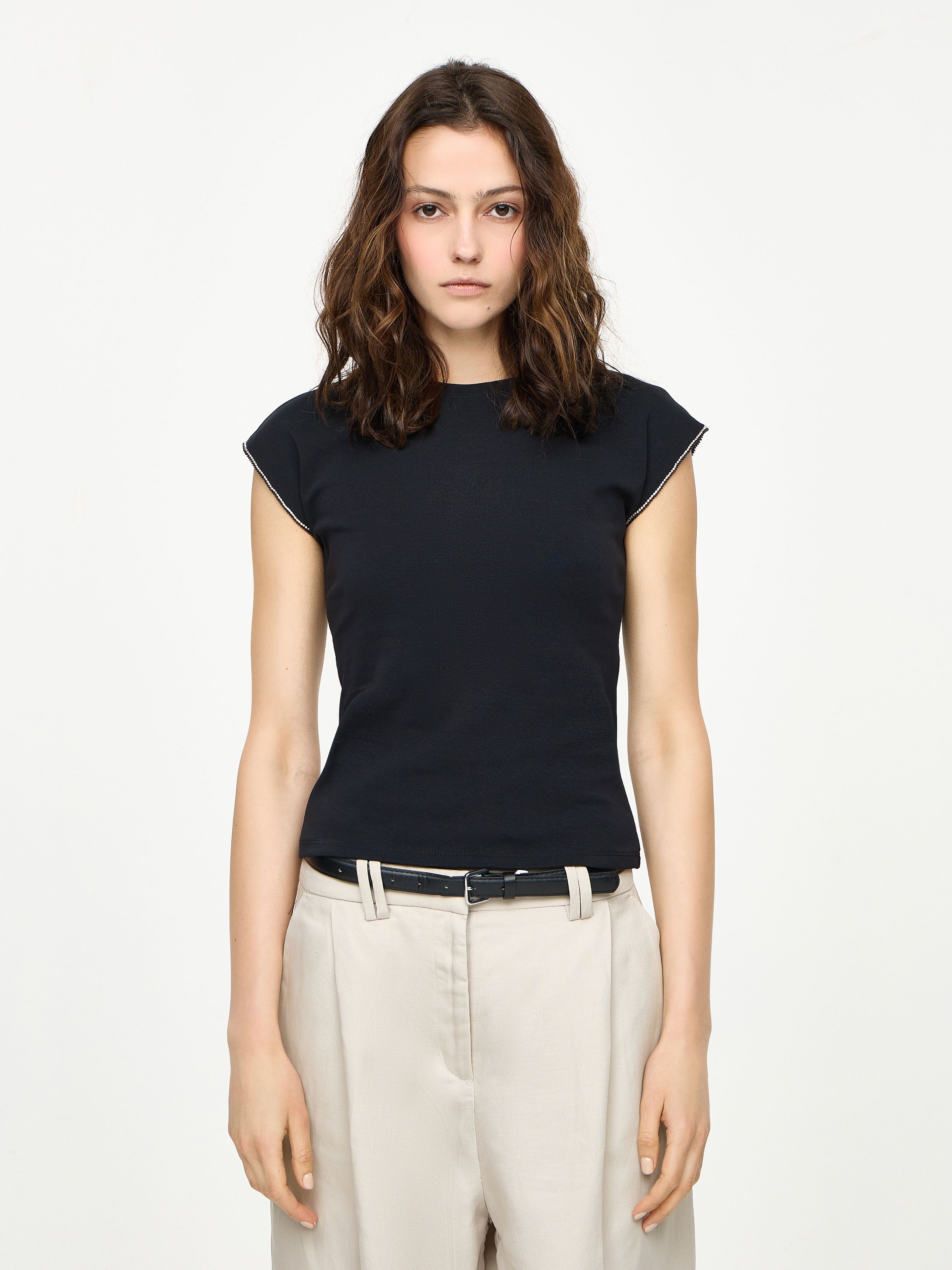 ФУТБОЛКА С ДЕКОРАТИВНОЙ ОТДЕЛКОЙ НА РУКАВАХ