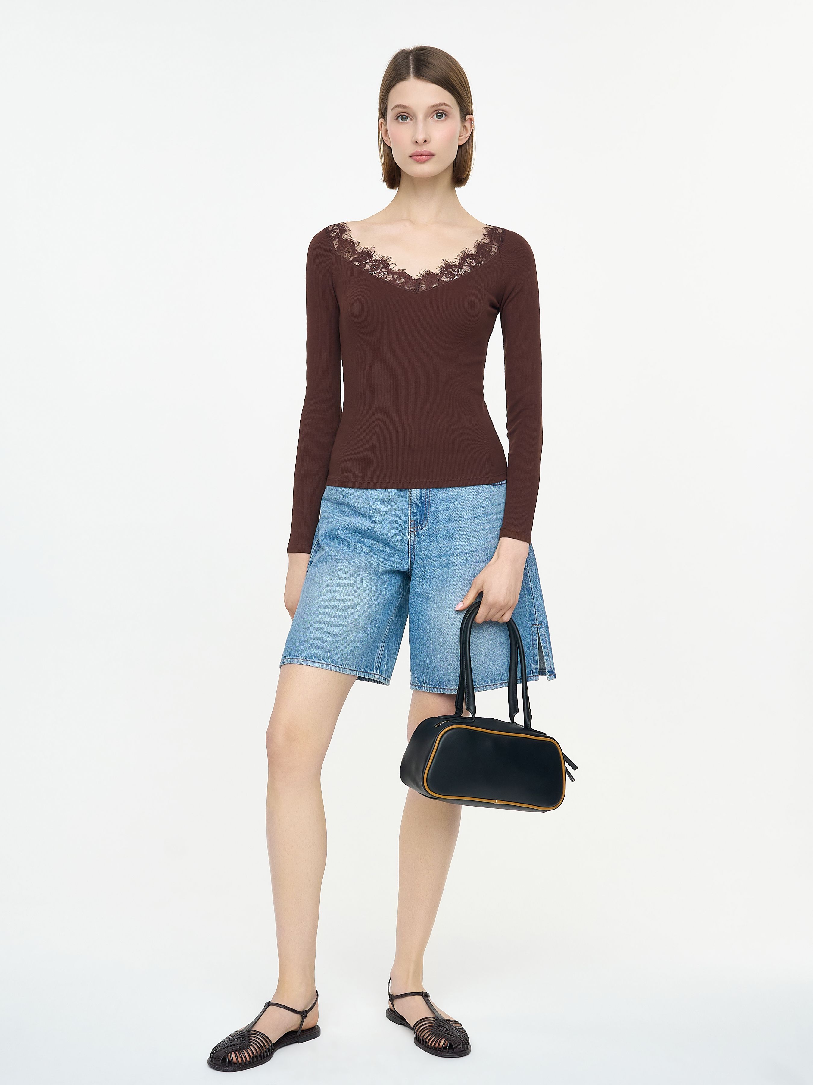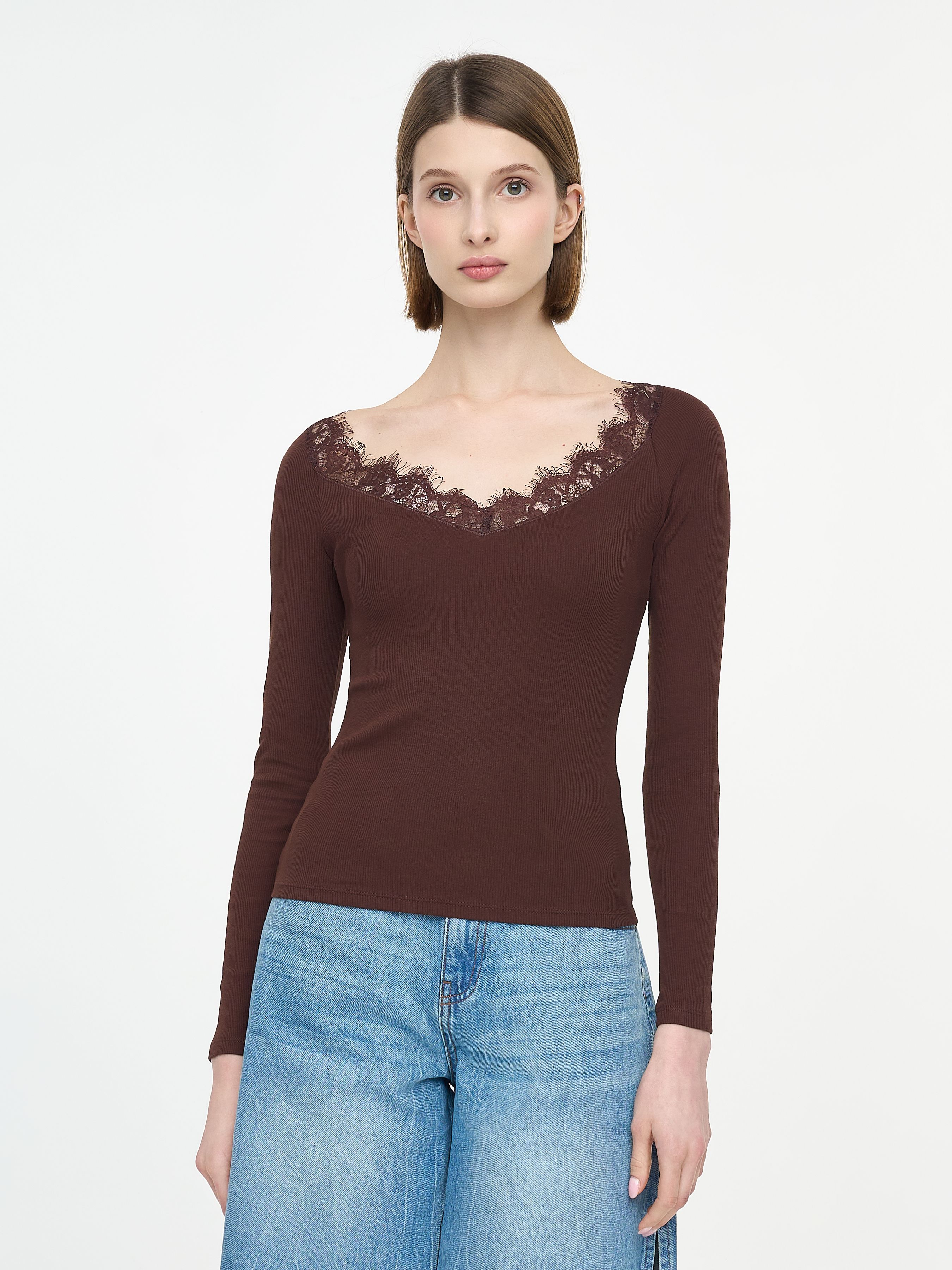 ЛОНГСЛИВ С КРУЖЕВНОЙ ОТДЕЛКОЙ
