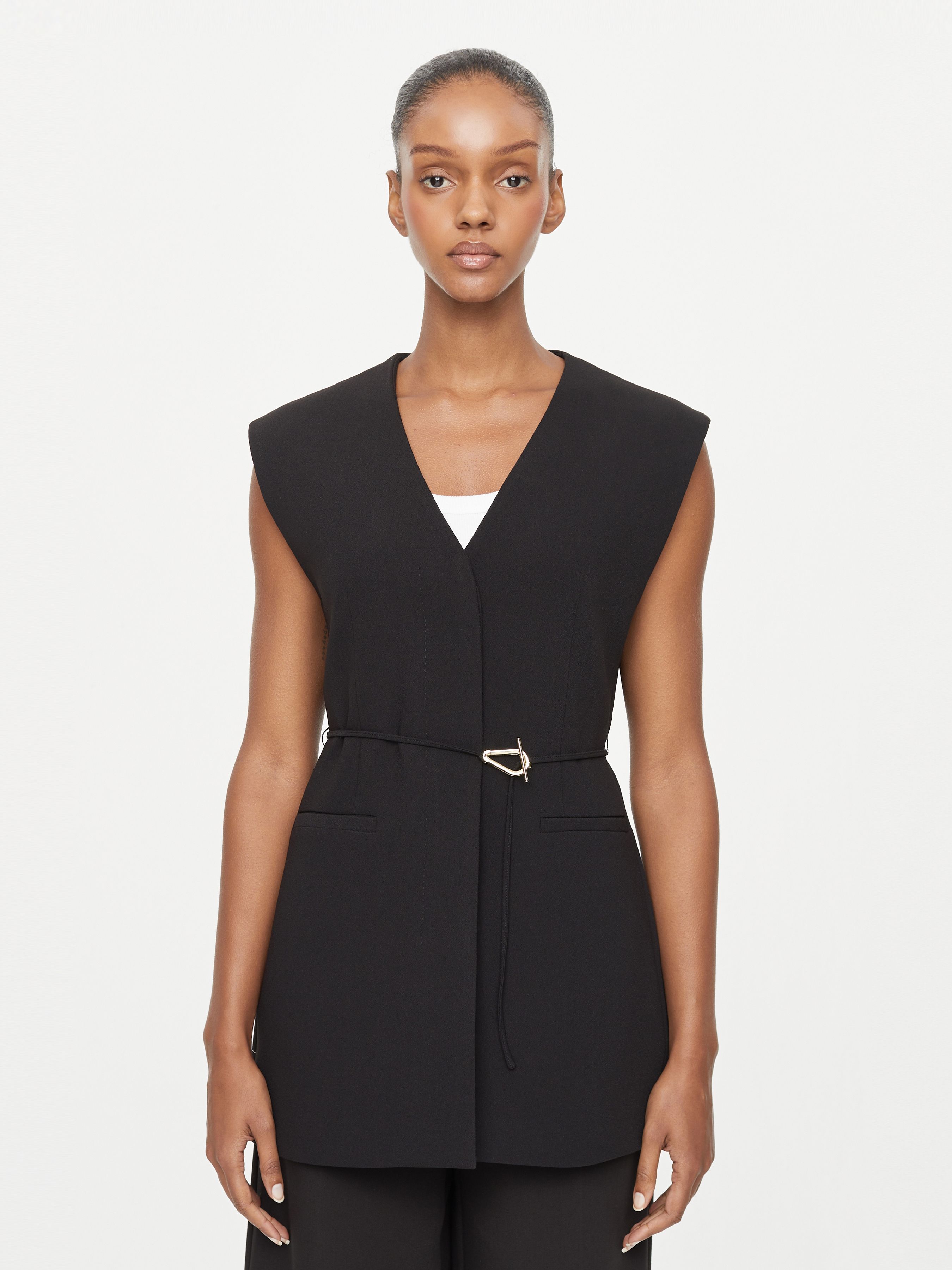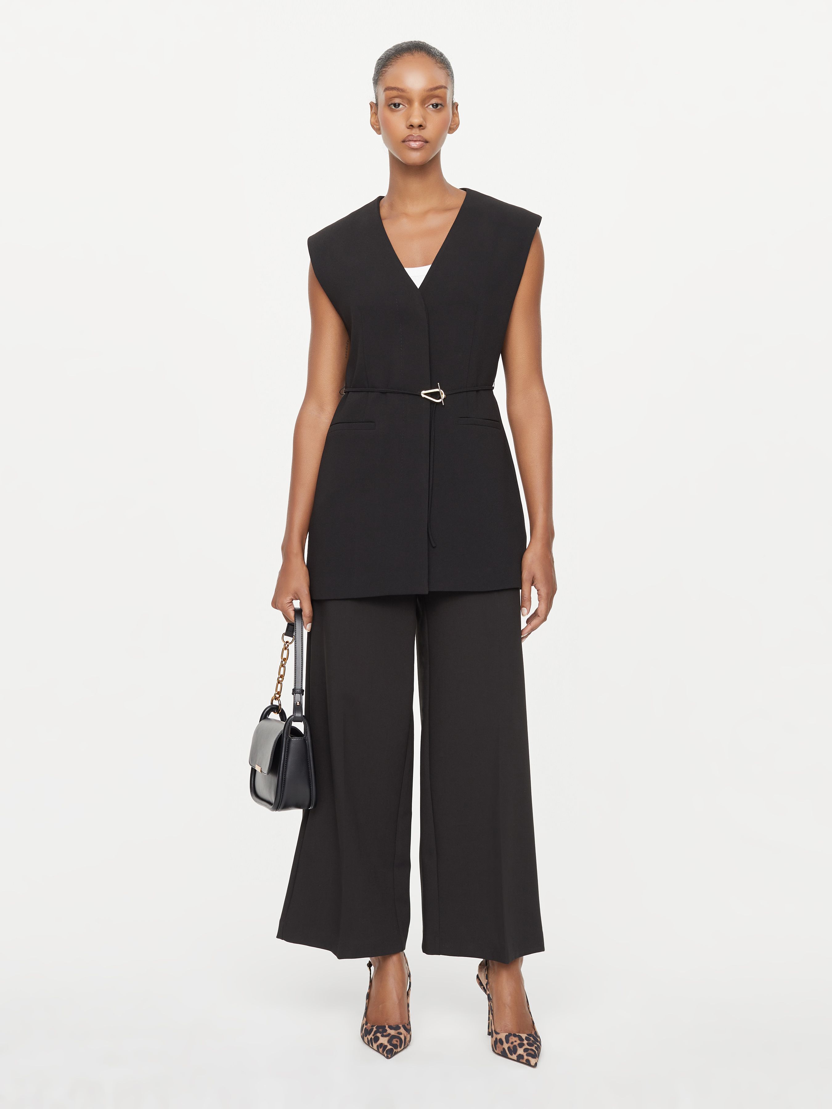УДЛИНЕННЫЙ ЖИЛЕТ С ПОЯСОМ